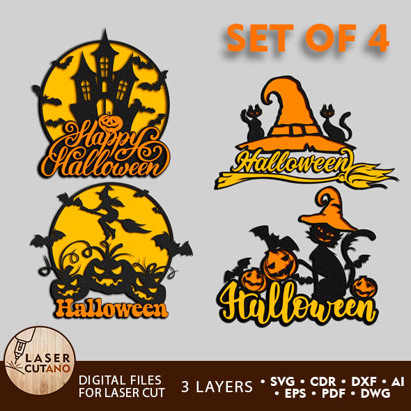 Halloween Wall Decor 4 Bundle Laser Cut Svg File