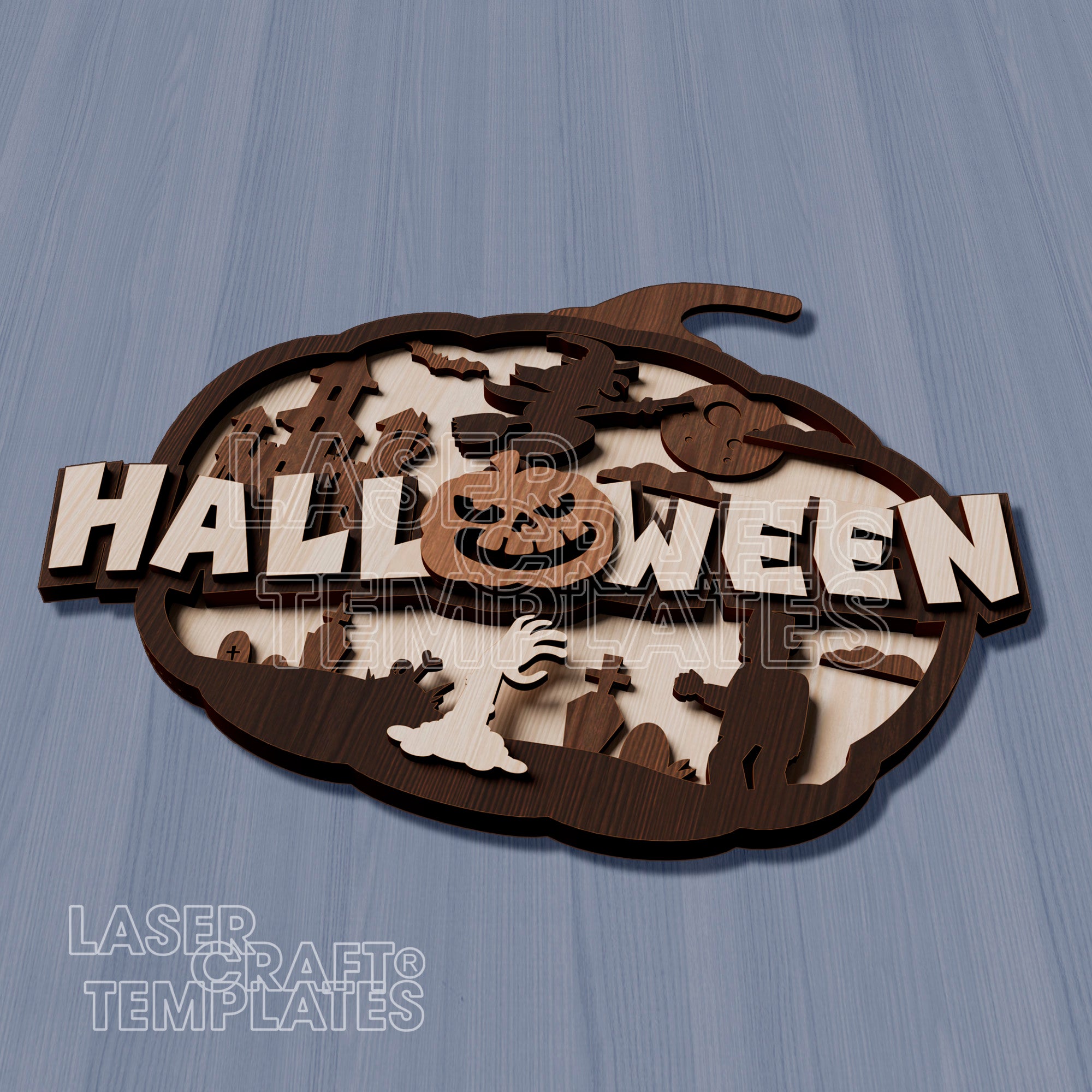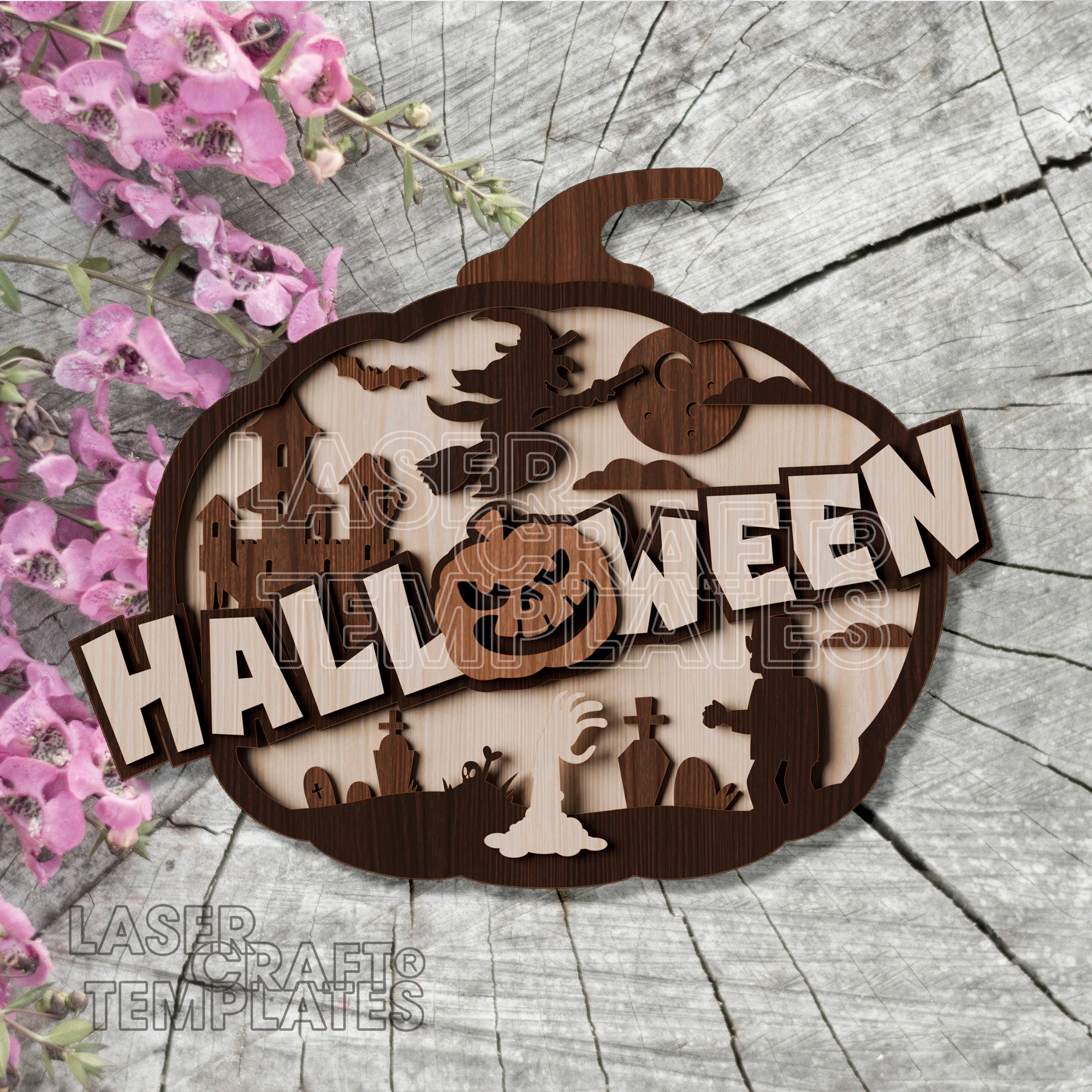 🔹 Laser cut Multilayer Pumpkin Halloween Door Hanger svg file