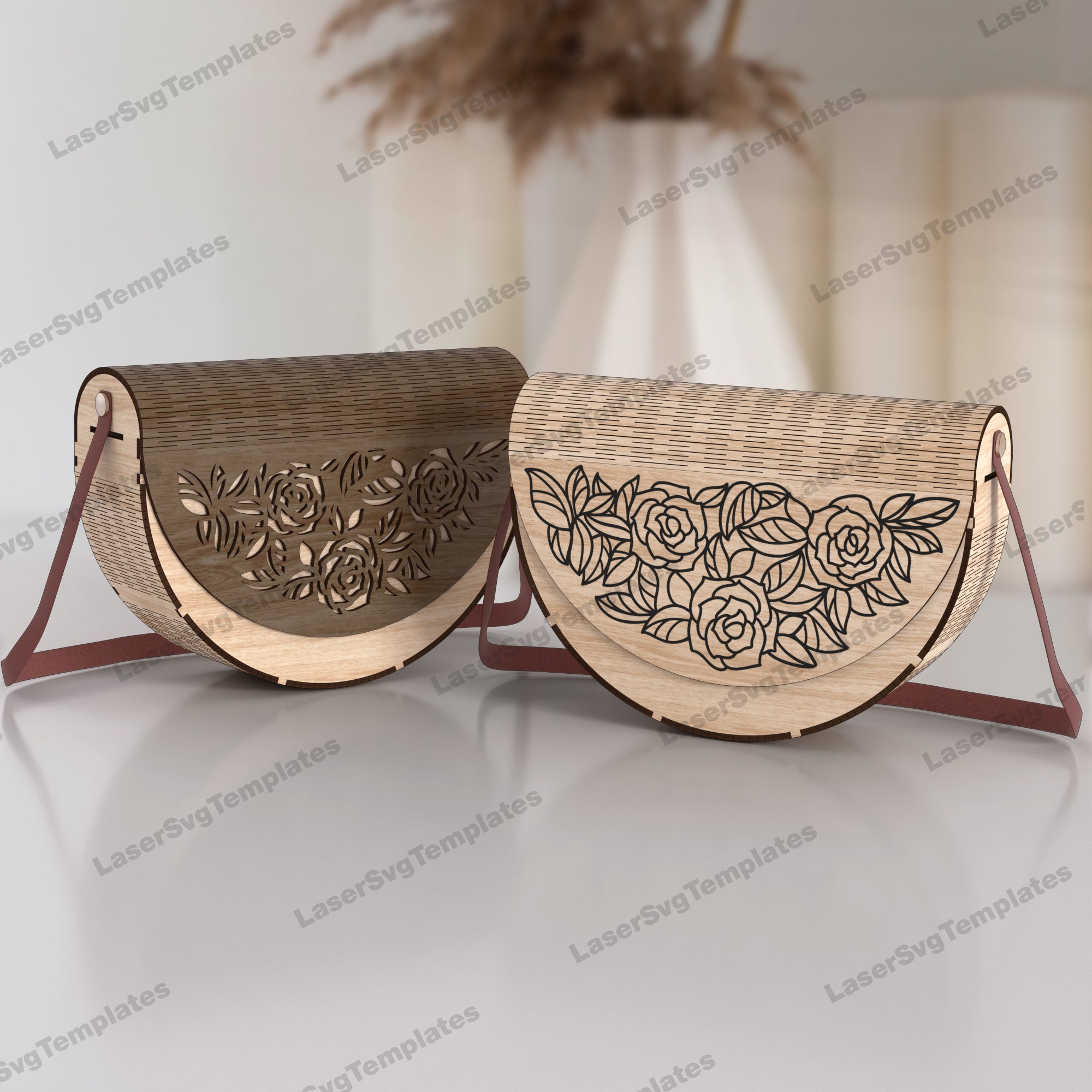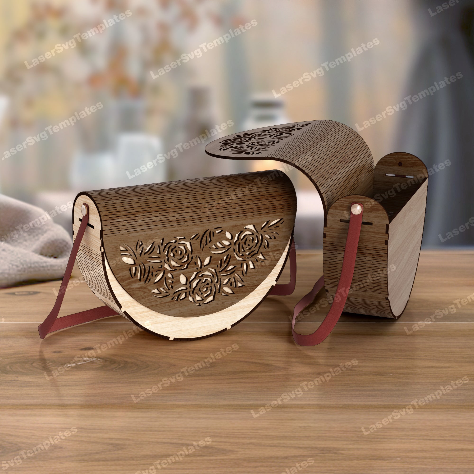 Wooden flowers clutch handbag laser cut svg file