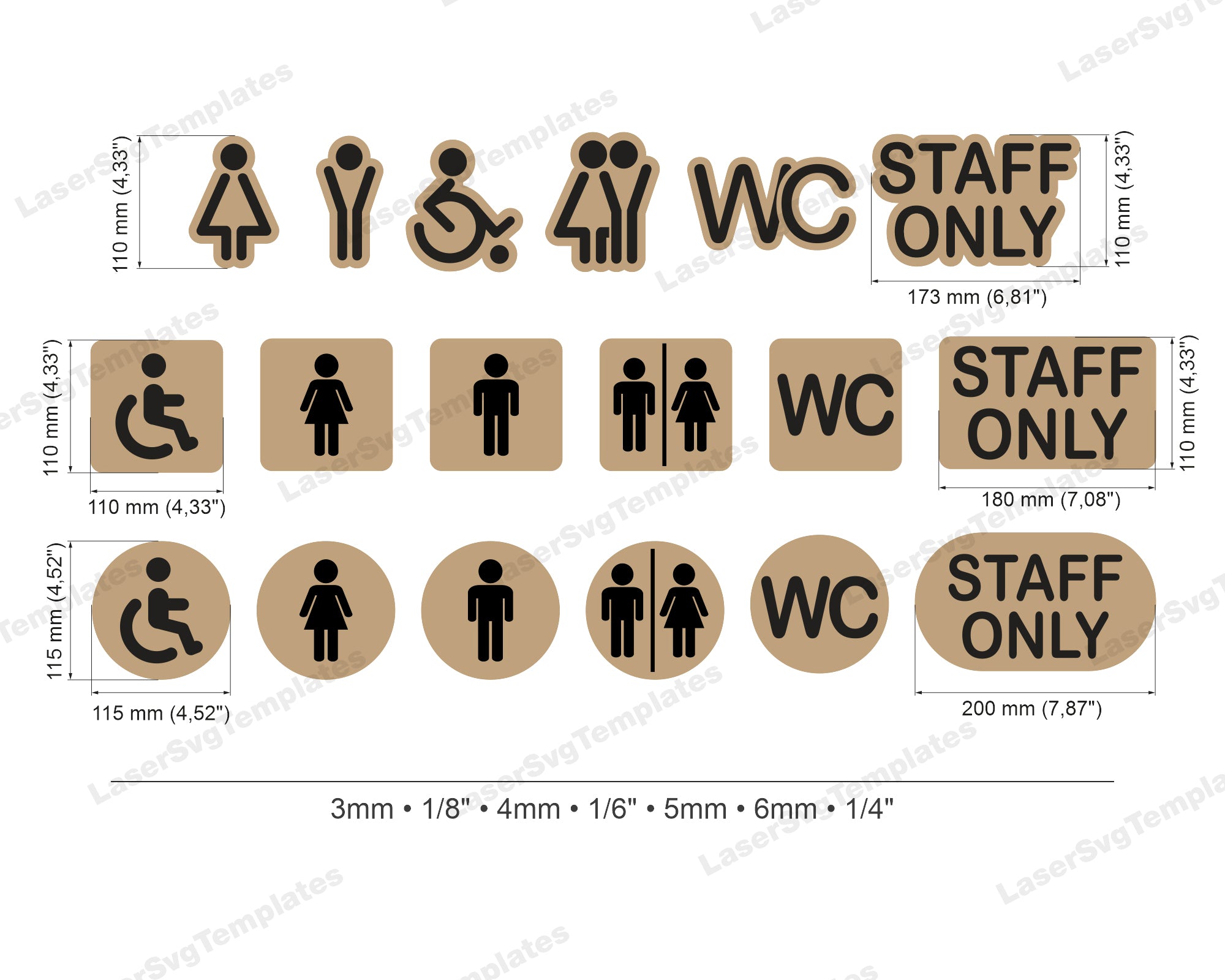 — This files are created for 3mm, 1/8", 4mm, 1/6", 5mm, 6 mm and 1/4" material