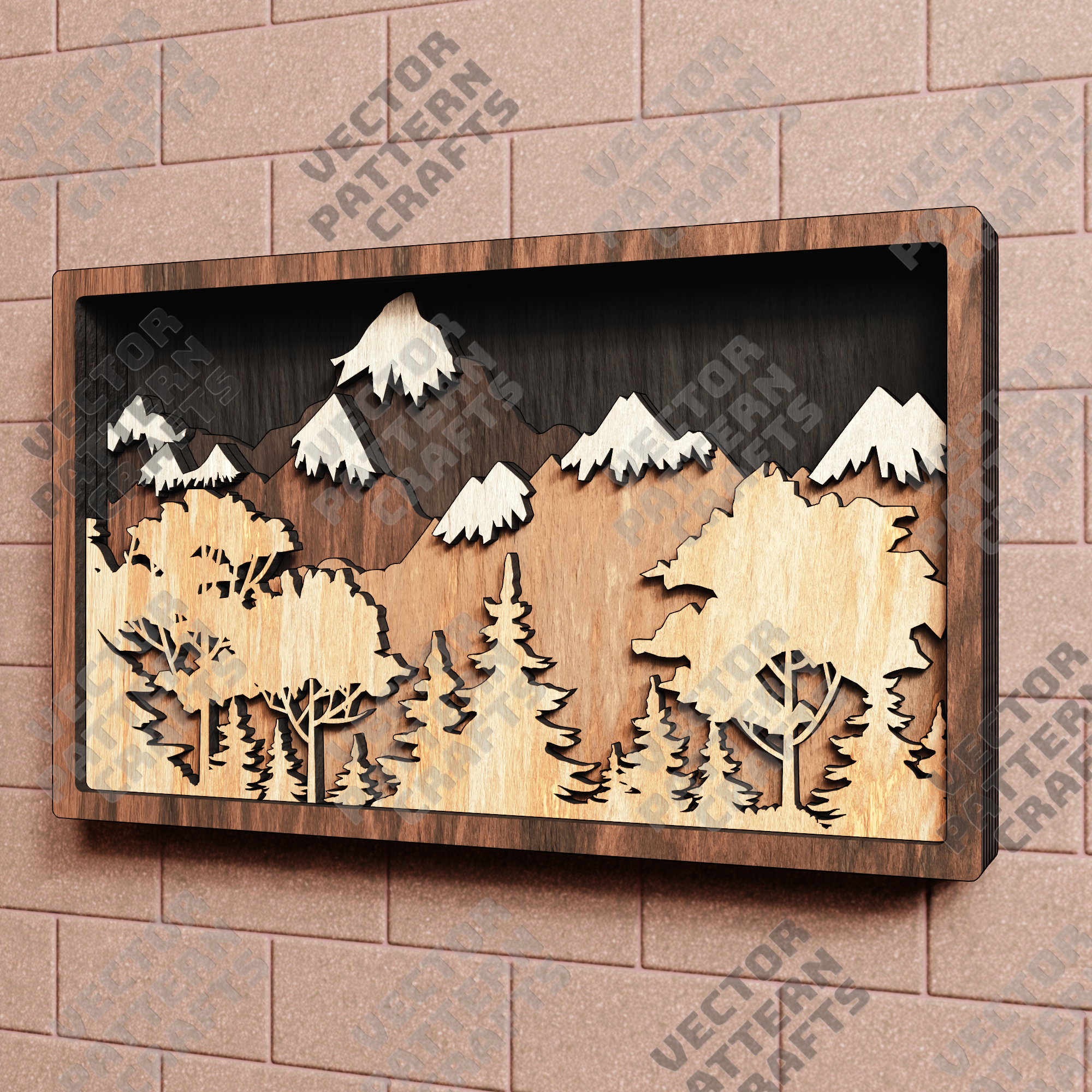 🔹 Multilayer mountain forest wall panel laser cut svg file