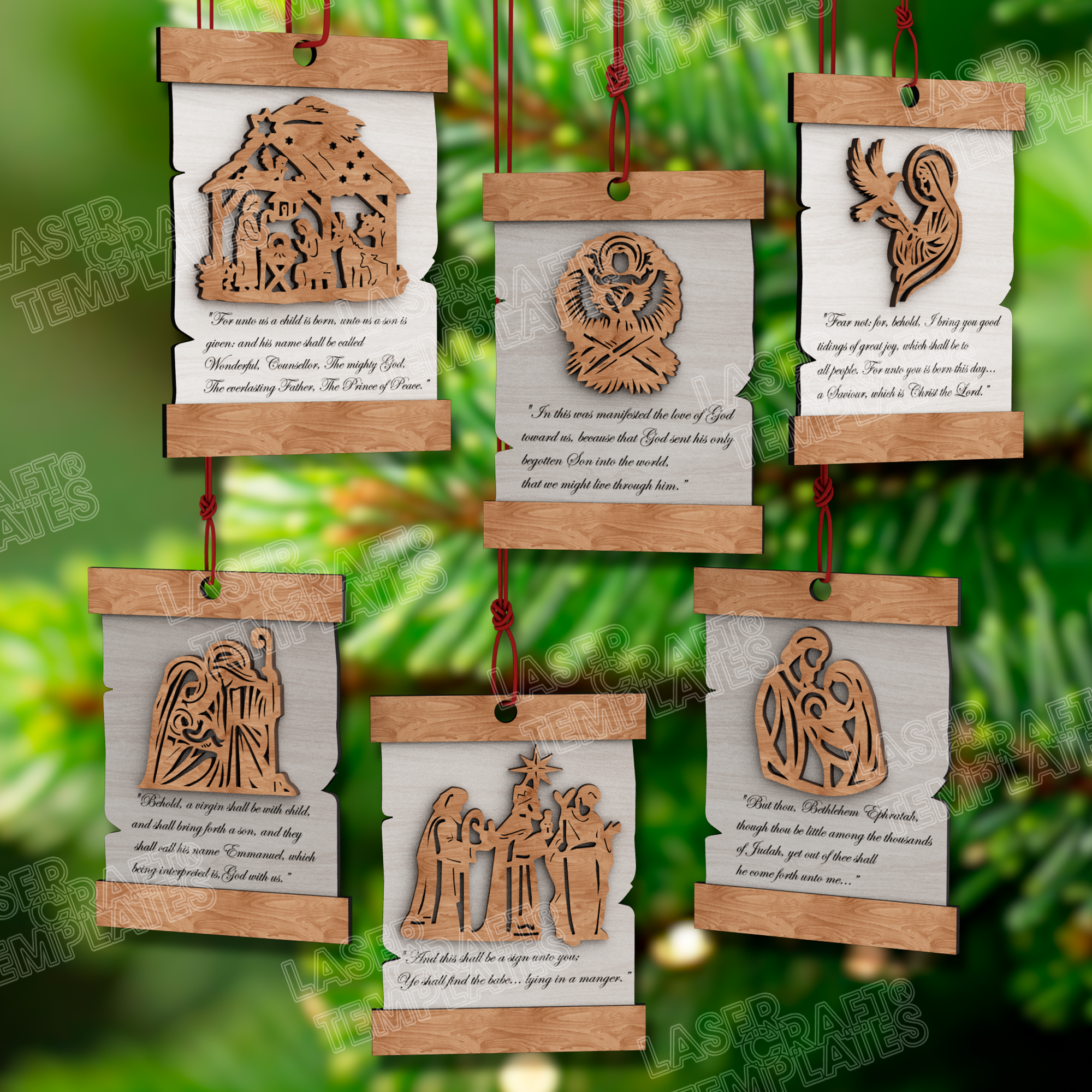🔹 Christmas Nativity scene ornaments 6 bundle laser cut svg file