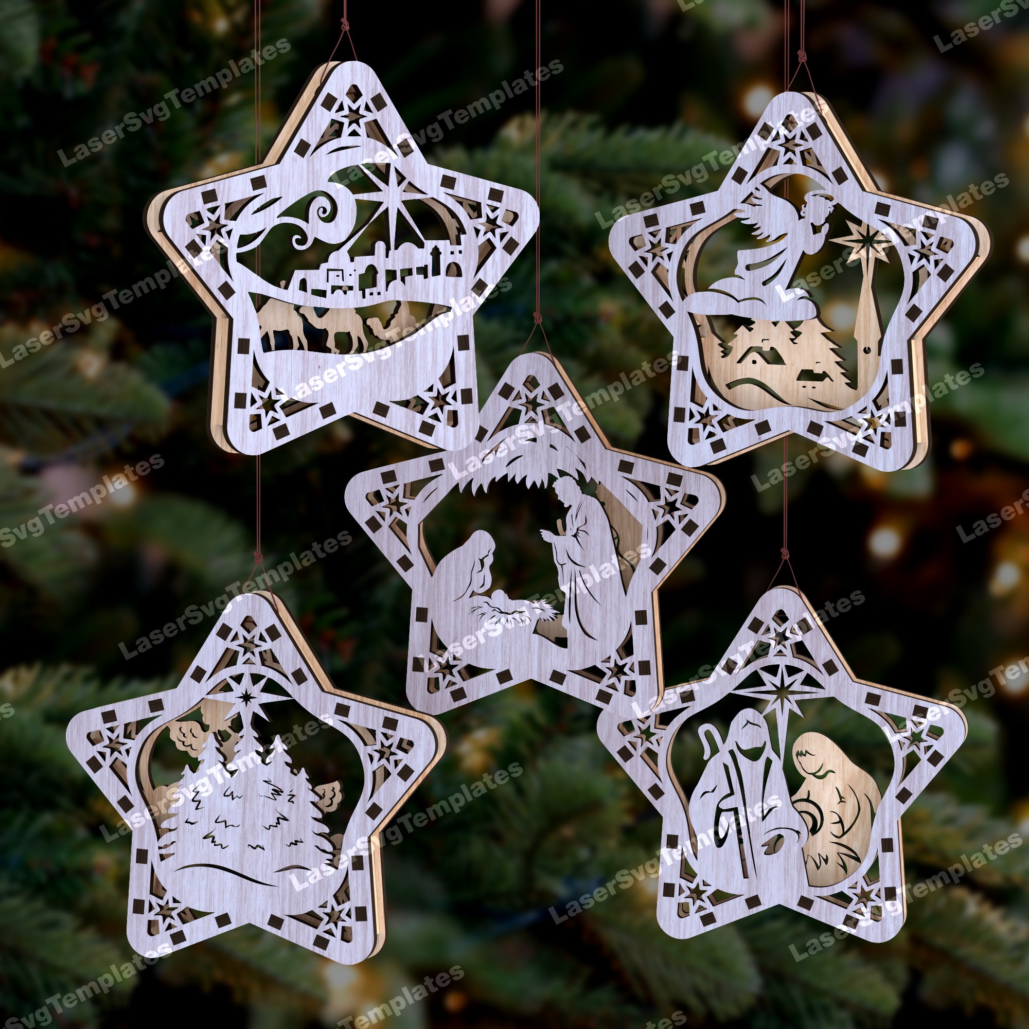 — Nativity Star ornaments 5 bundle laser cut svg file