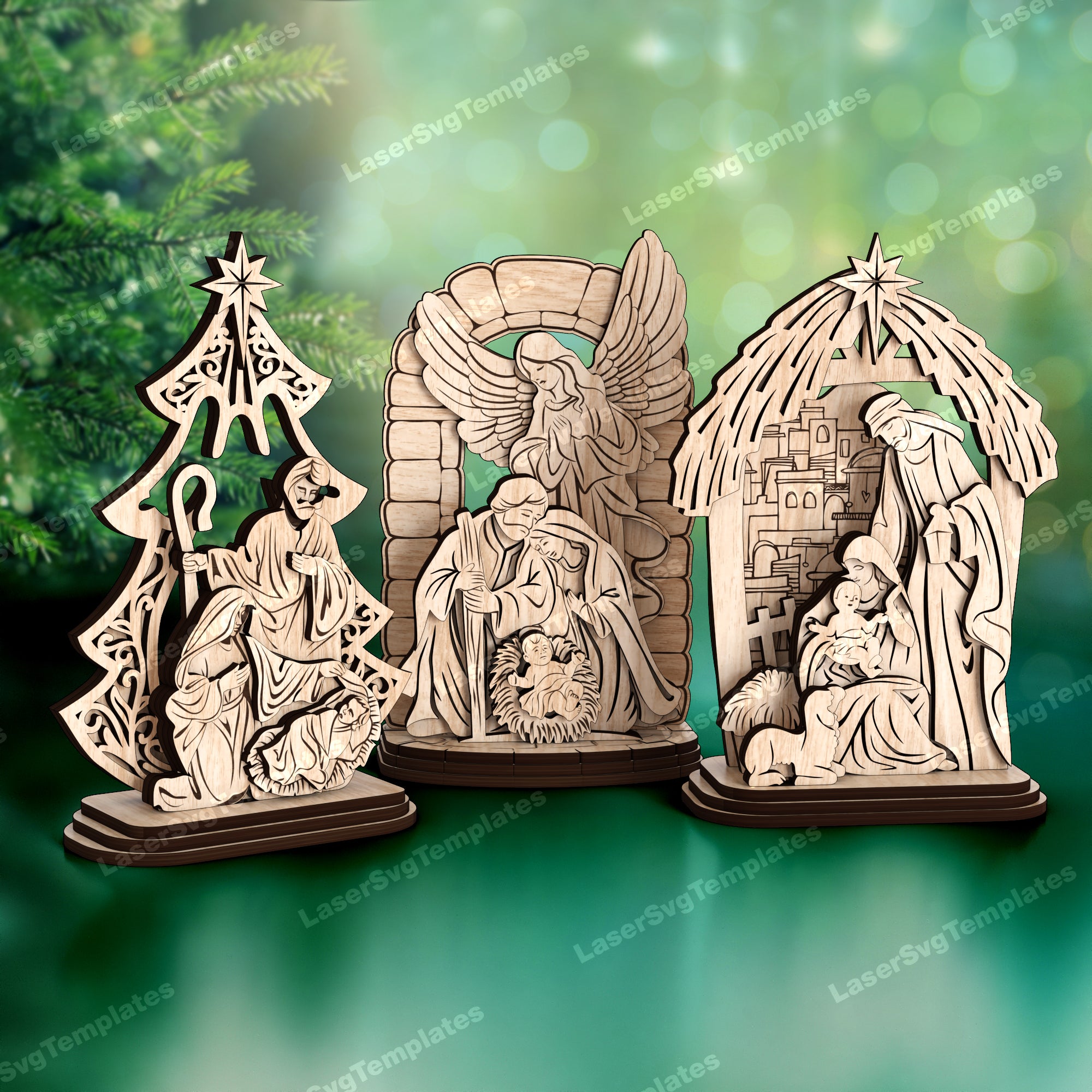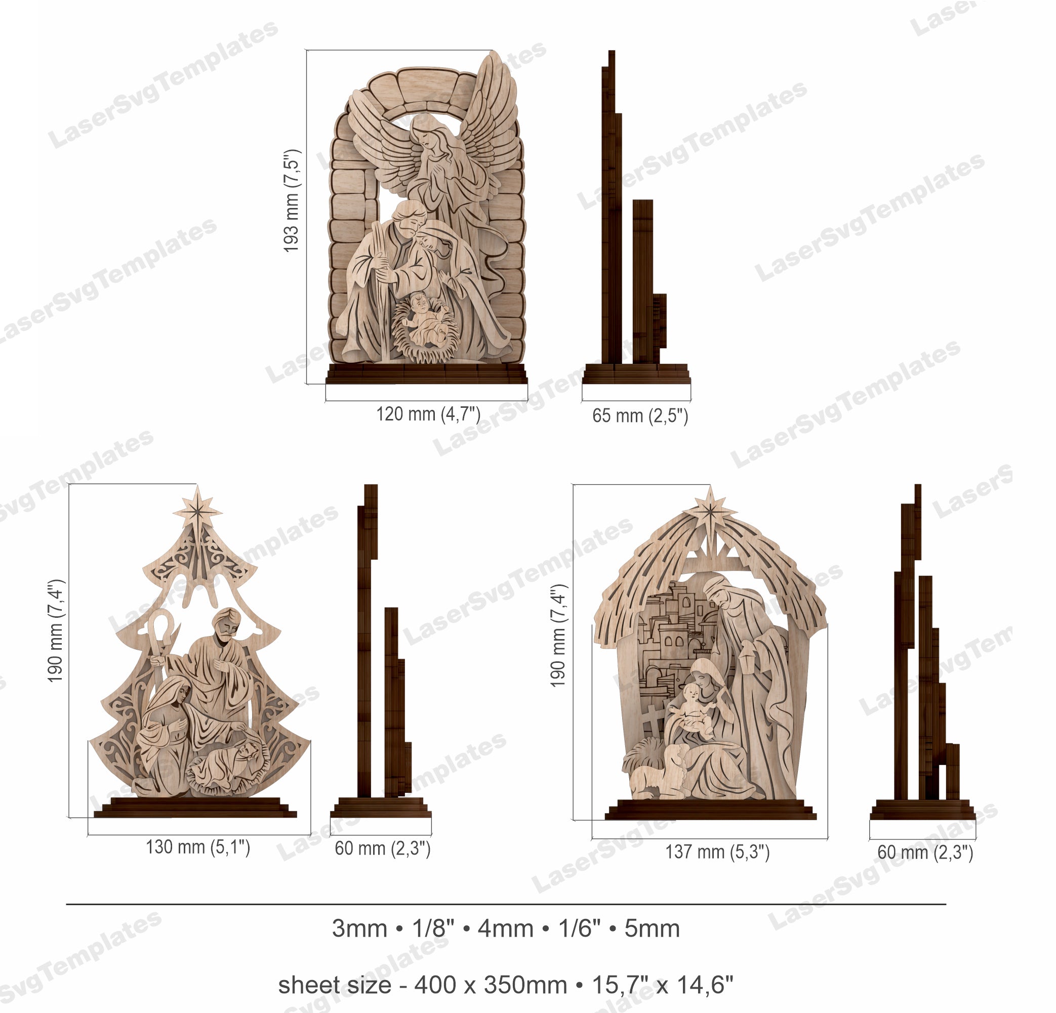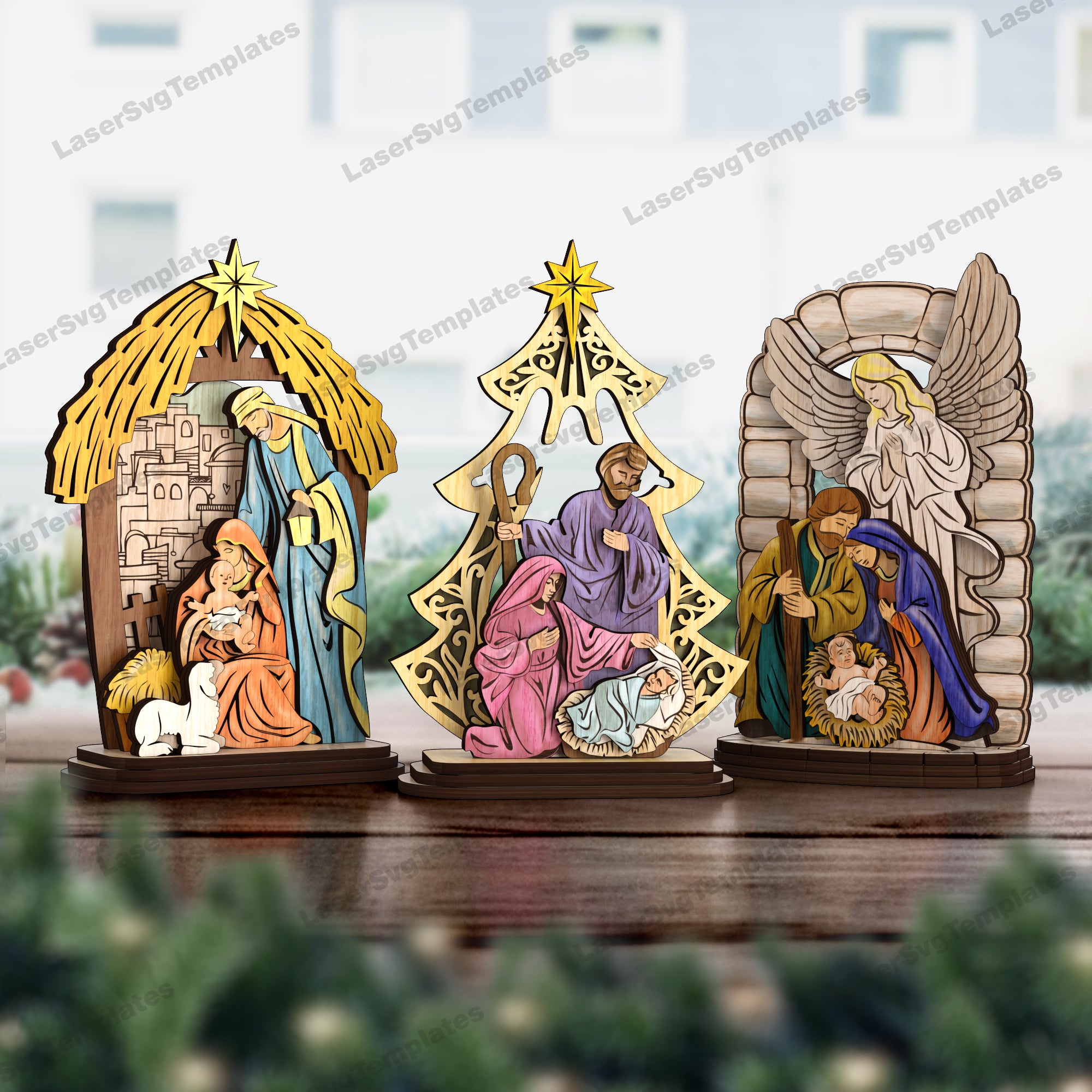 — Nativity scene miniatures decor 3 set laser cut svg file