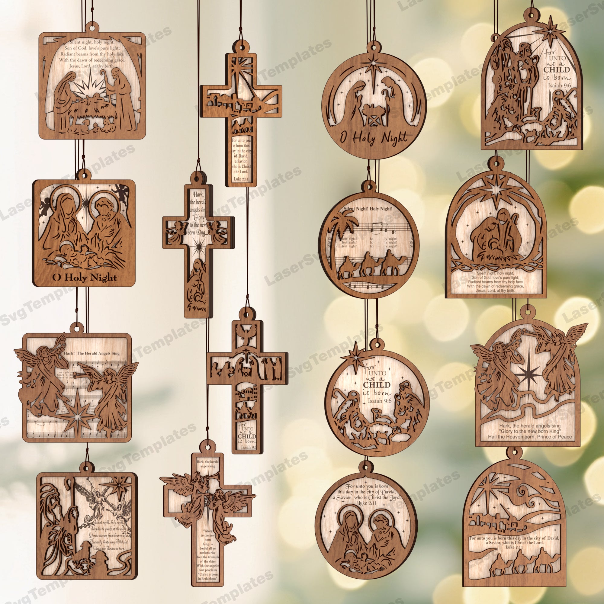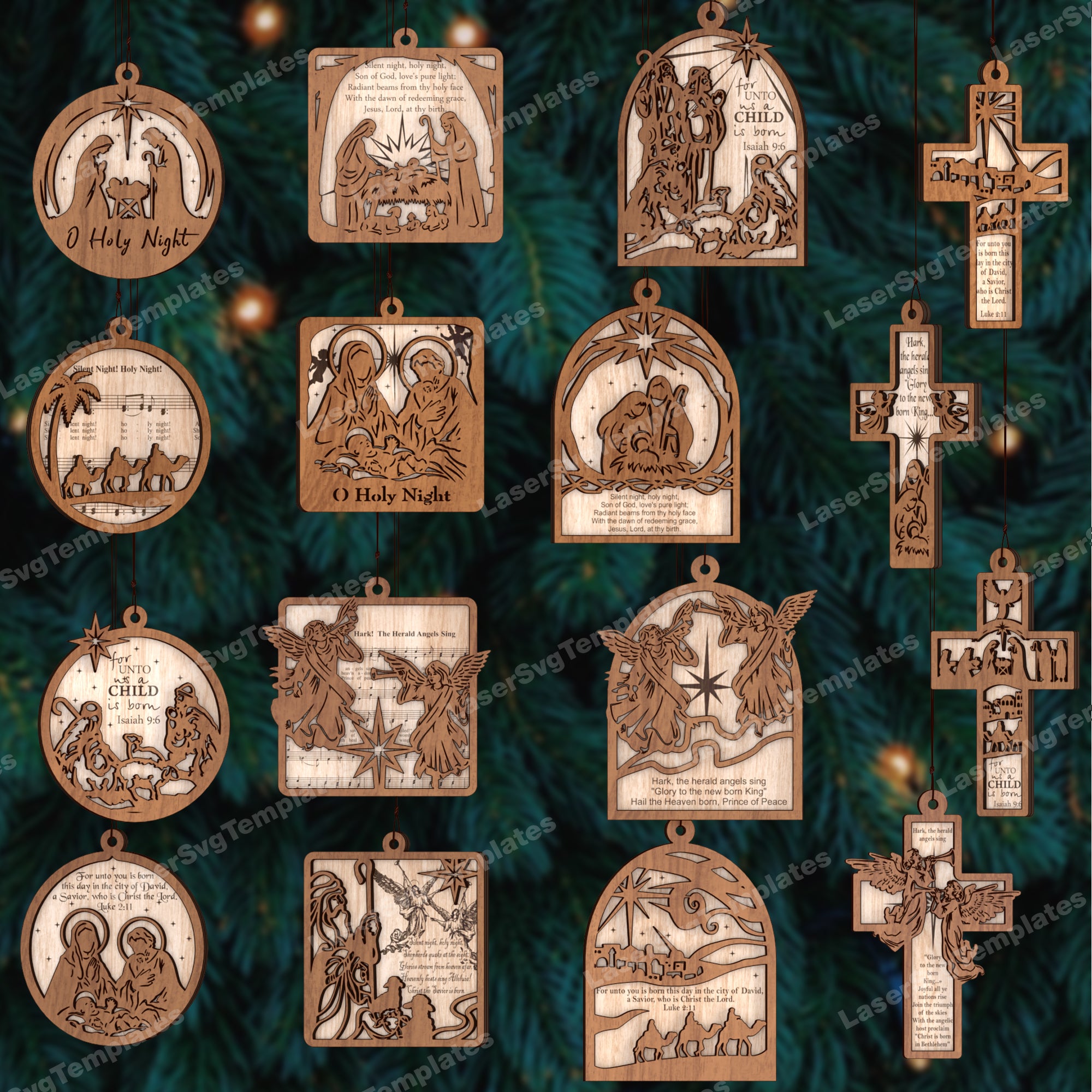 — Nativity tree balls ornaments 16 bundle laser cut svg file