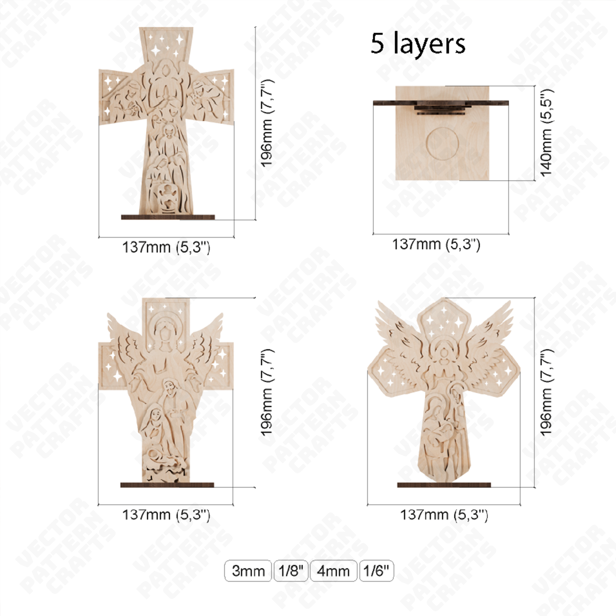This file is specifically optimized for materials with thicknesses of 3 mm, 0.125 ", 4 mm, 0.166 " offering great flexibility for various projects and preferences. ๐