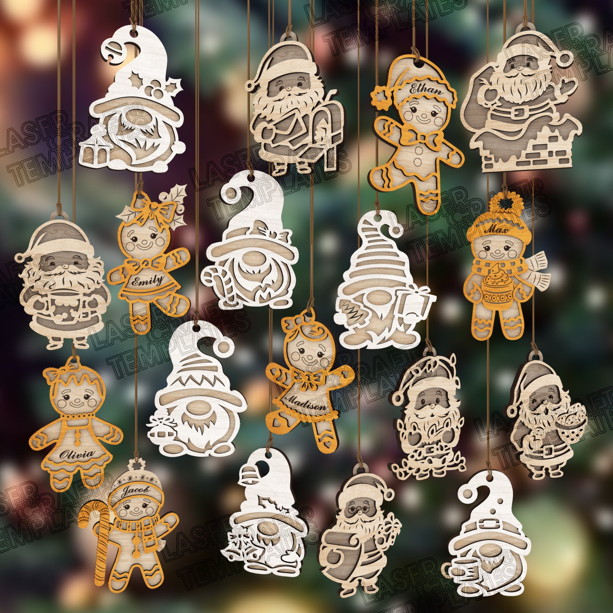 18 Christmas tree ornaments laser cut svg file