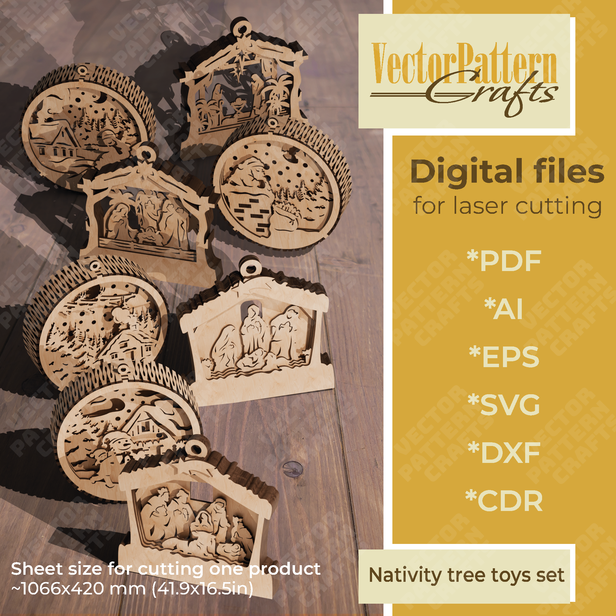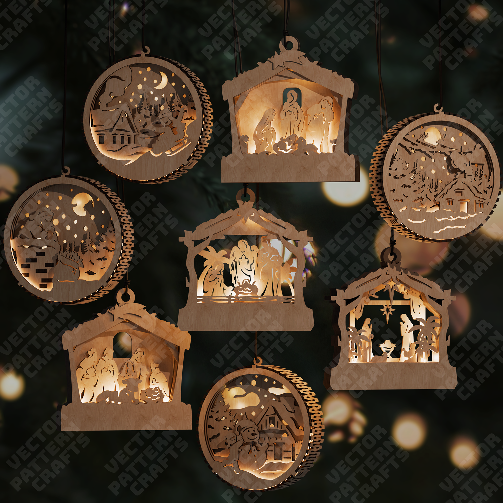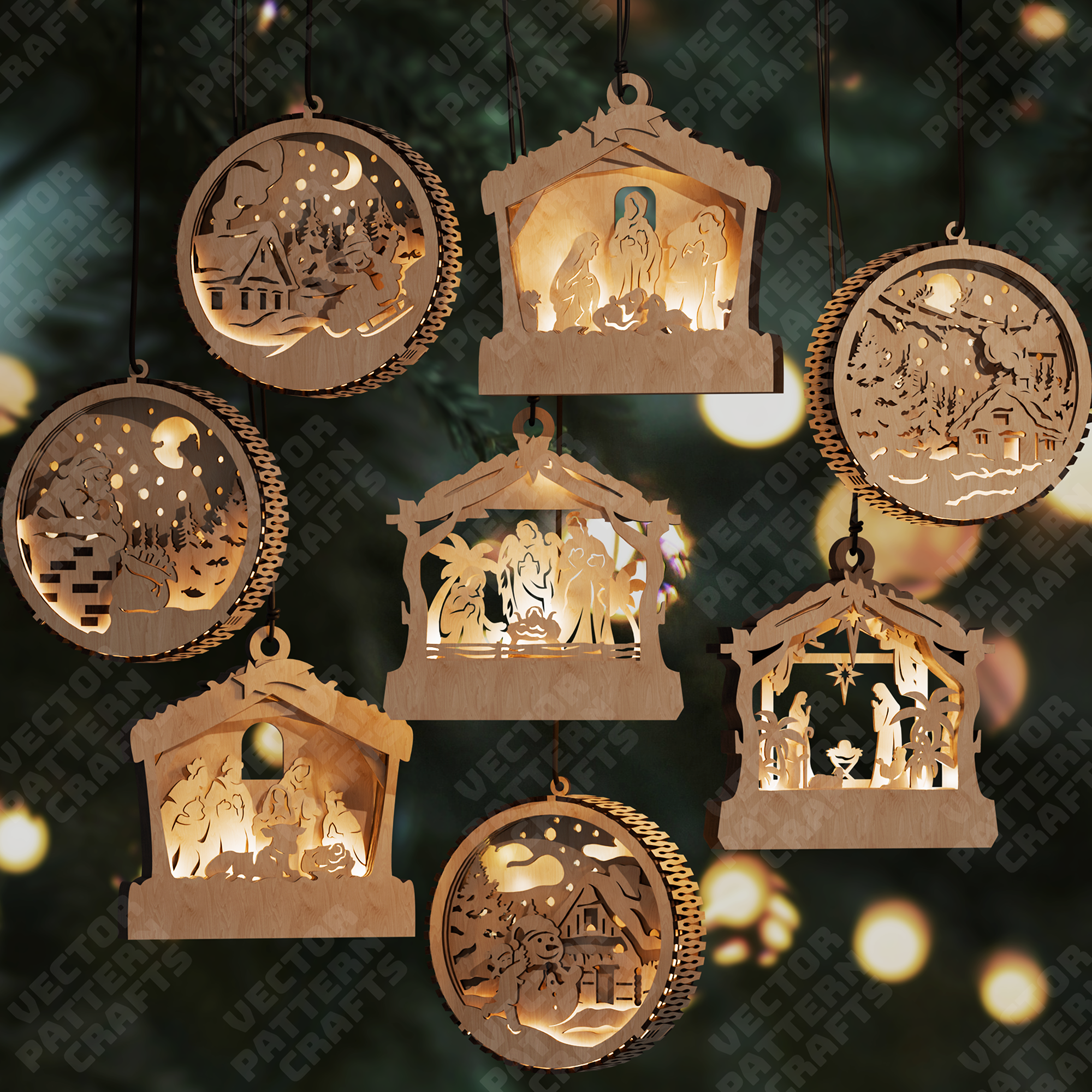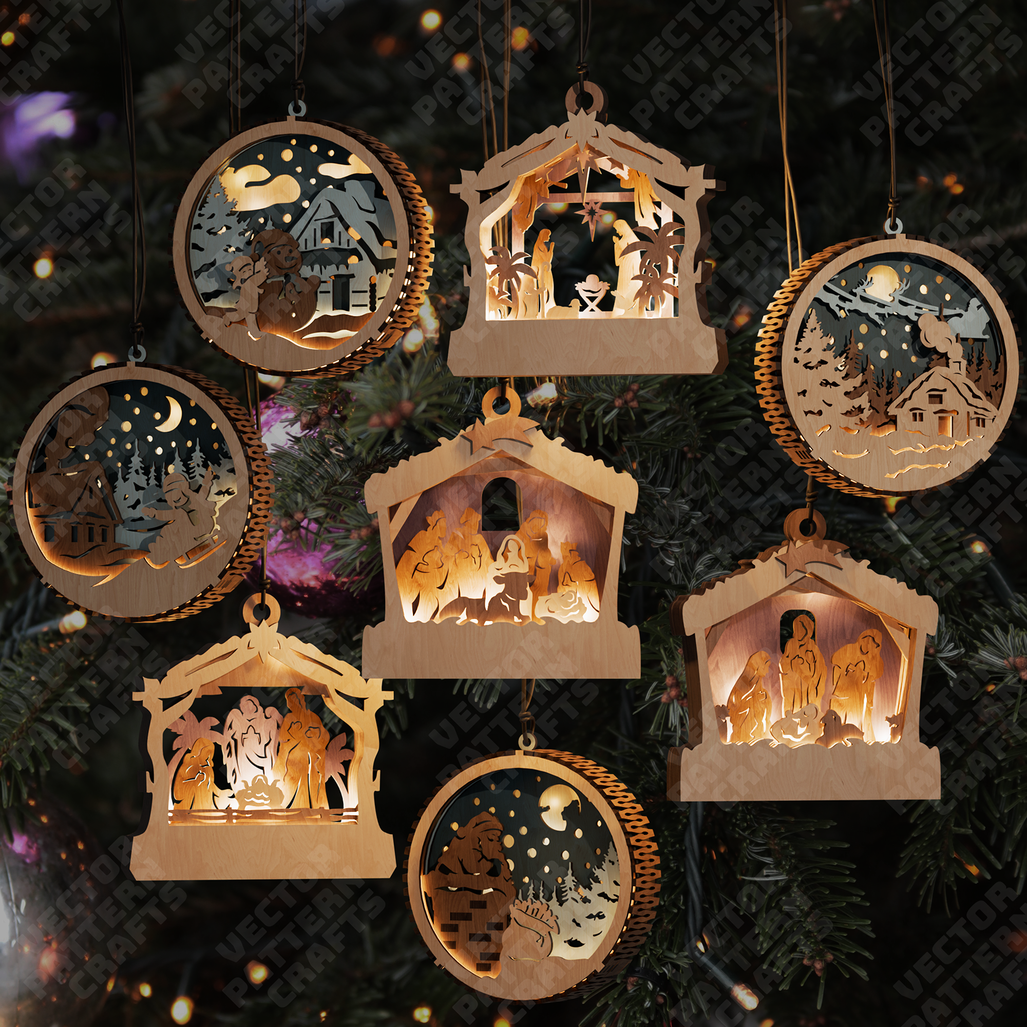 3D Christmas Nativity 8 ornaments laser cut svg file