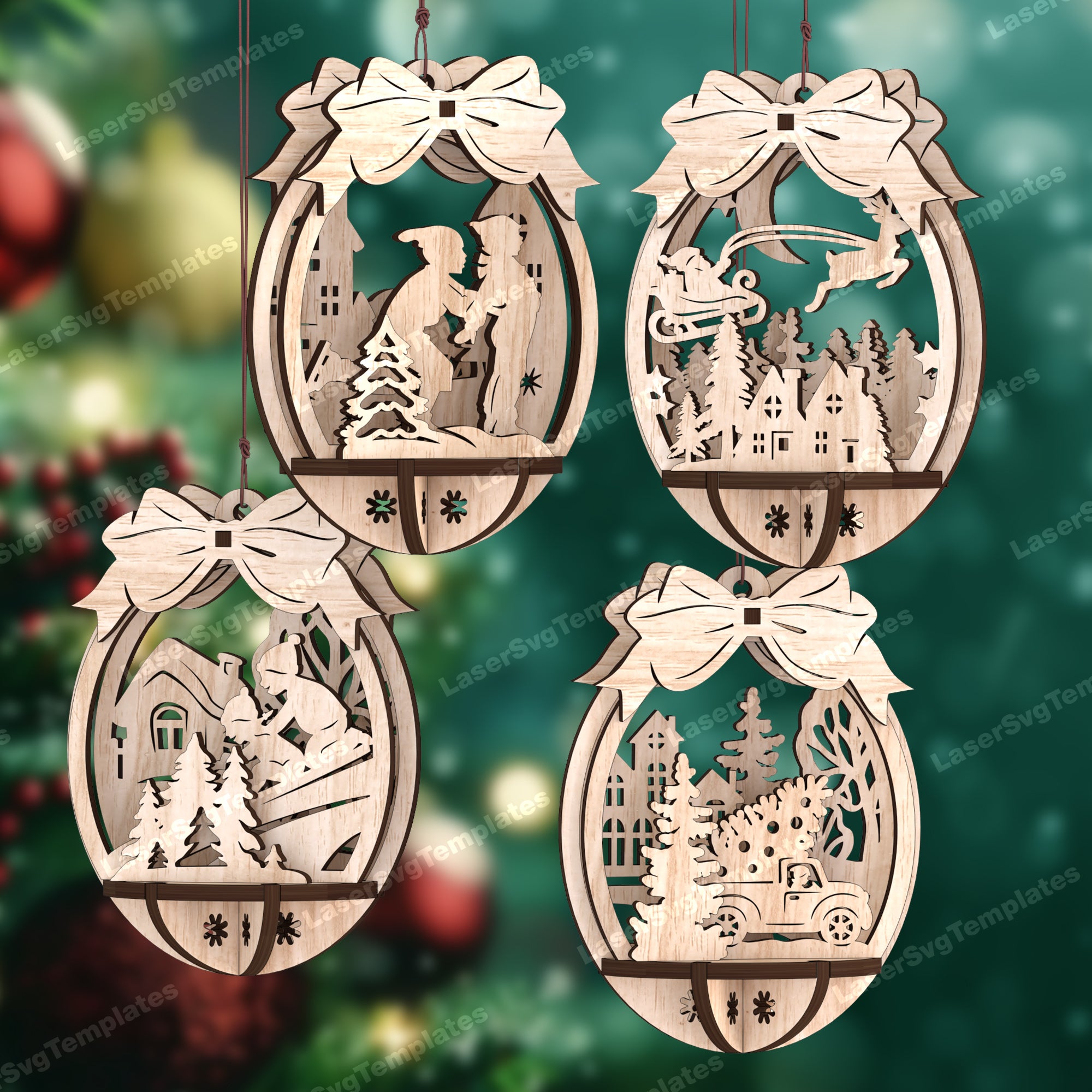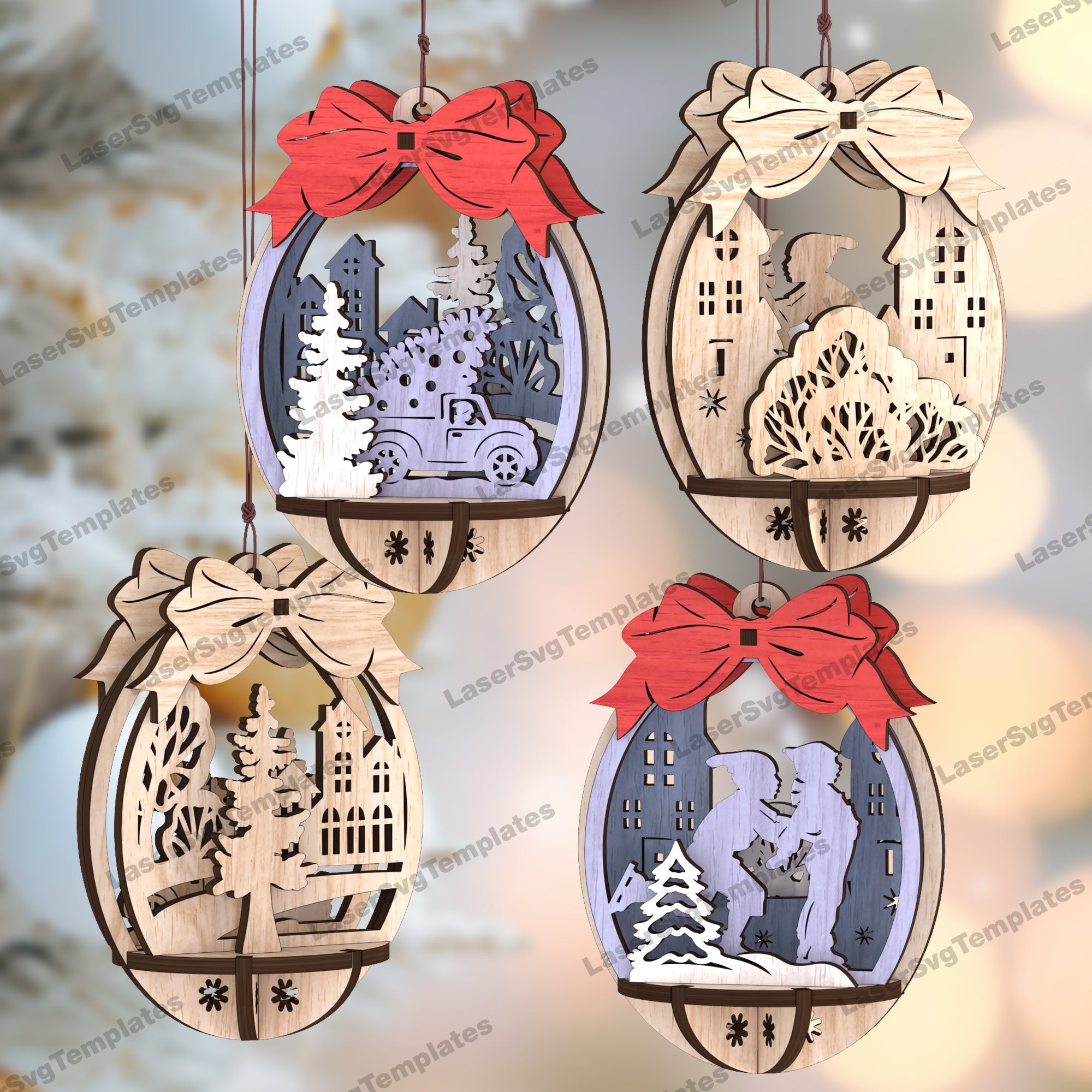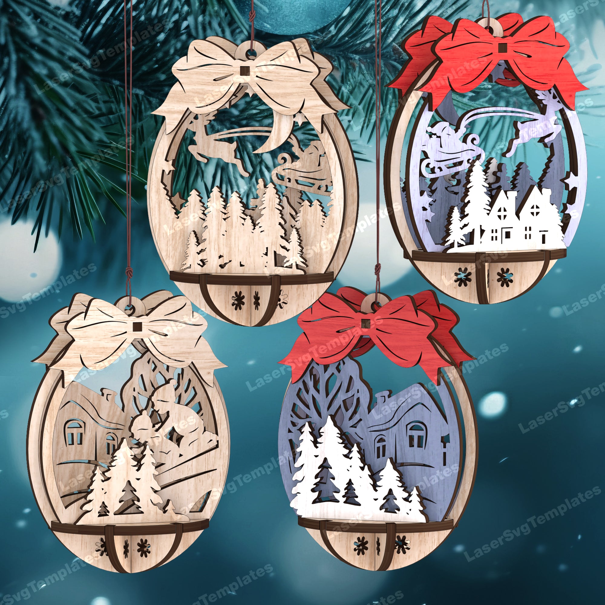 3D Christmas tree ball 4 ornaments laser cut svg file