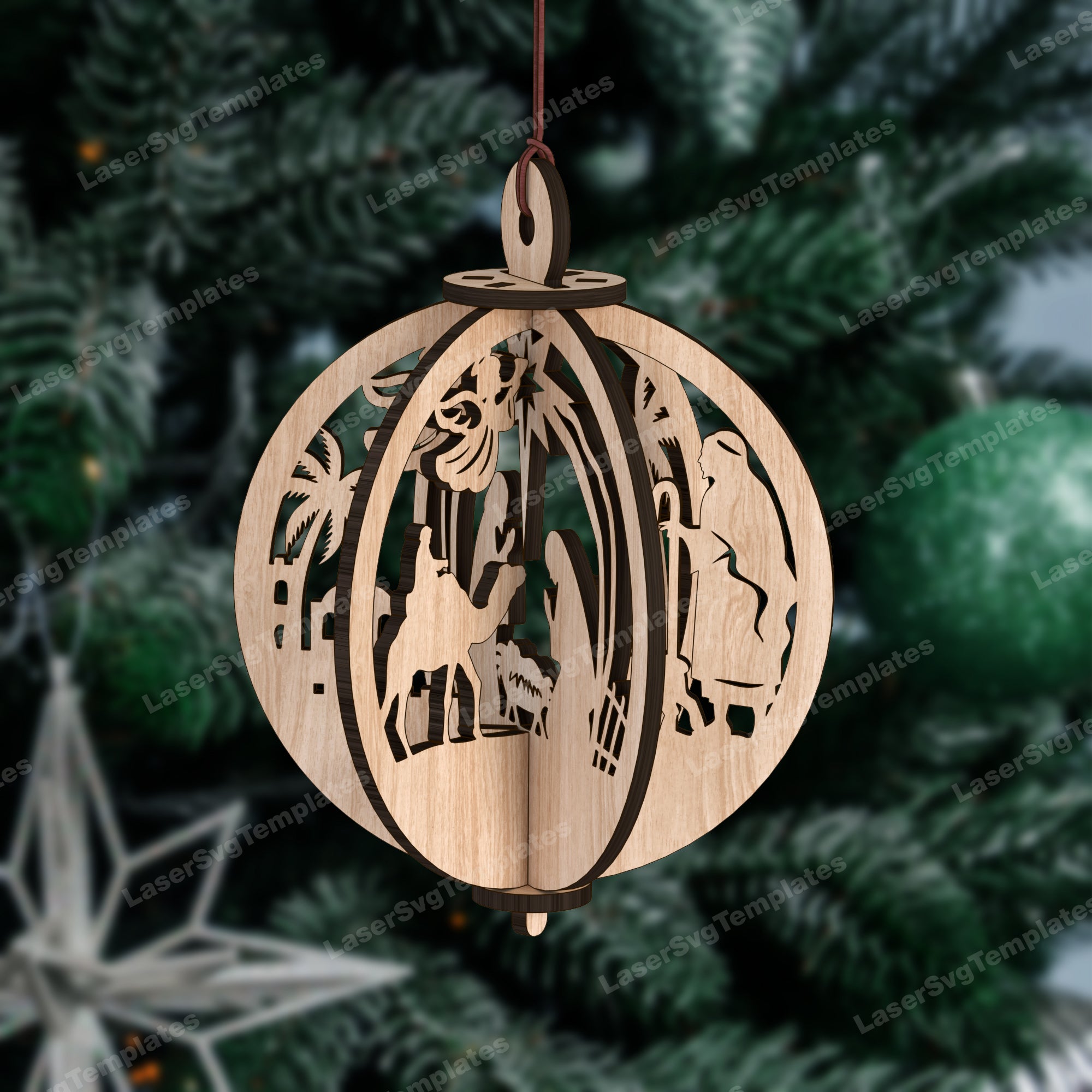 — Laser cut 3D Nativity tree ball ornaments svg file
