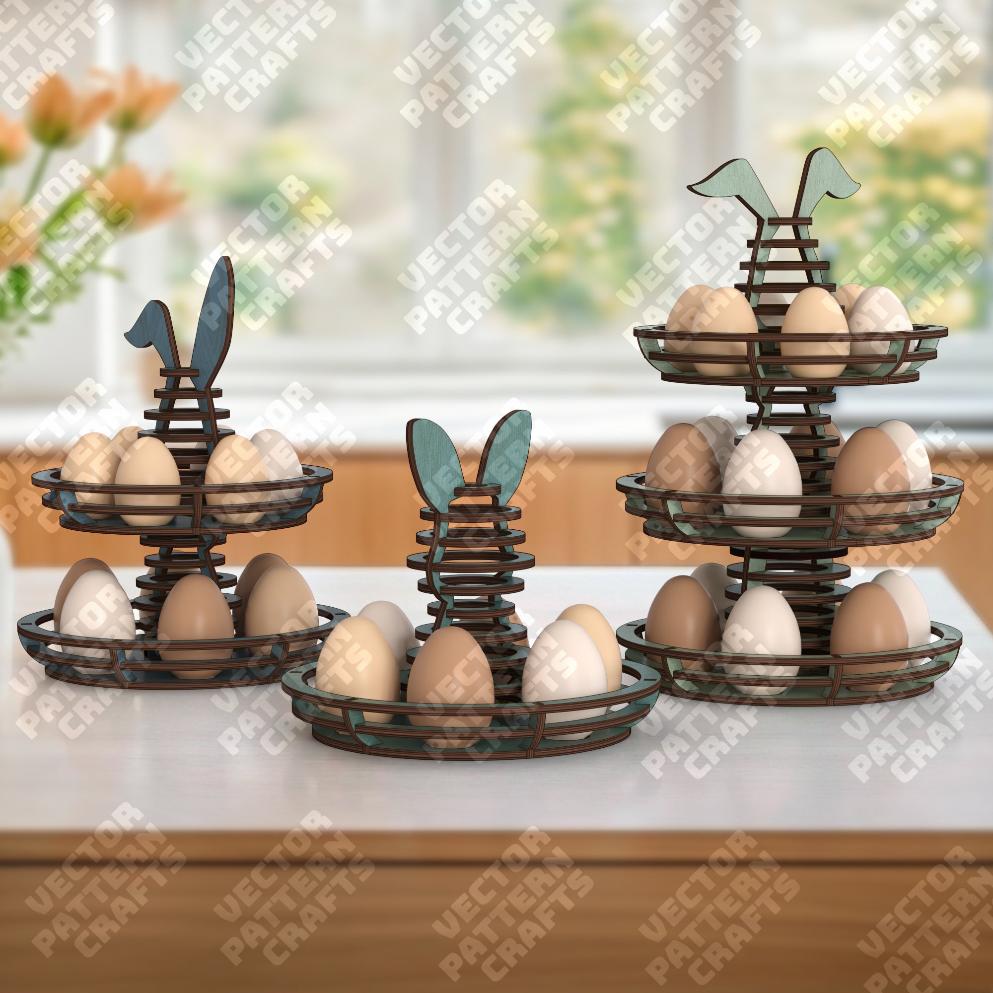 3 Tiered bunny egg holder laser cut svg file