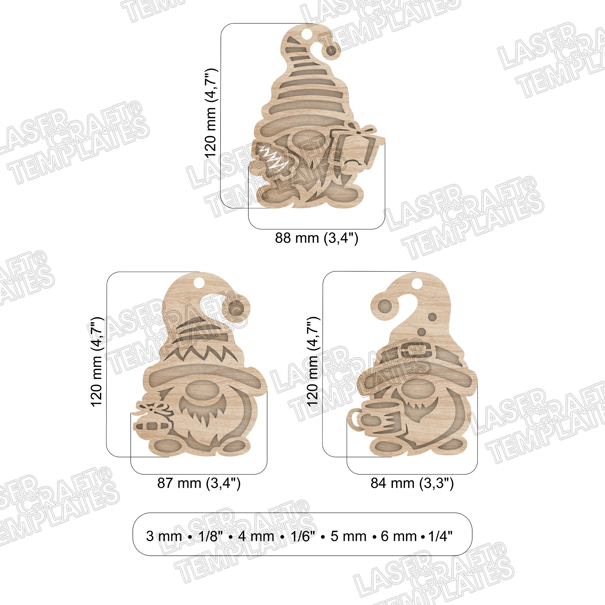 🔹 6 Christmas Gnome ornaments laser svg cutting file