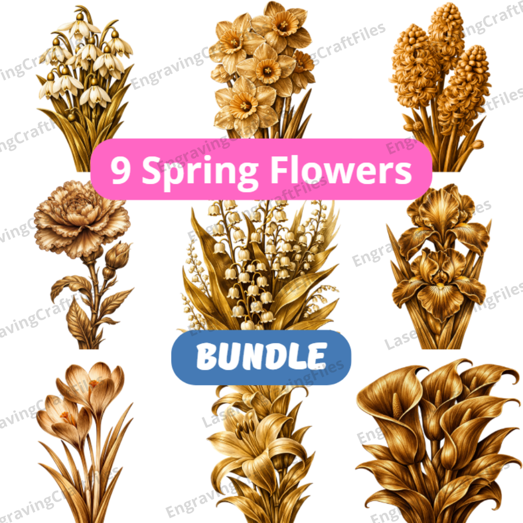 9 Spring Flowers Bundle laser engraving png file