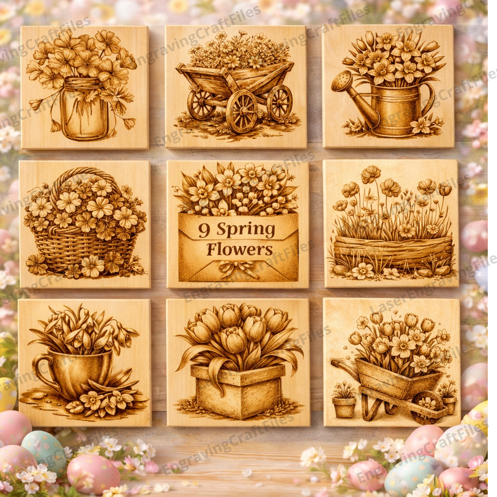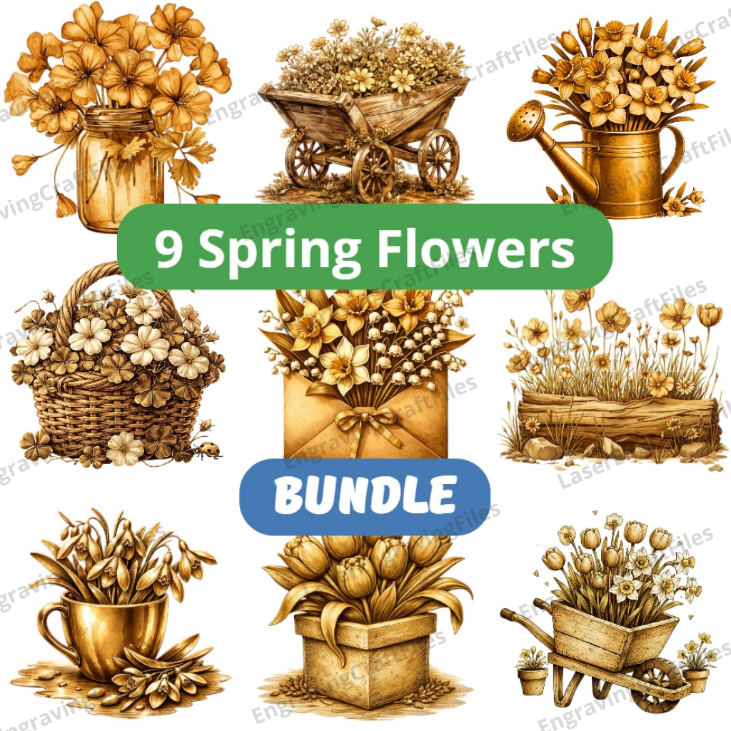 9 Spring Flowers Bundle laser engraving png file