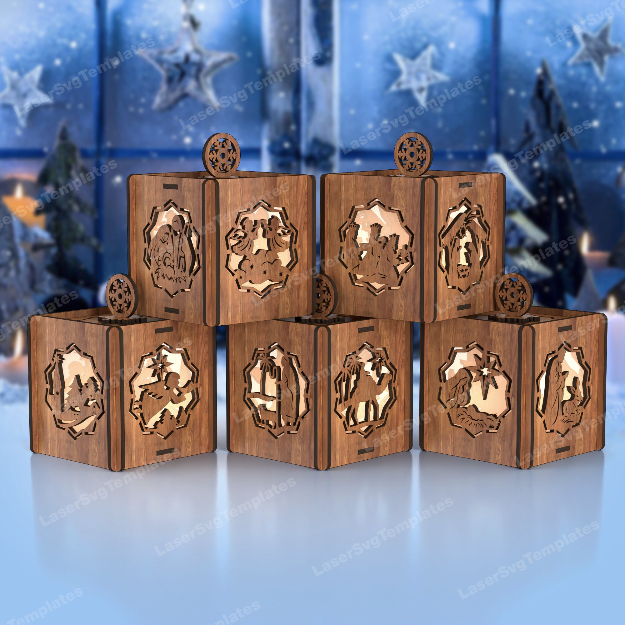 Nativity ornaments candle holder 5 bundle svg laser cut file