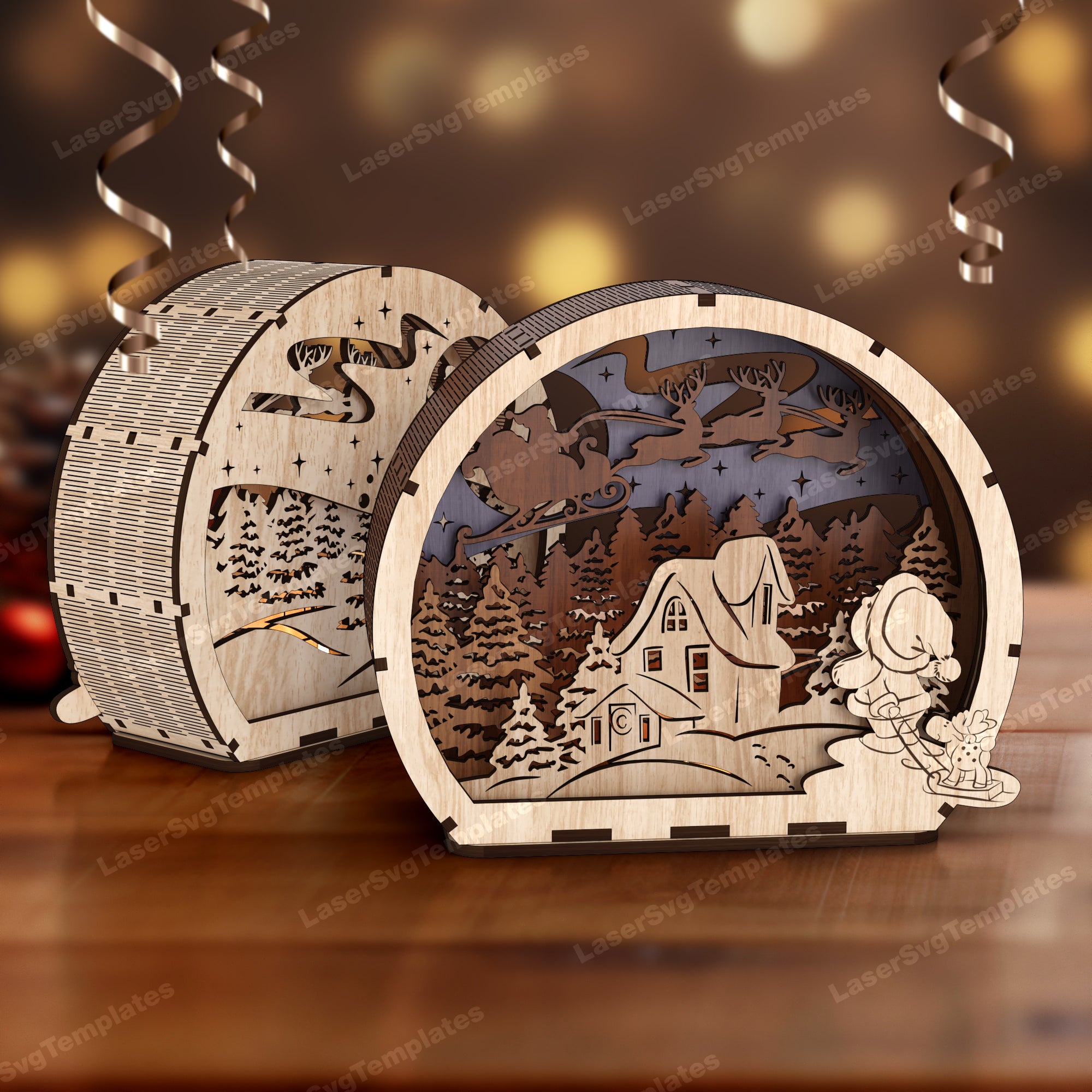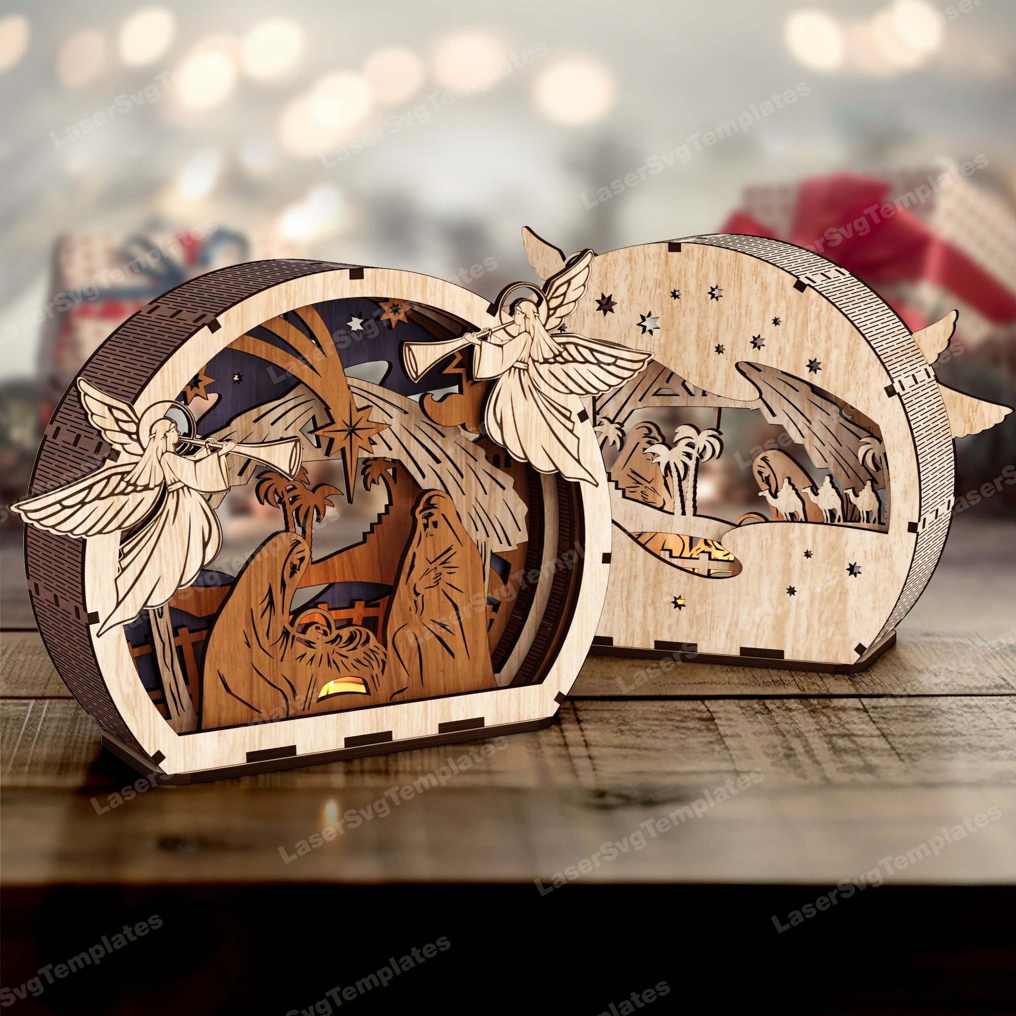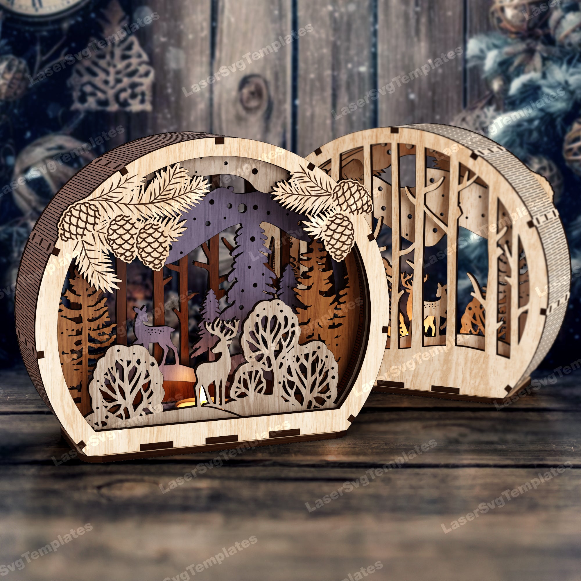 Christmas scene candle holder 3 bundle laser cut svg file