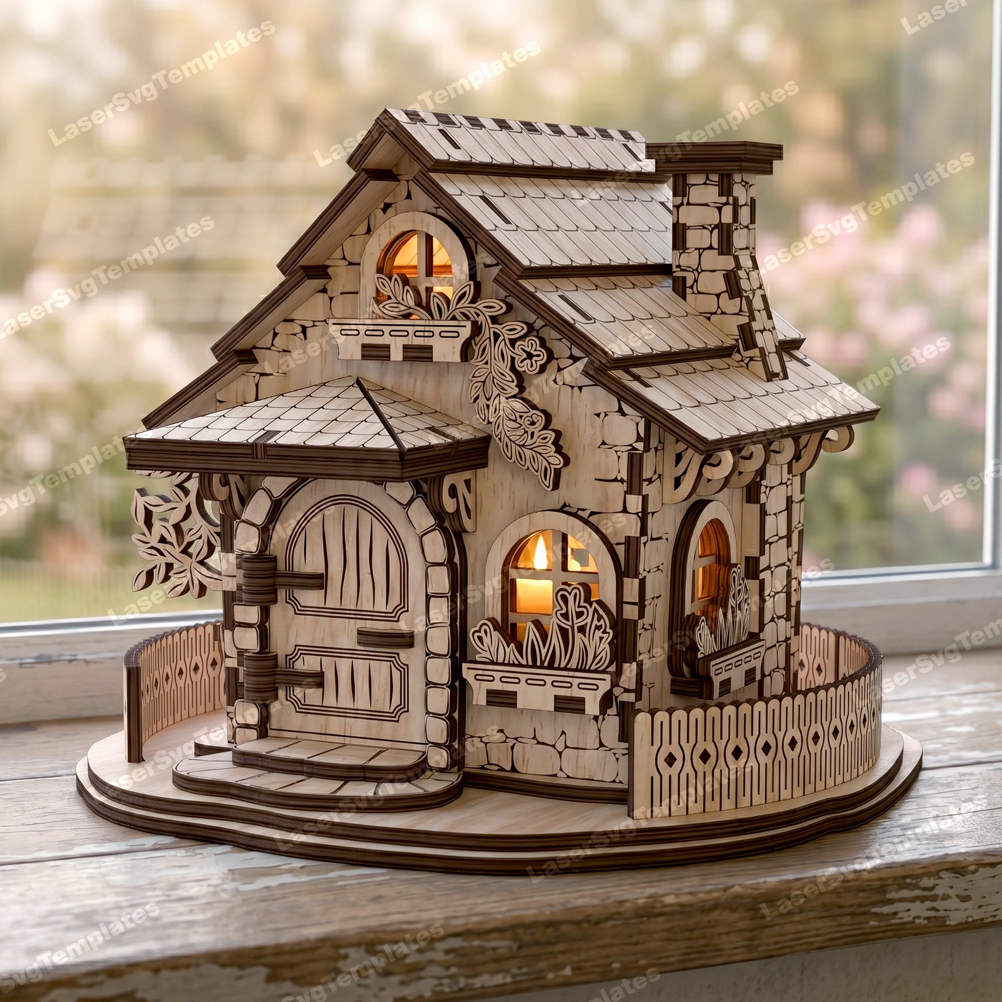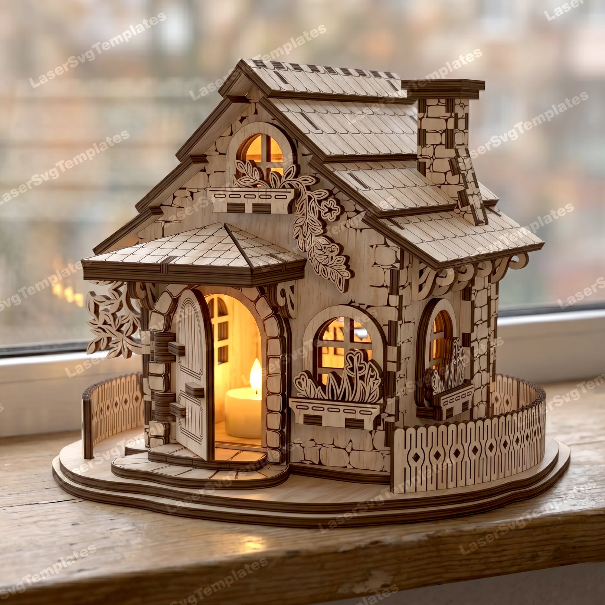 Floral House Candle Holder SVG Laser Cut File