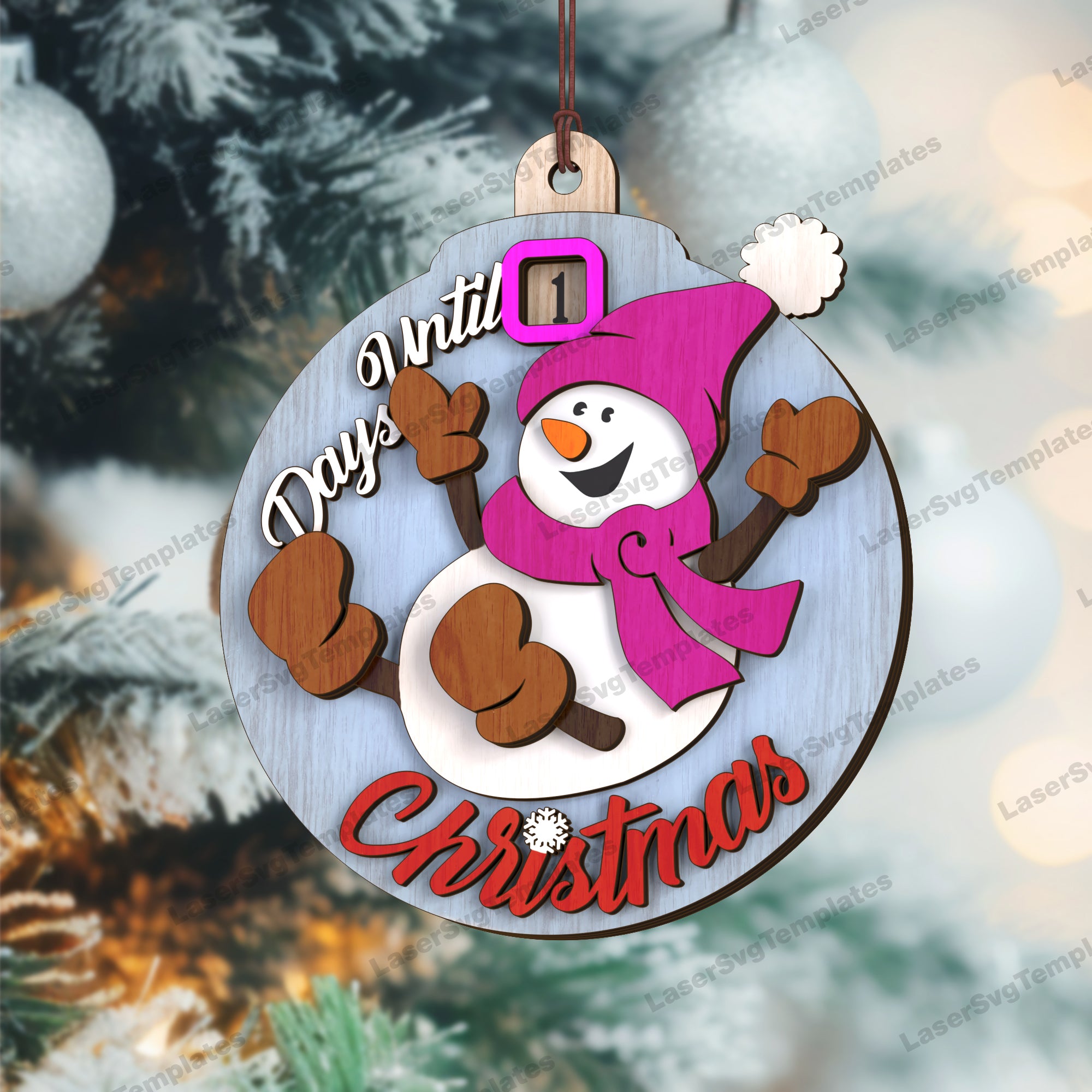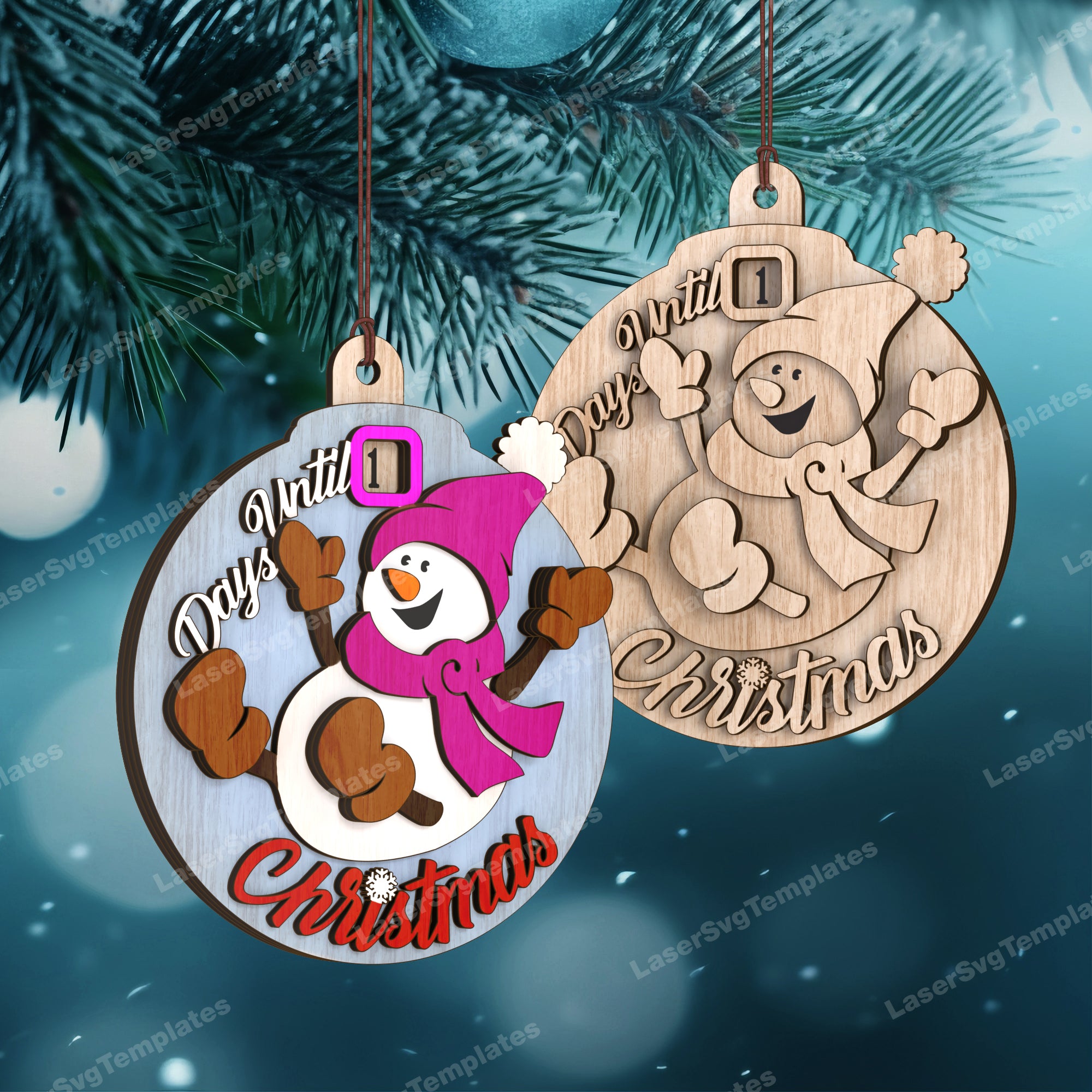 — Laser cut Christmas Countdown Calendar snowman ornament svg file