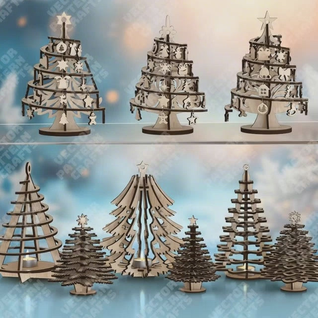 Laser cut Christmas tree Decorative 9 bundle svg file