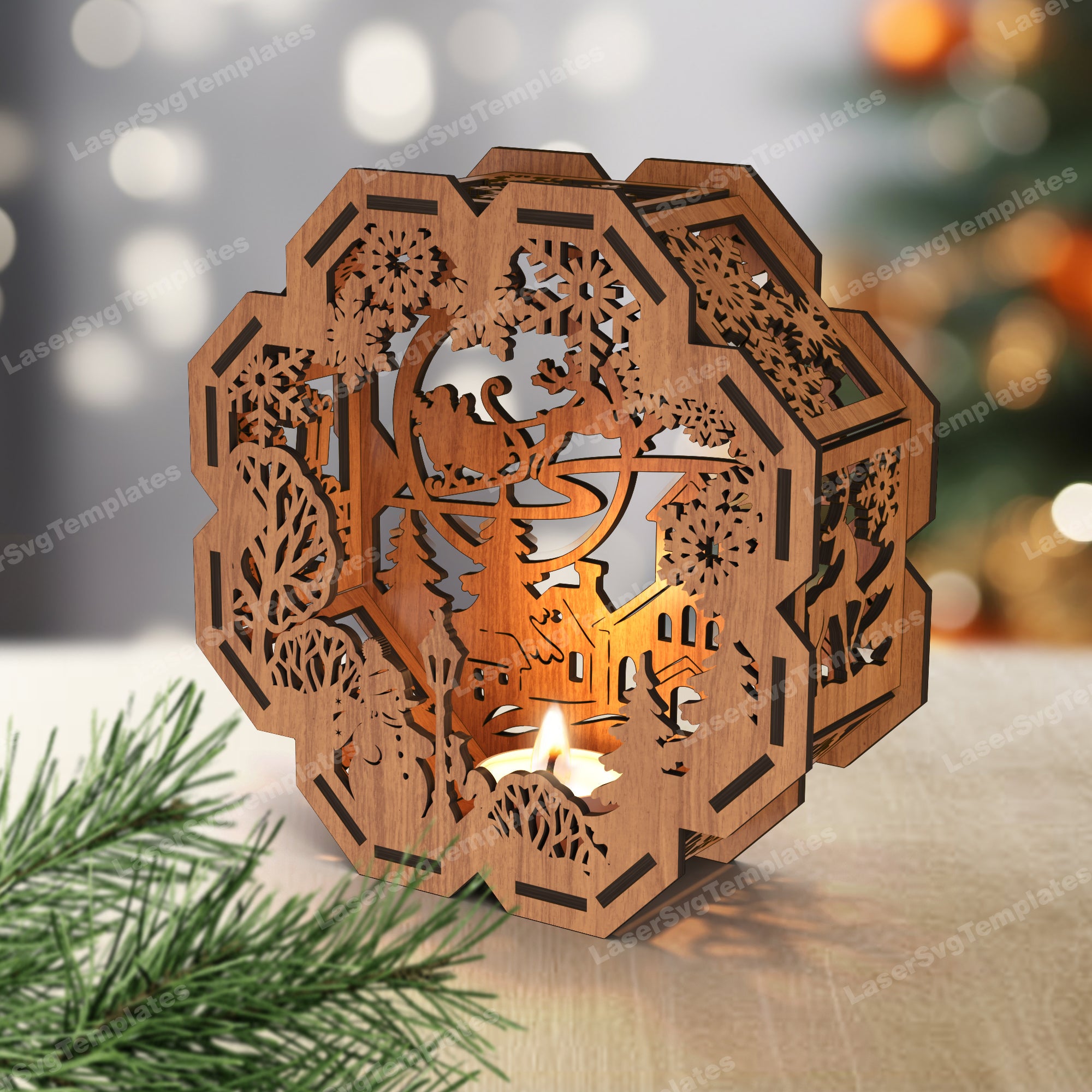 — Laser cut Christmas Santa reindeer candle holder svg file