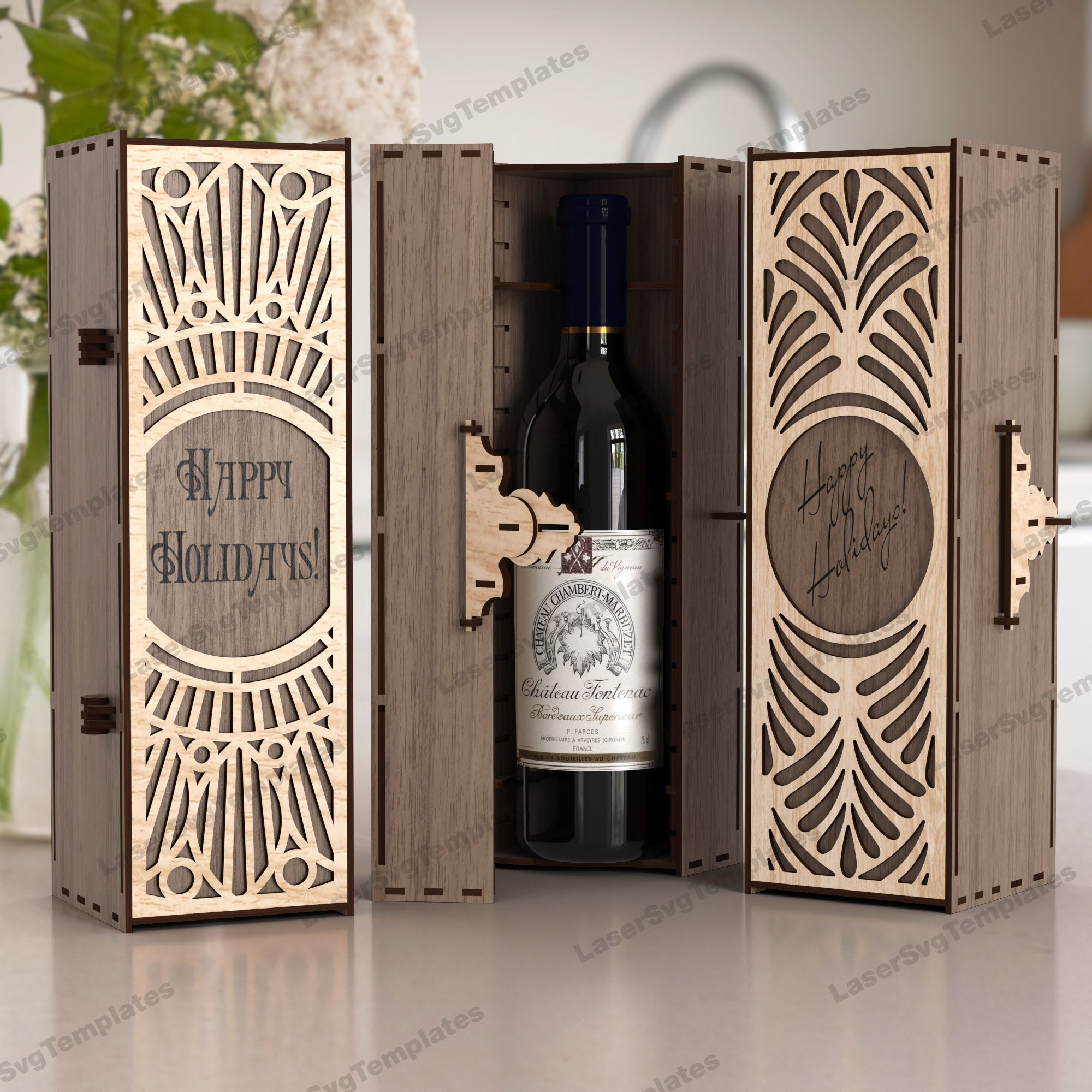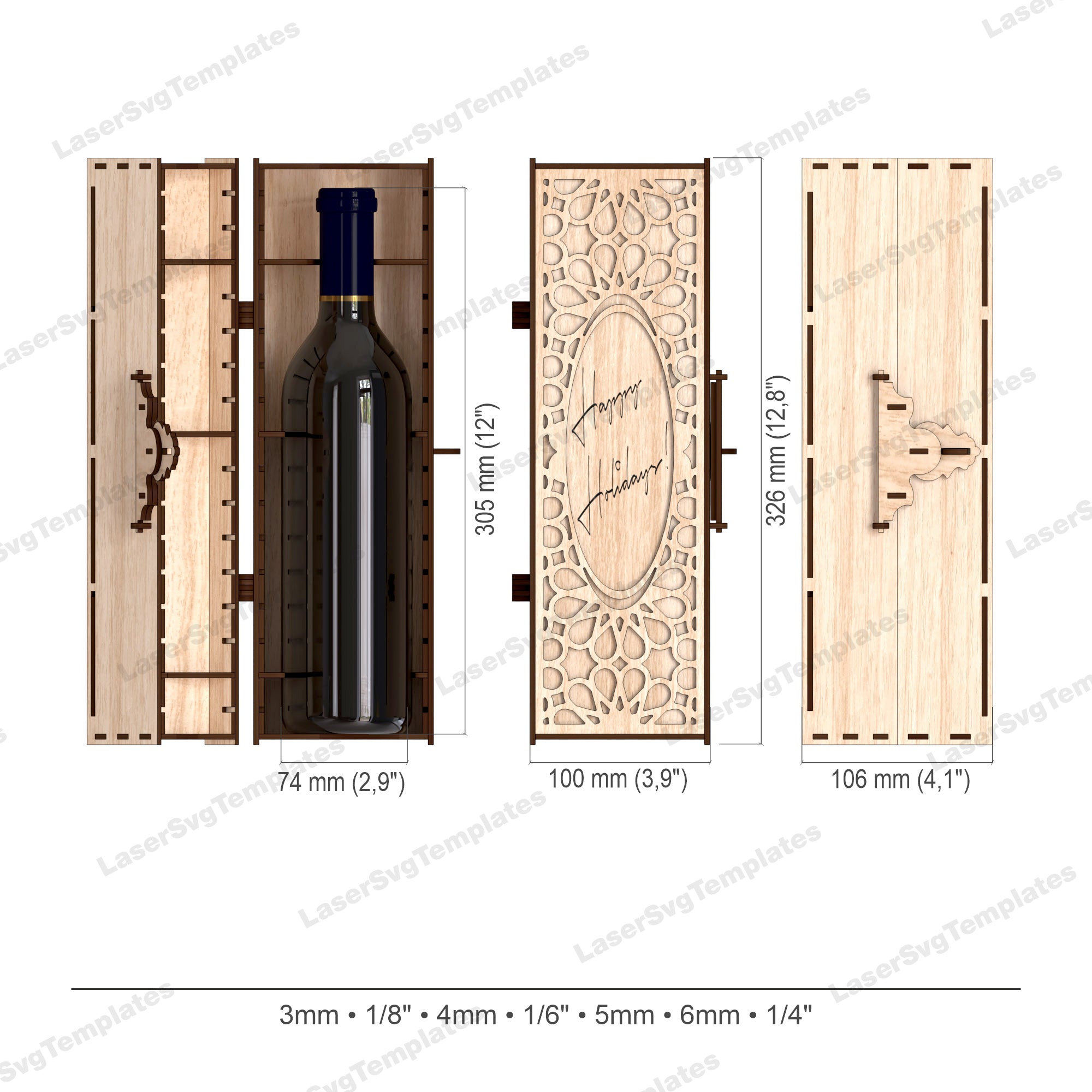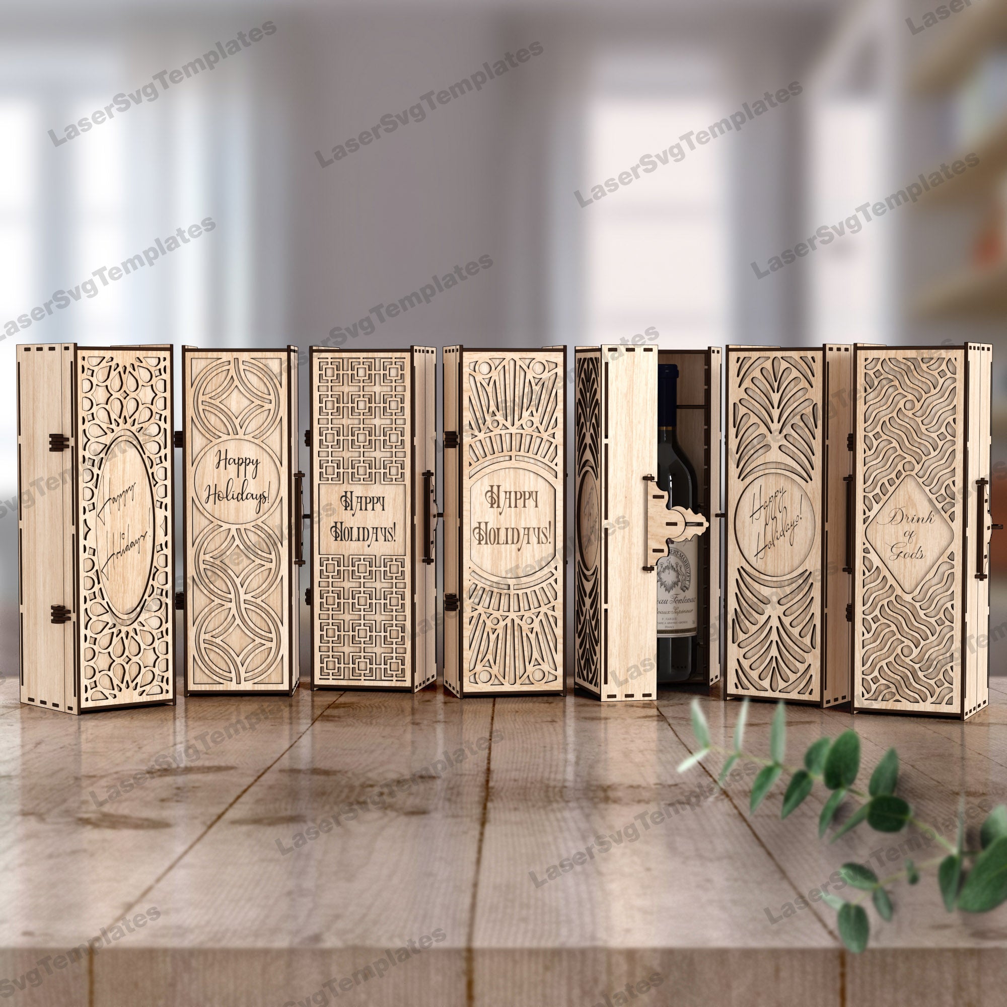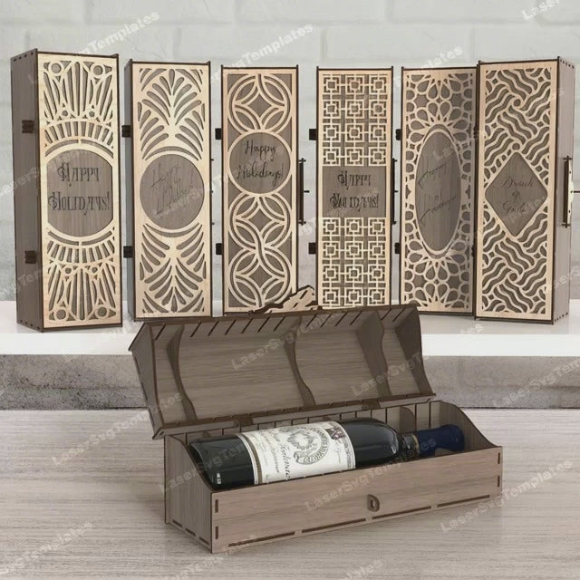 Wine bottle gift box 6 bundle laser cut svg file