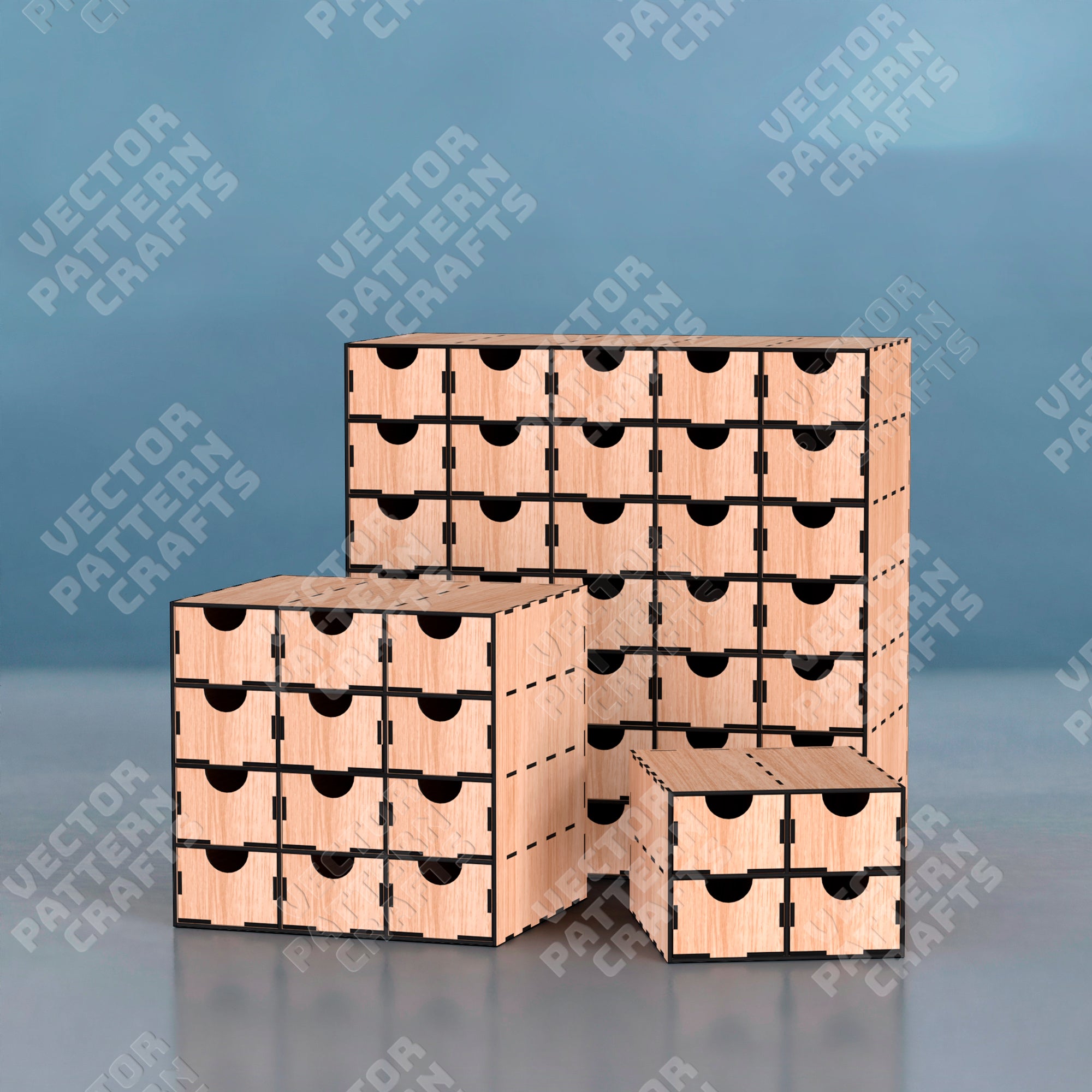 Desktop drawers organizer 3 bundle laser cut svg file