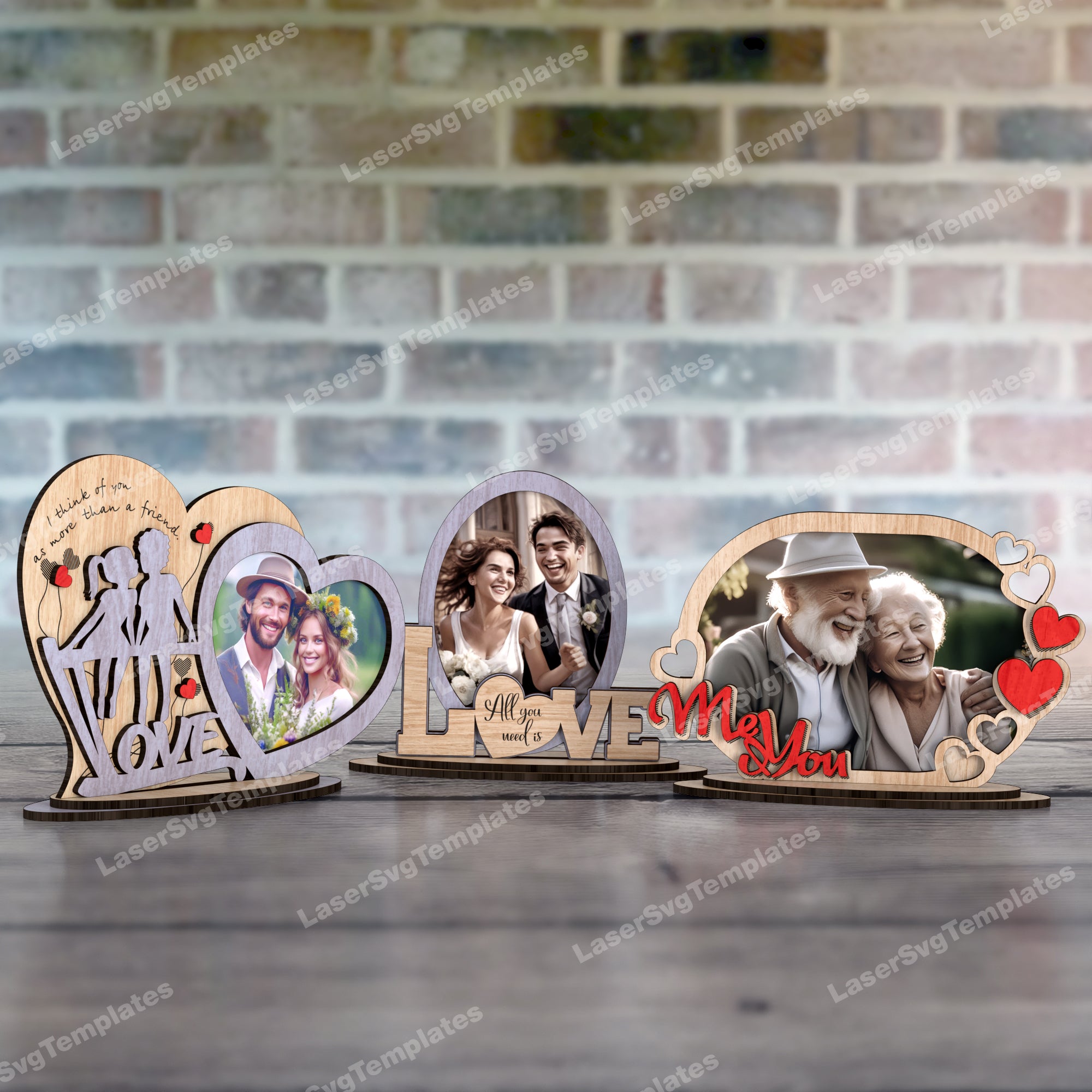 Valentines love heart photo frame 3 bundle laser cut svg file