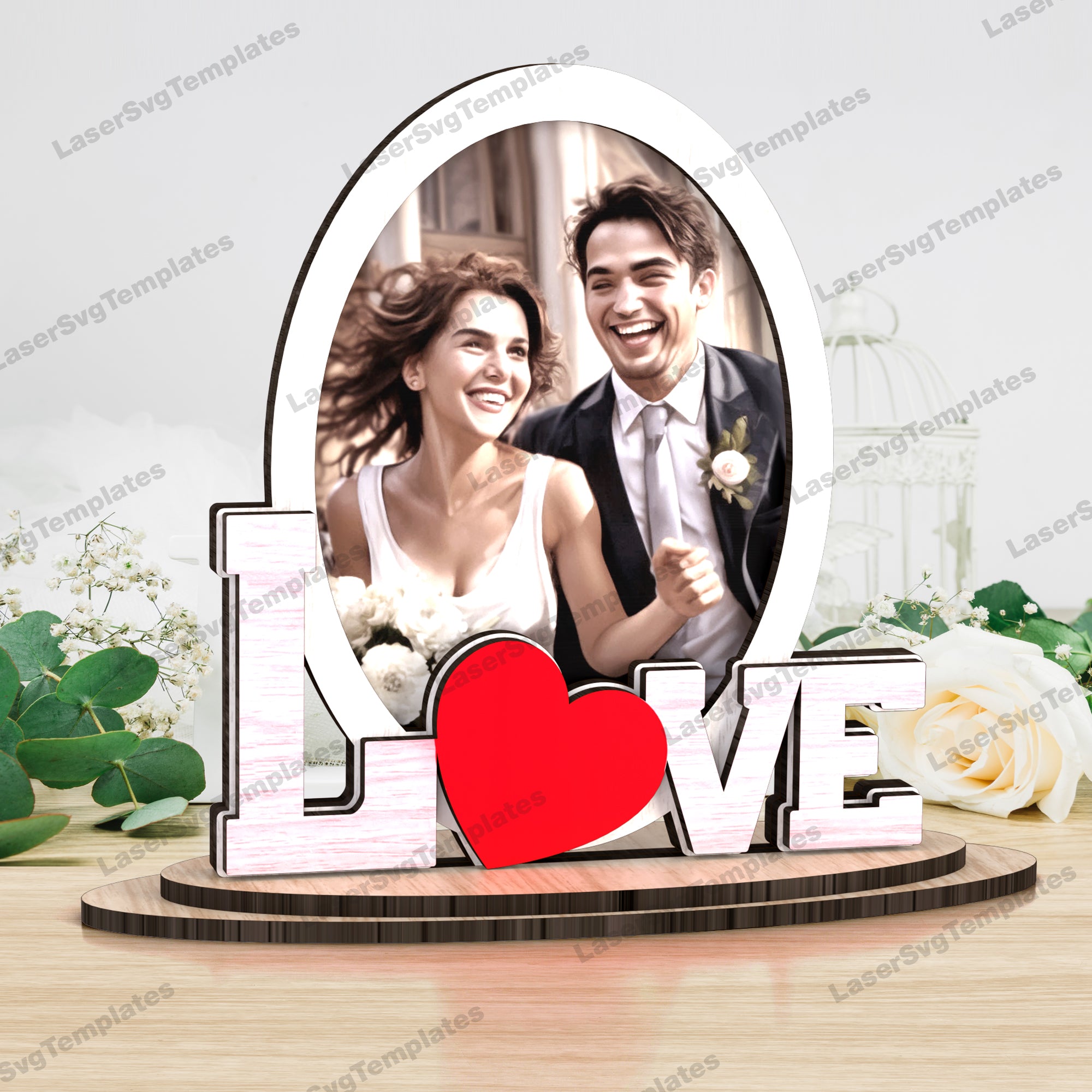Laser cut Valentines love heart photo frame svg file