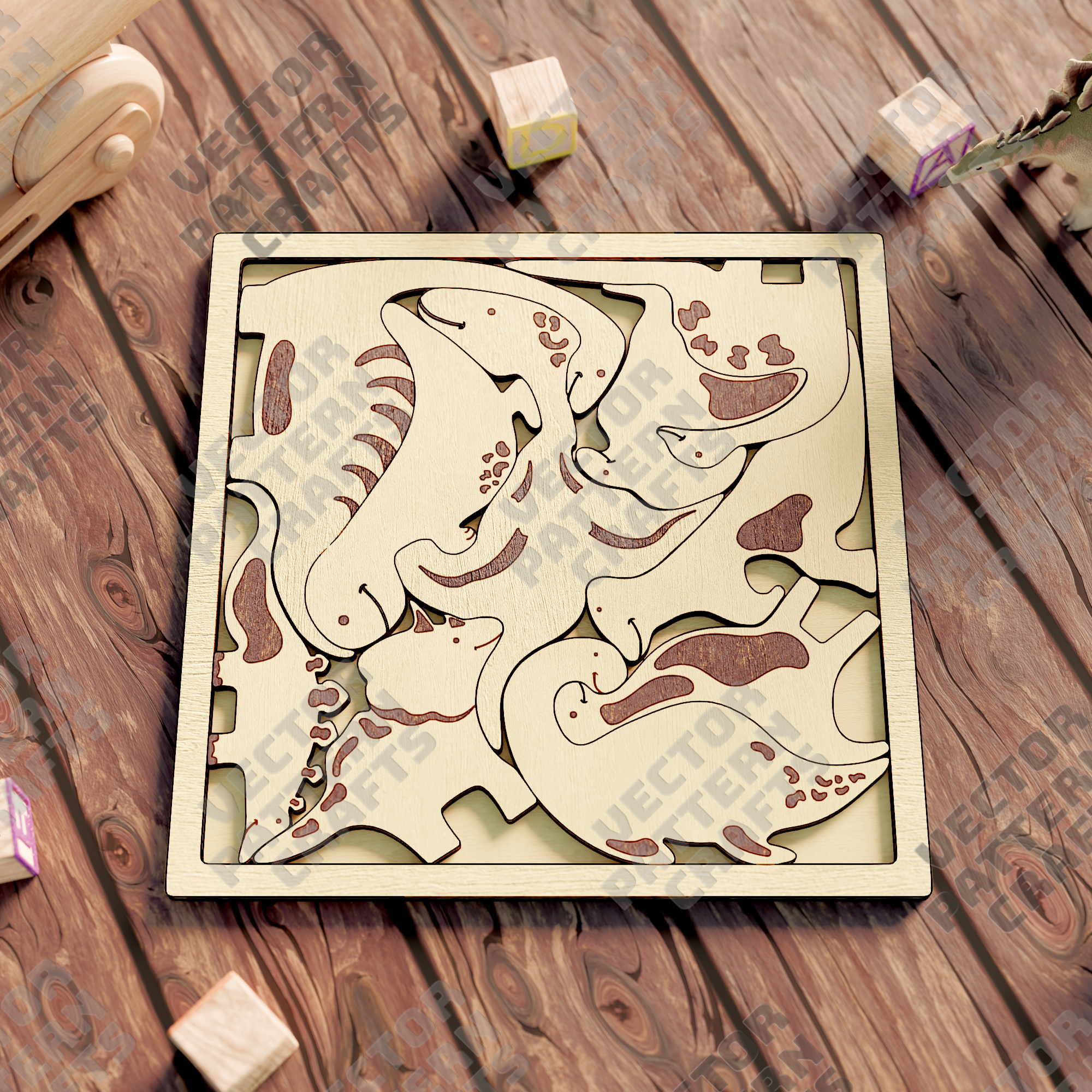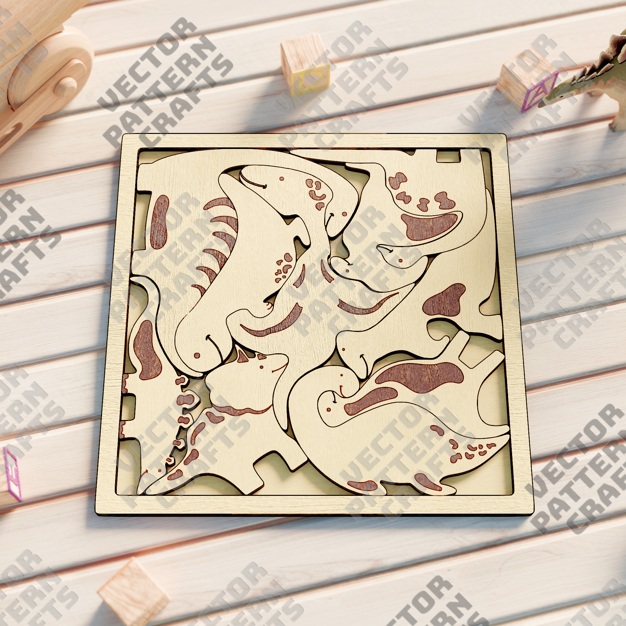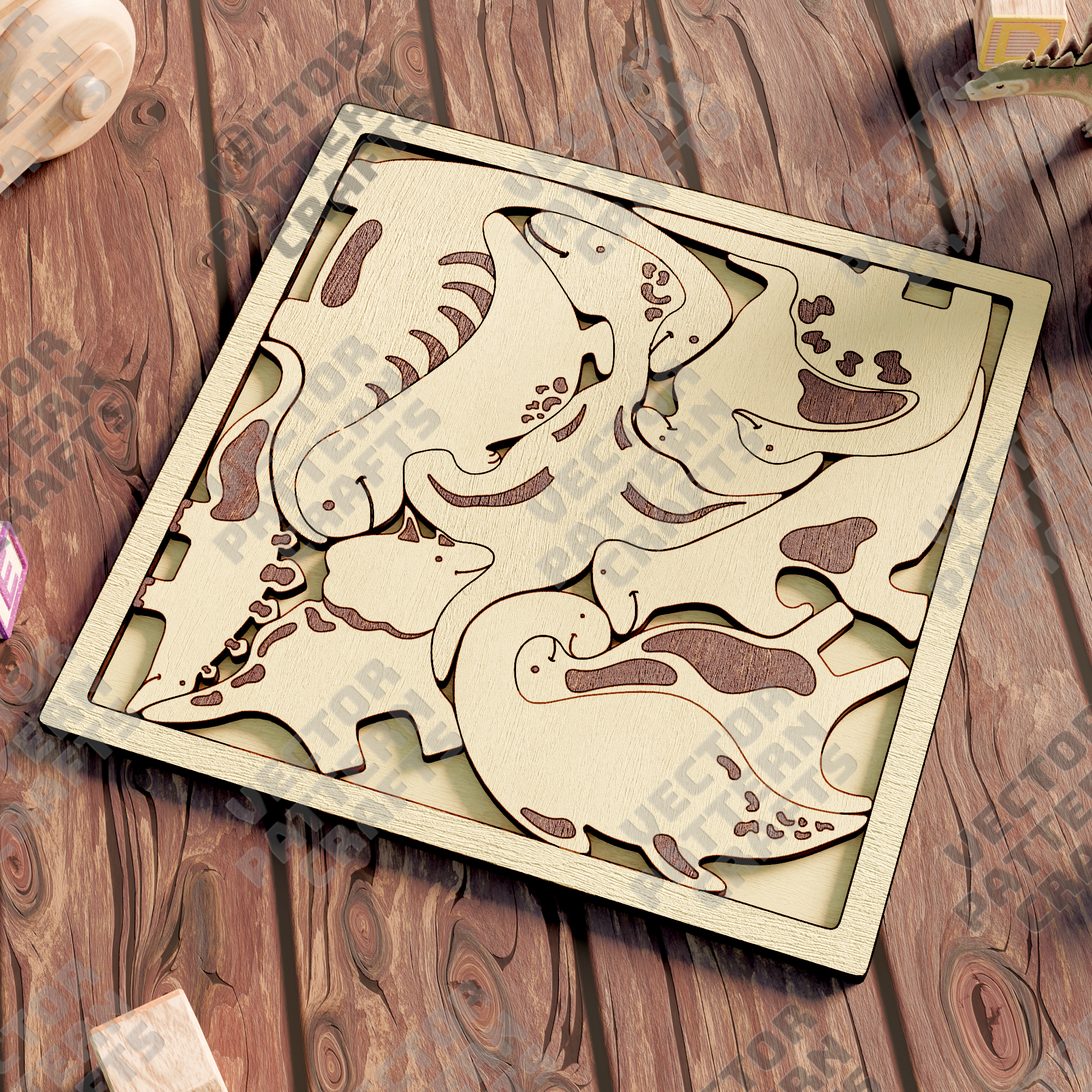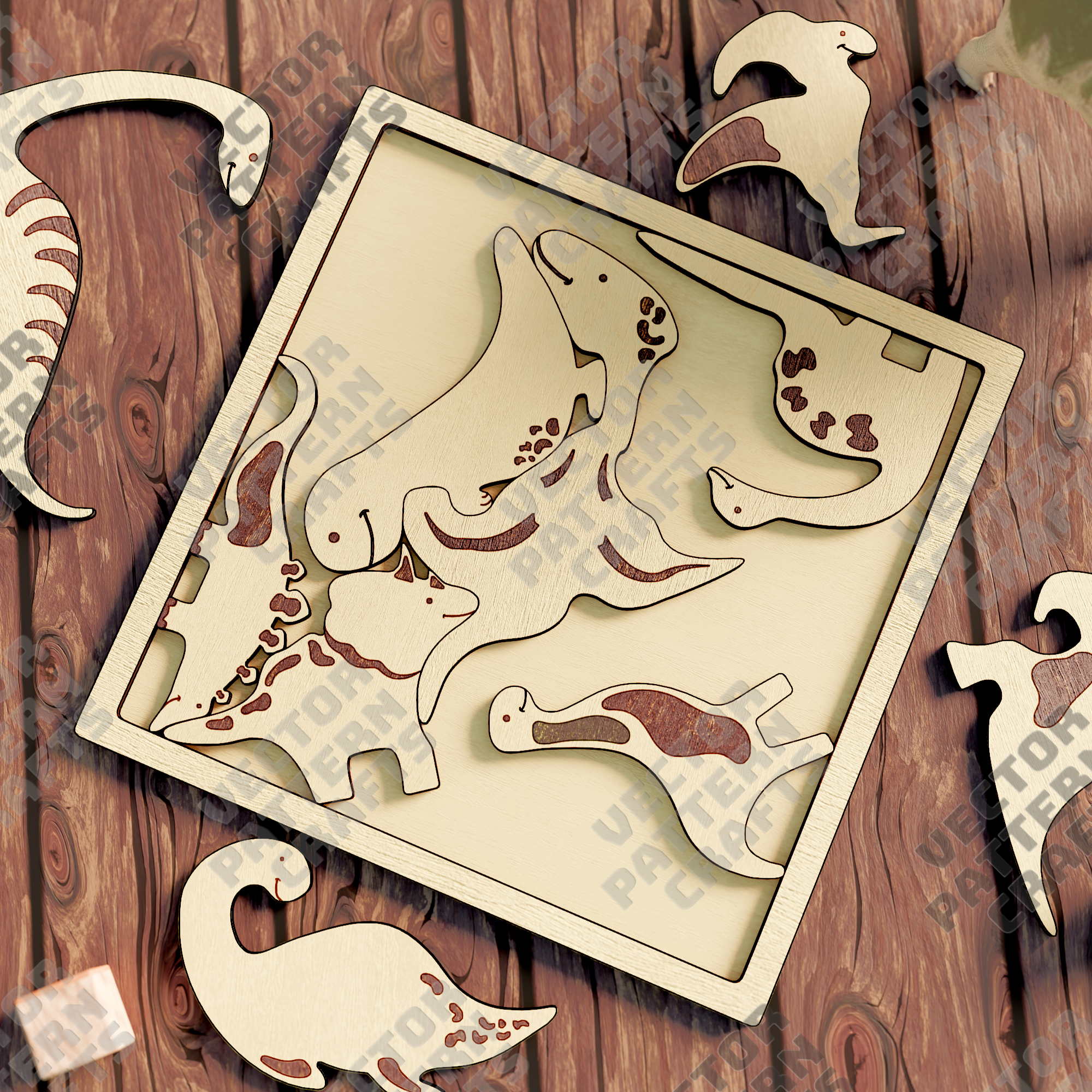 🔹 Laser cut dinosaurs puzzle svg cutting file
