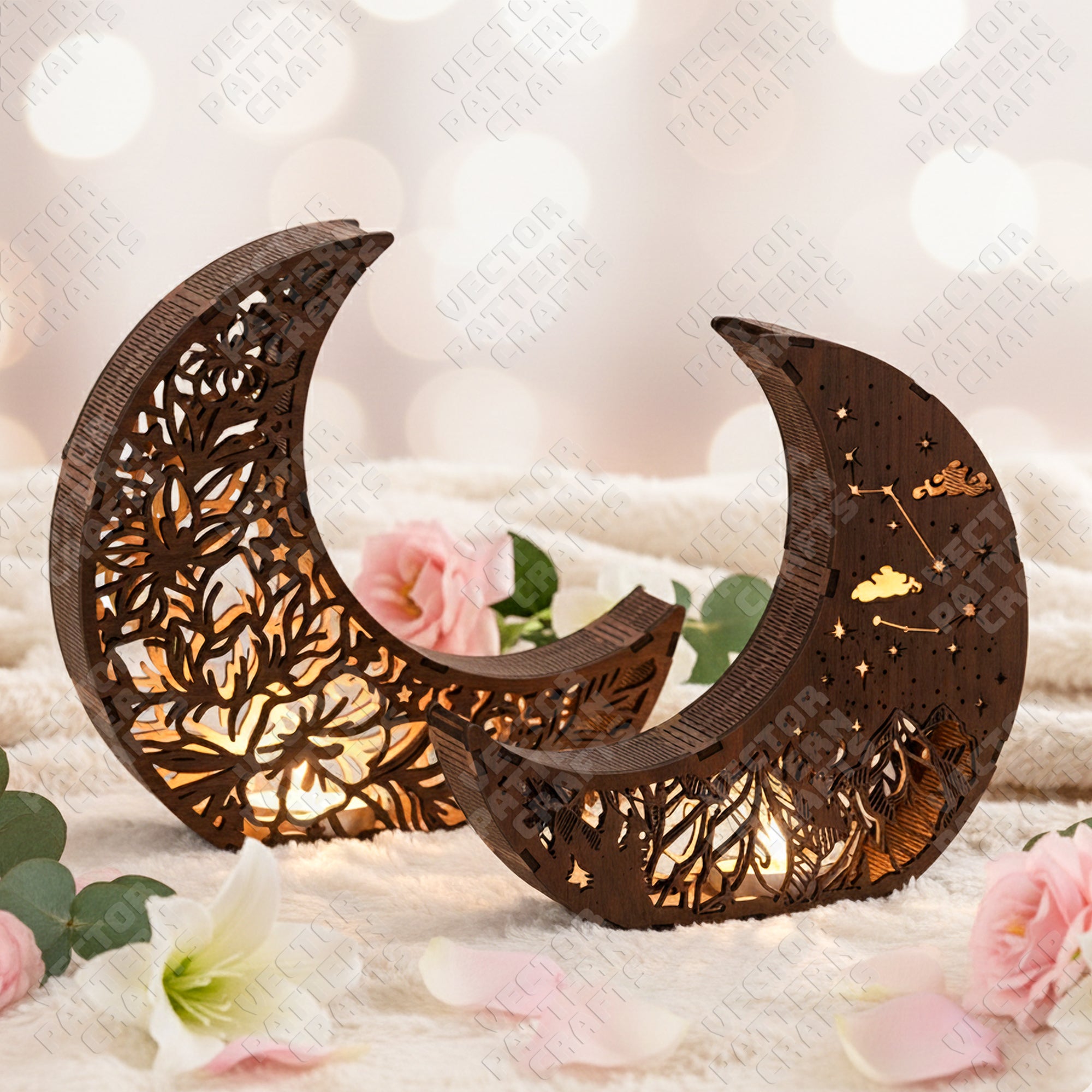 Decorative moon night lamp 2 set laser cut svg file