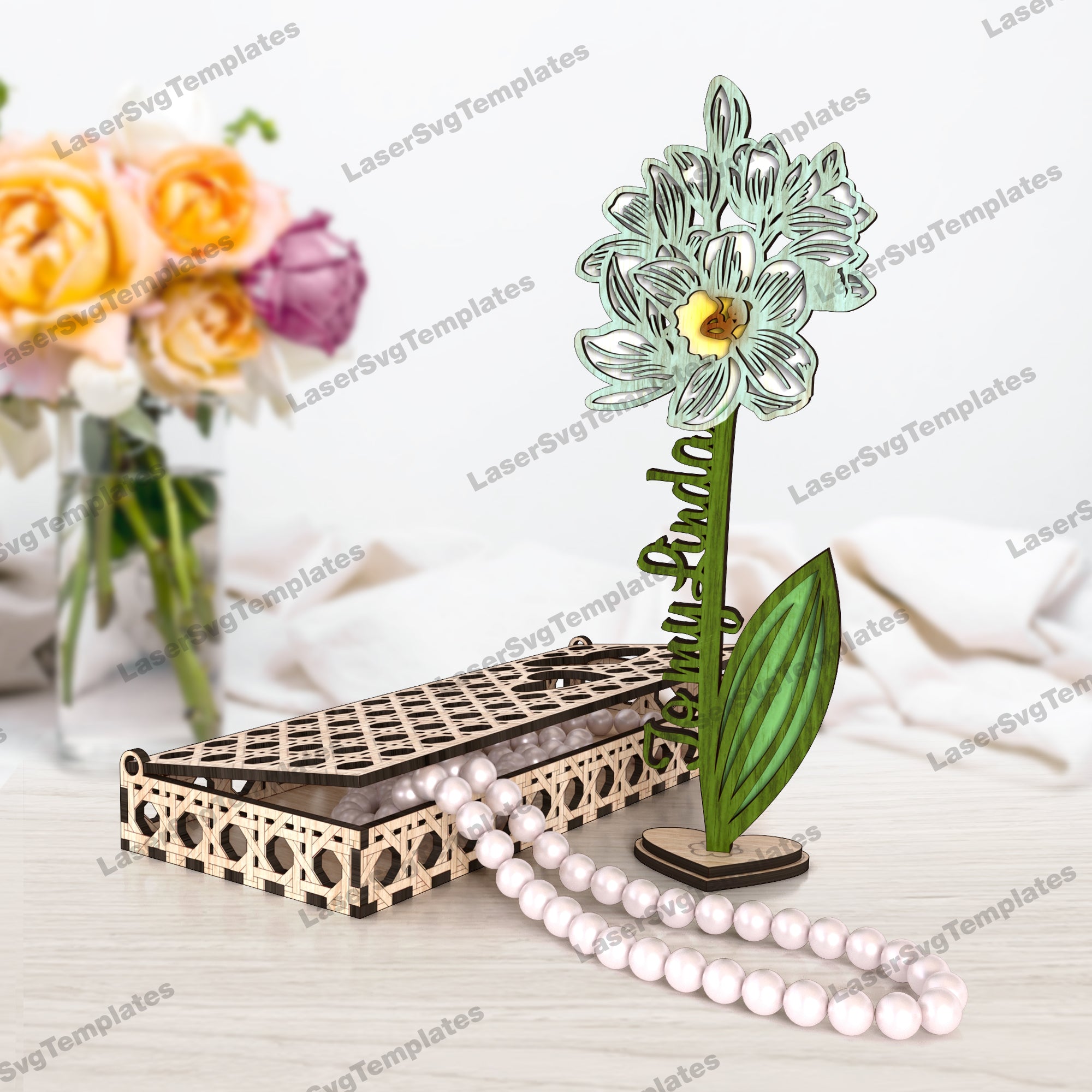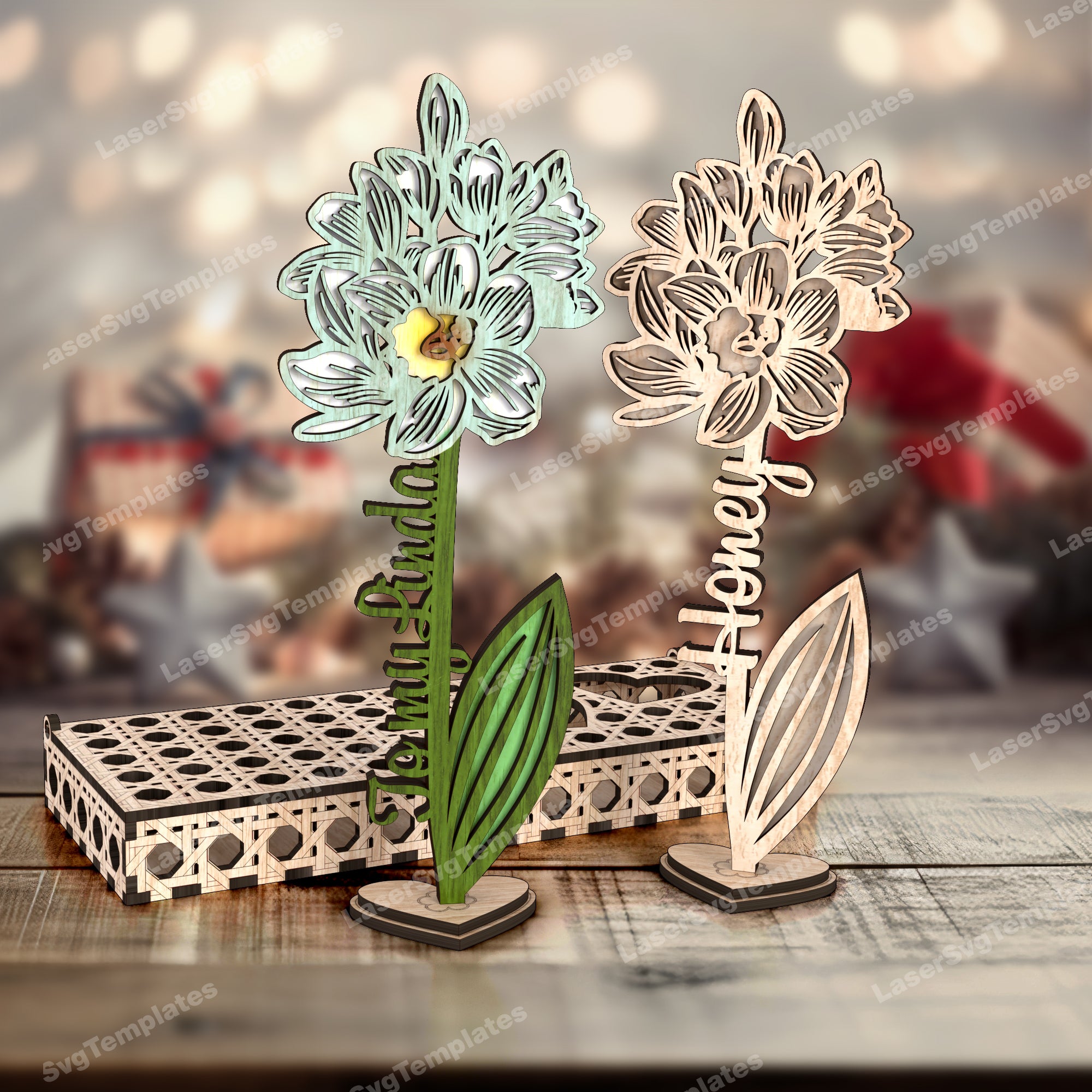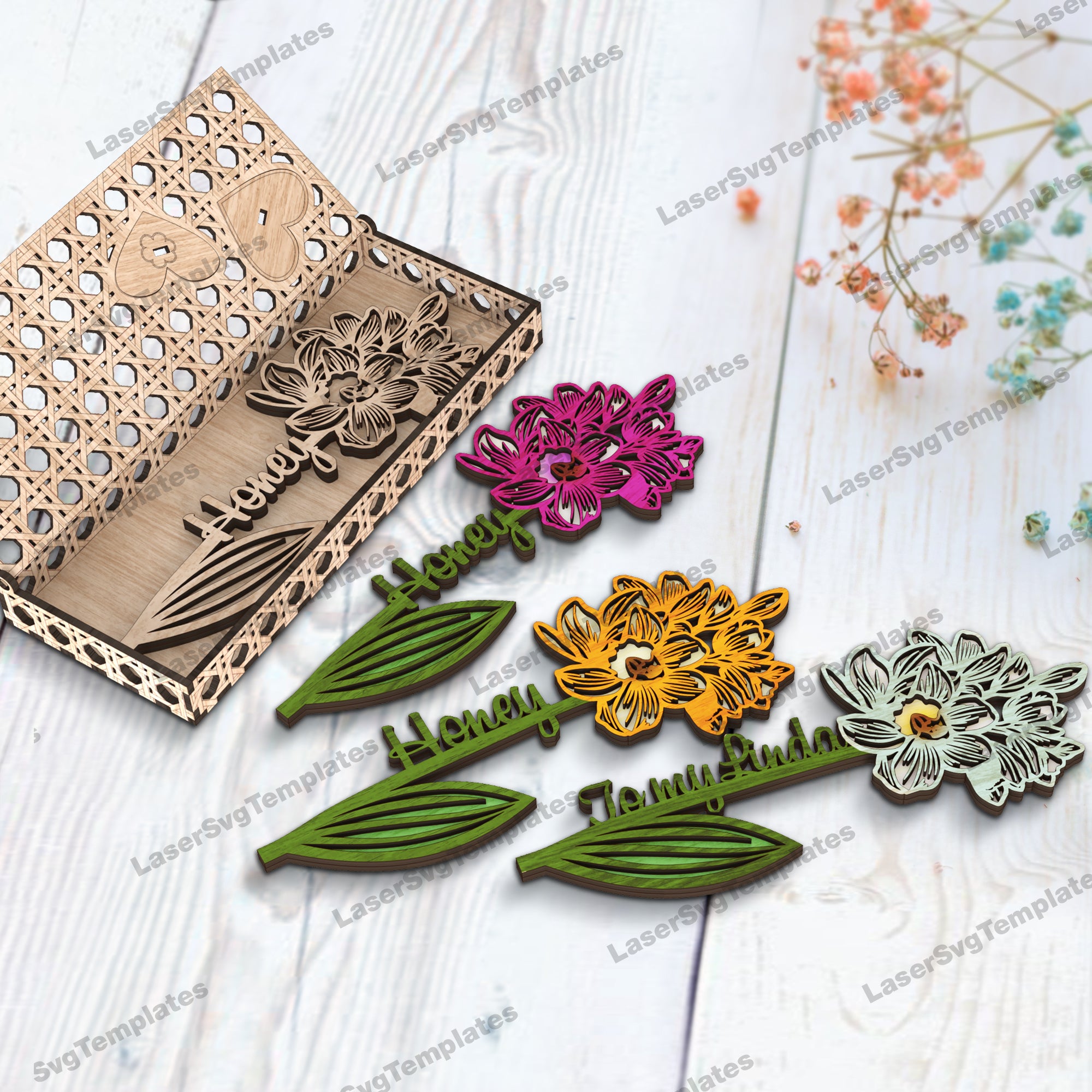 — Stand Valentines flowers with box laser cut svg file