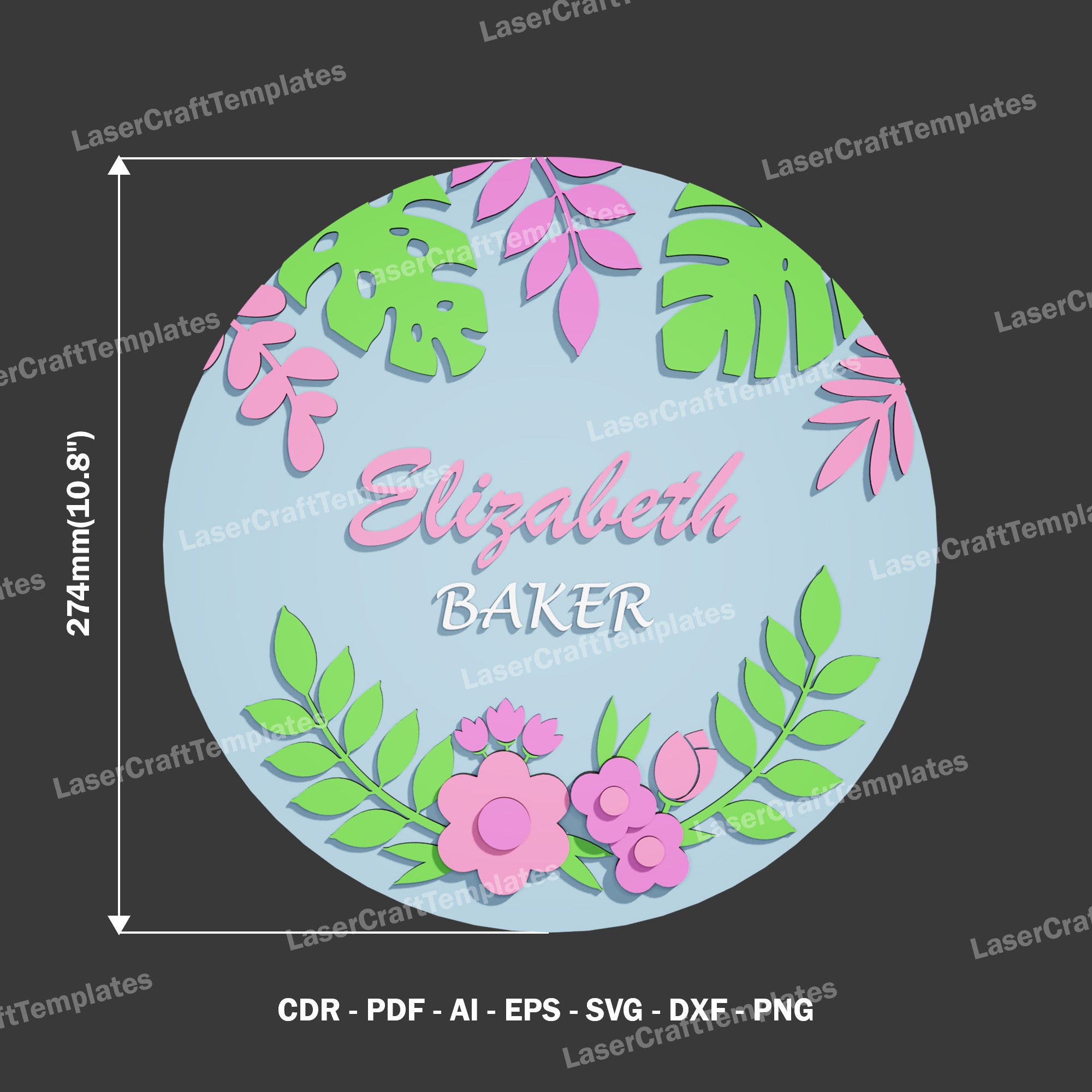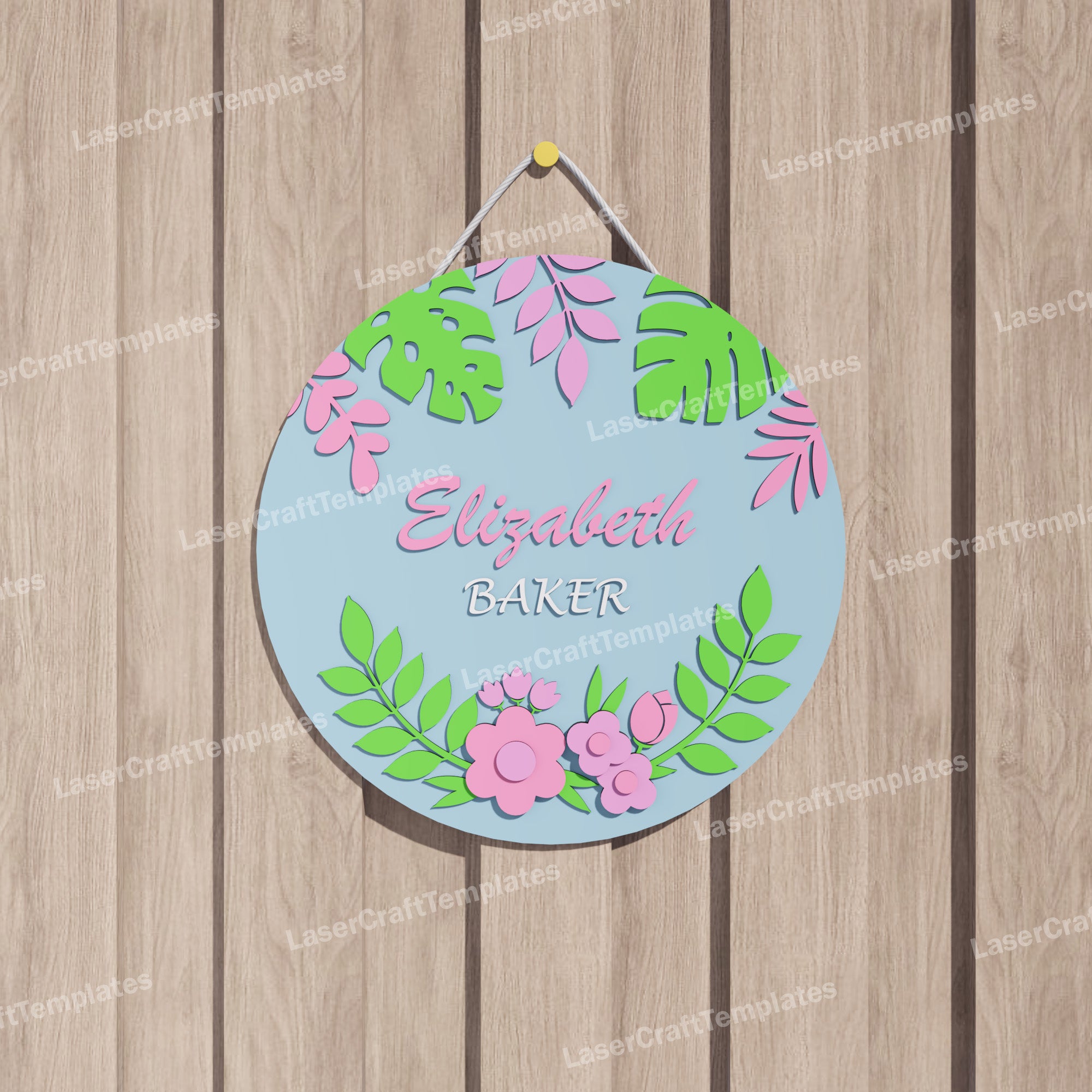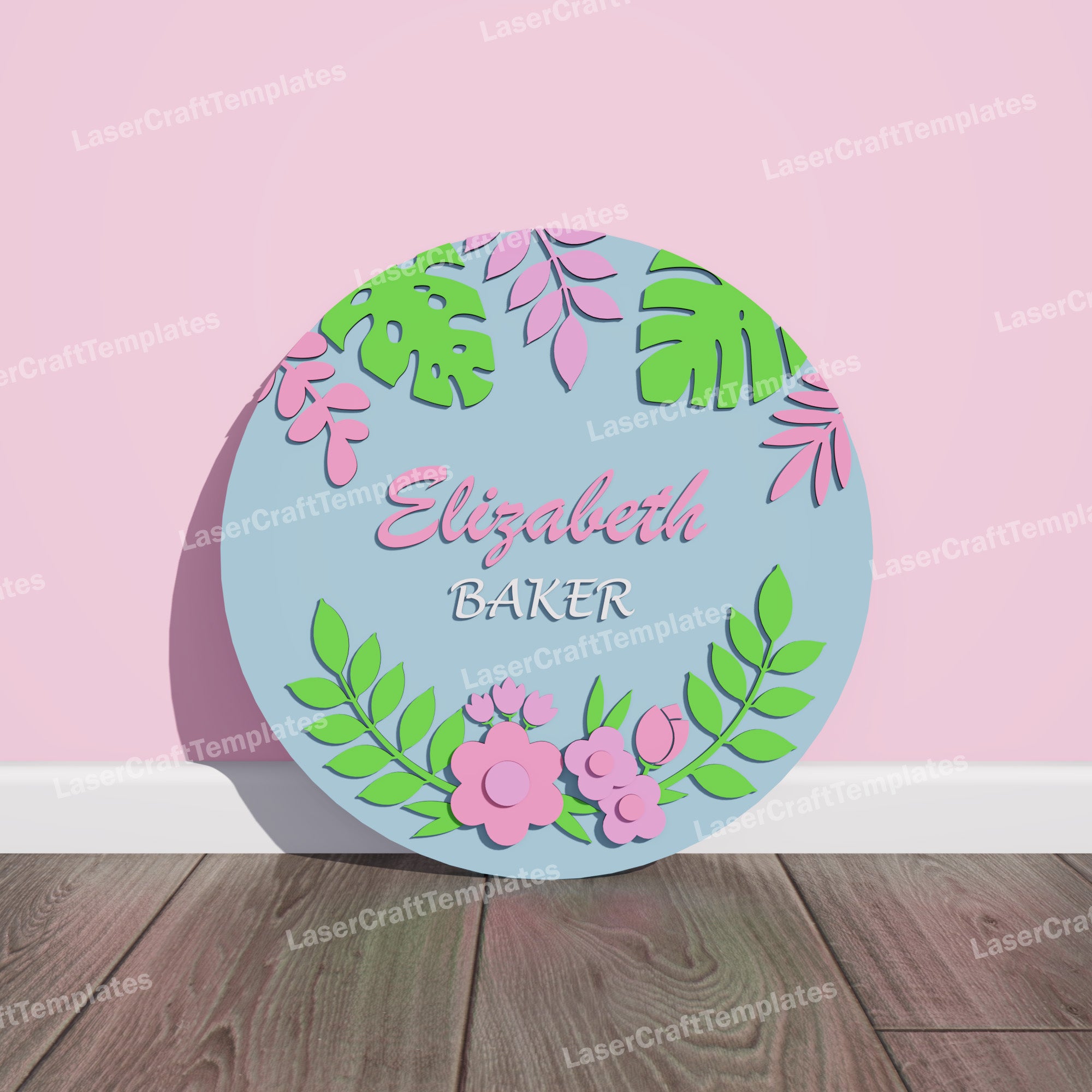 🔹 Wooden Flowers Baby Name Sign Door hanger laser cut svg file
