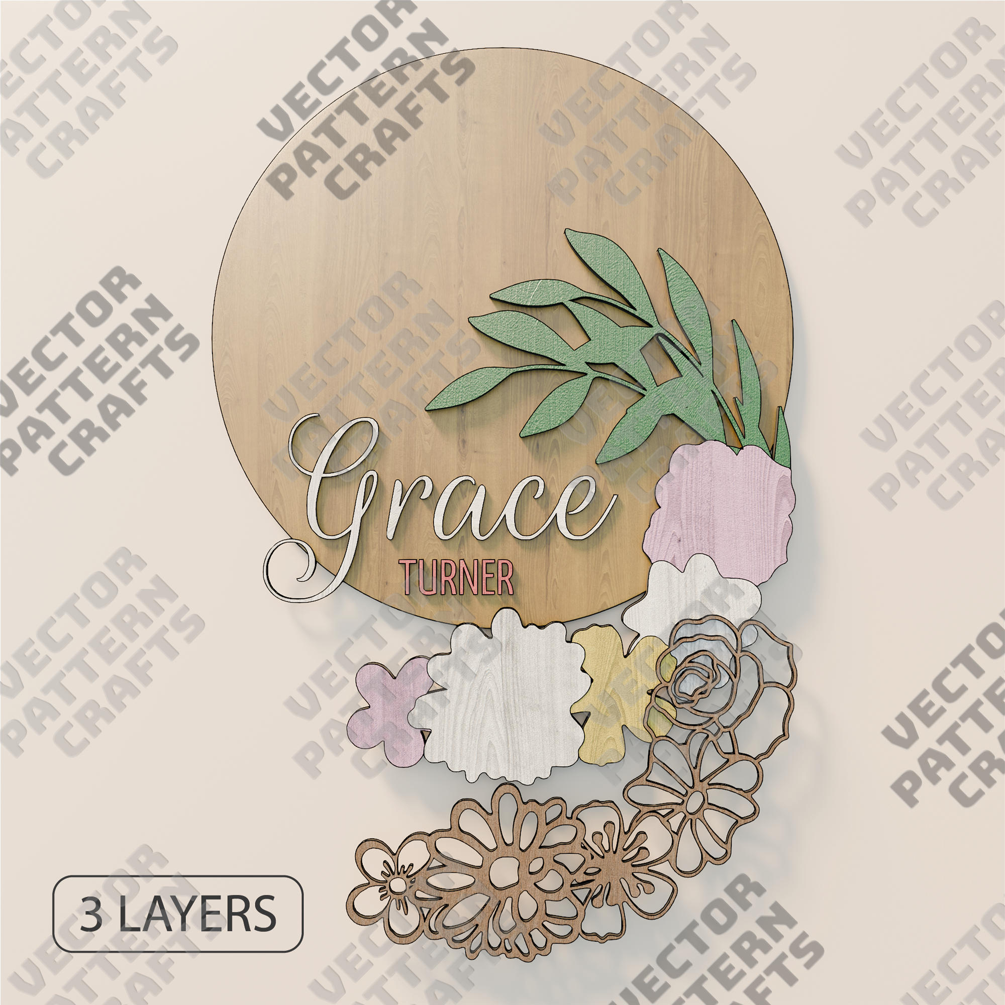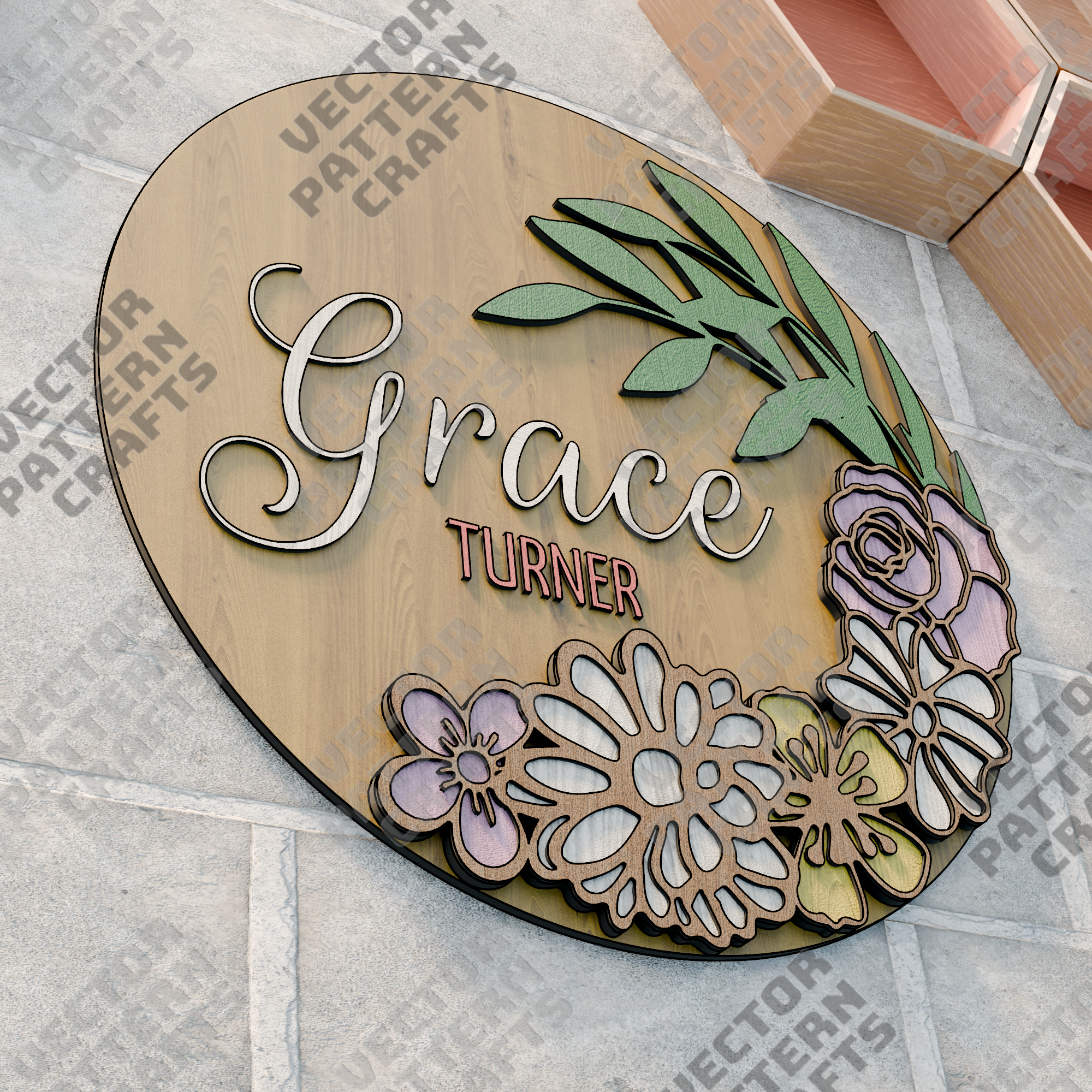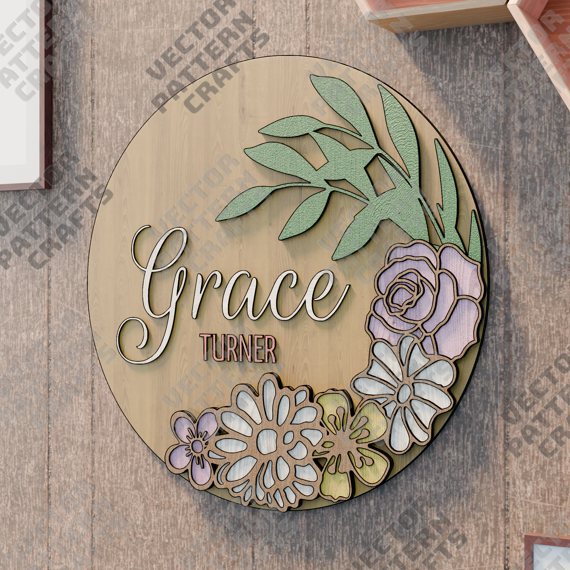 🔹 Floral Name Sign laser cut svg file
