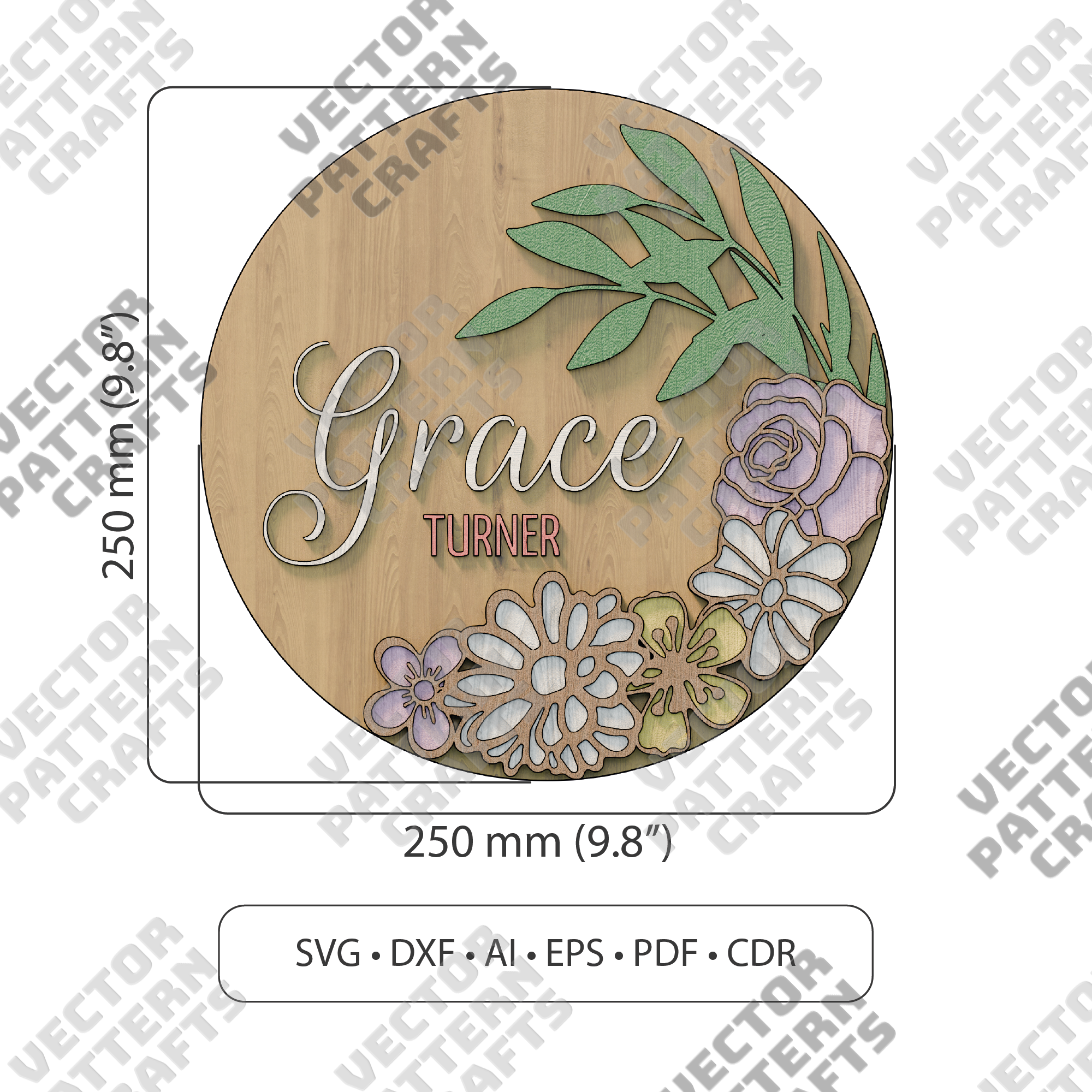 Floral Name Sign laser cut svg file