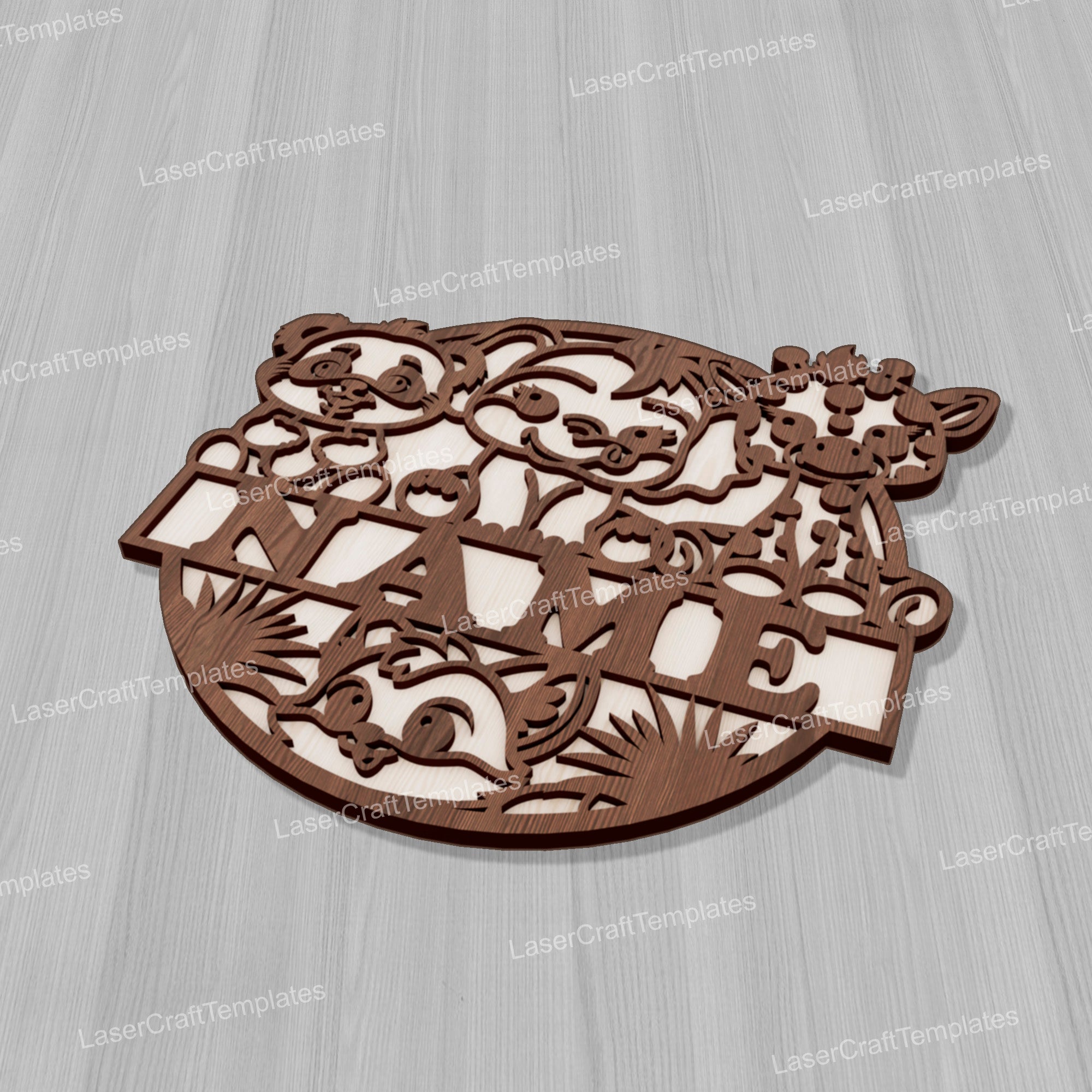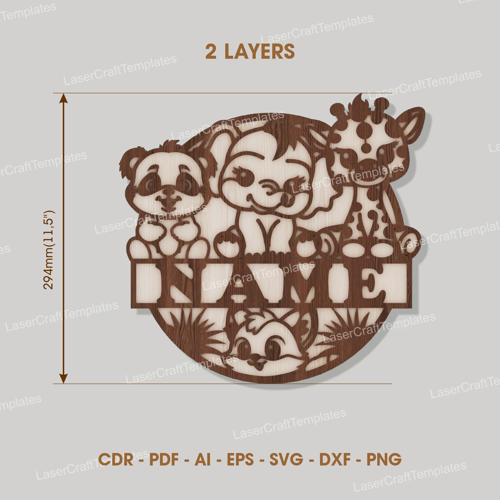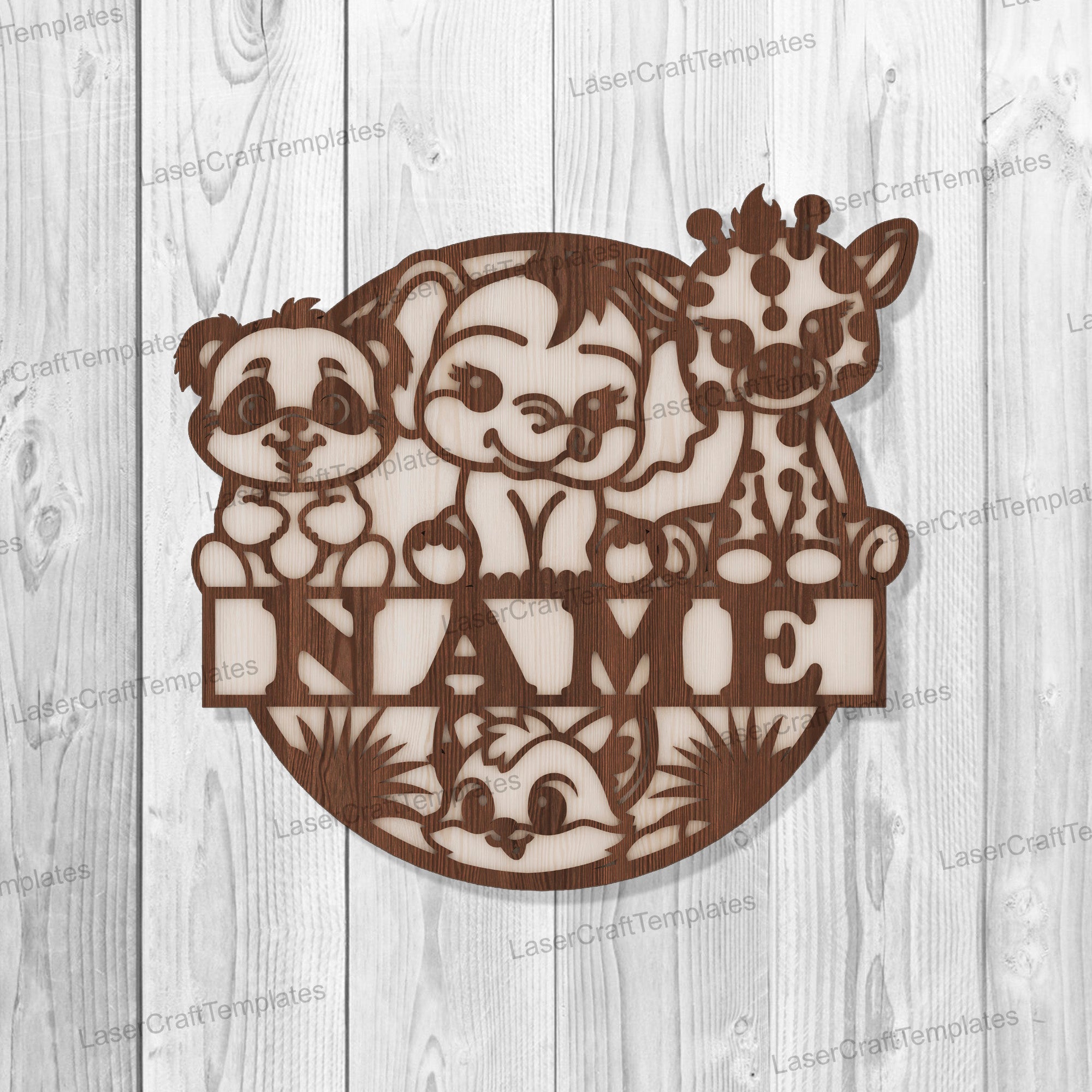 Laser cut Cute Animals Baby Name Sign svg template