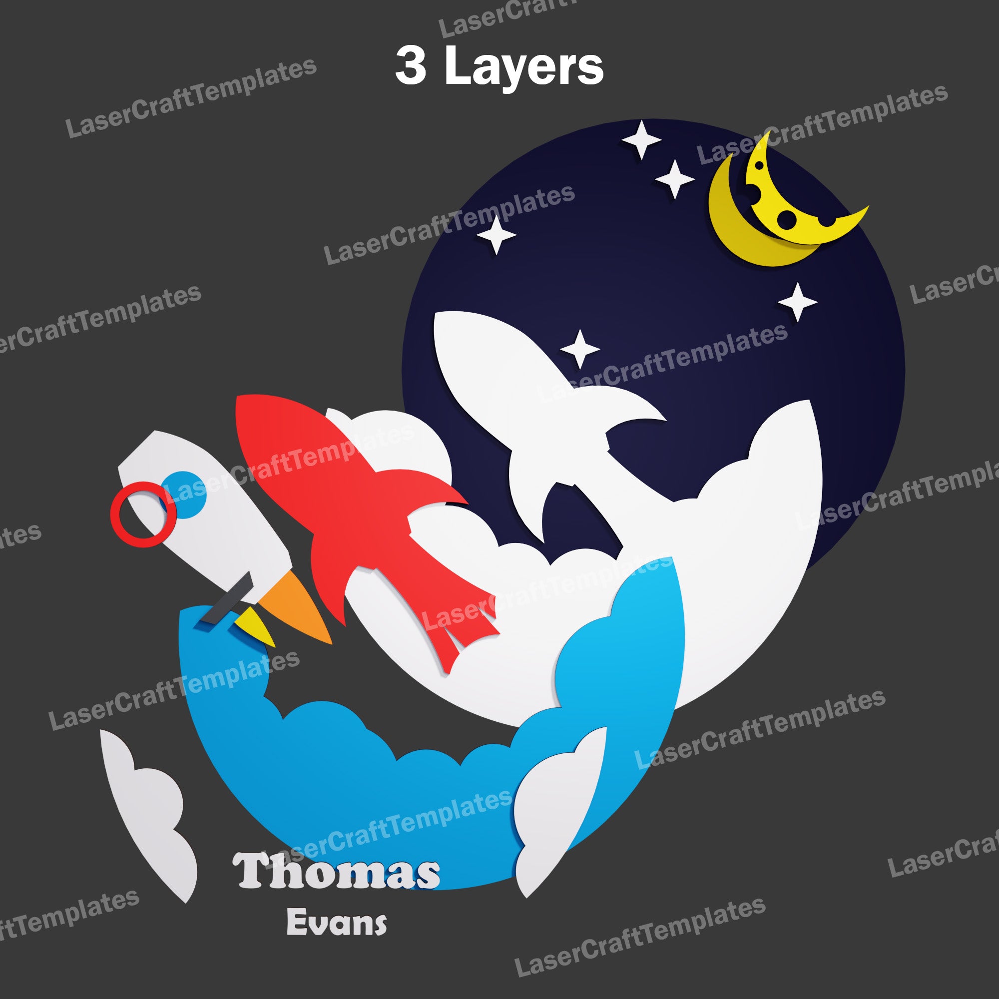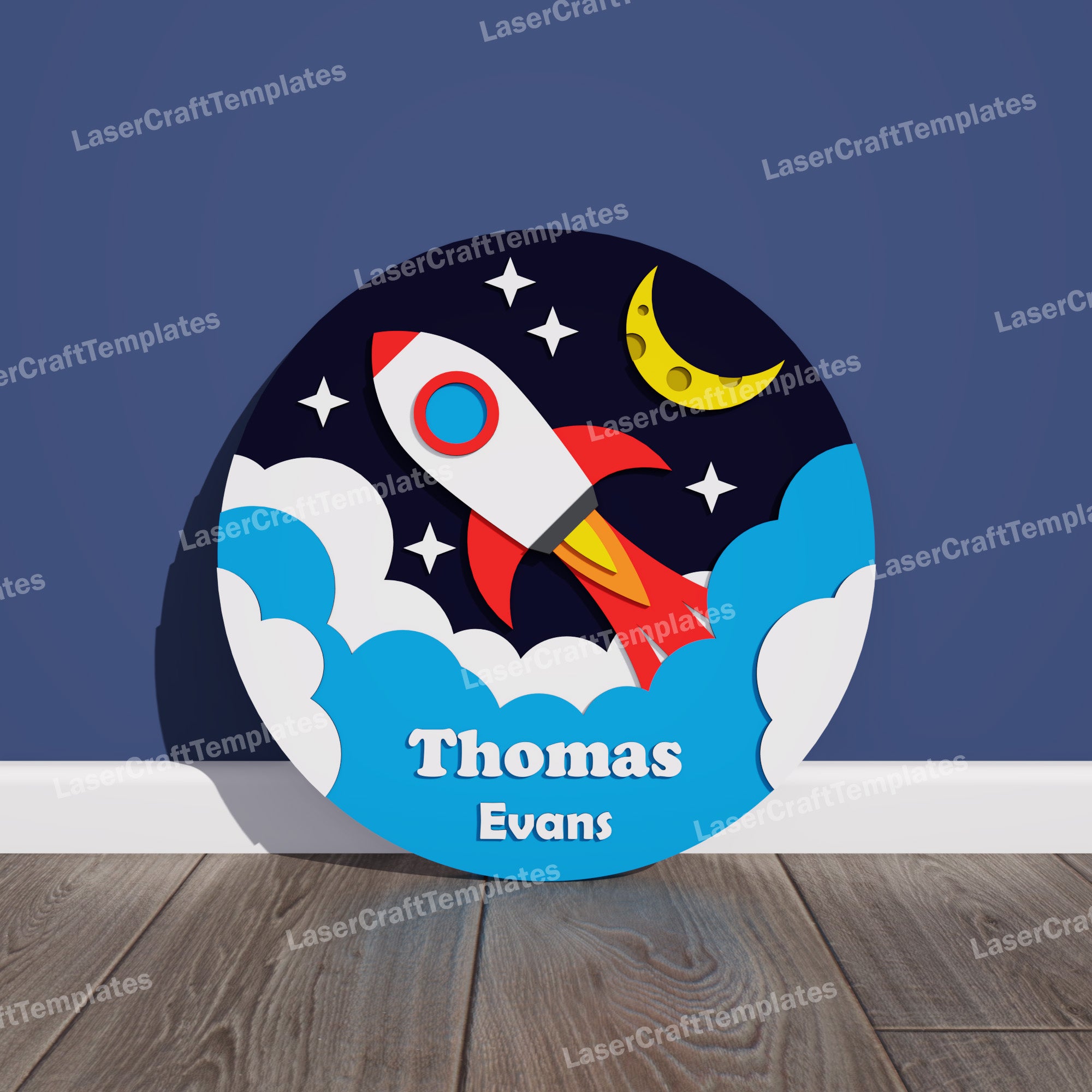 Laser cut Rocket Baby Name Sign Svg File