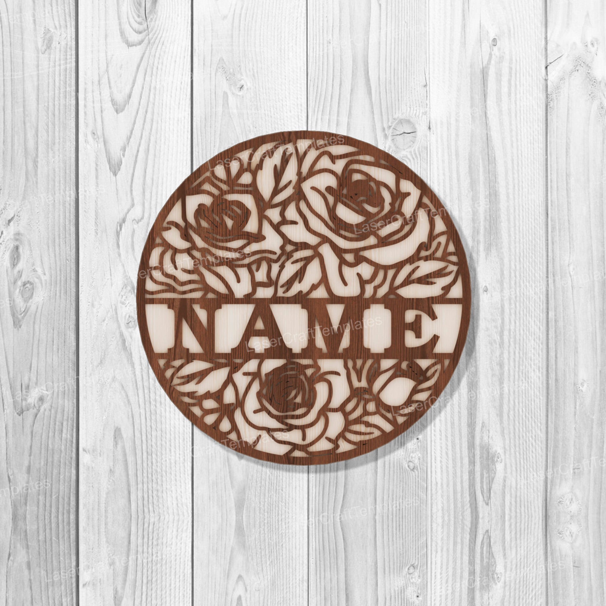 🔹 Laser cut Rose Flowers Name Sign svg template