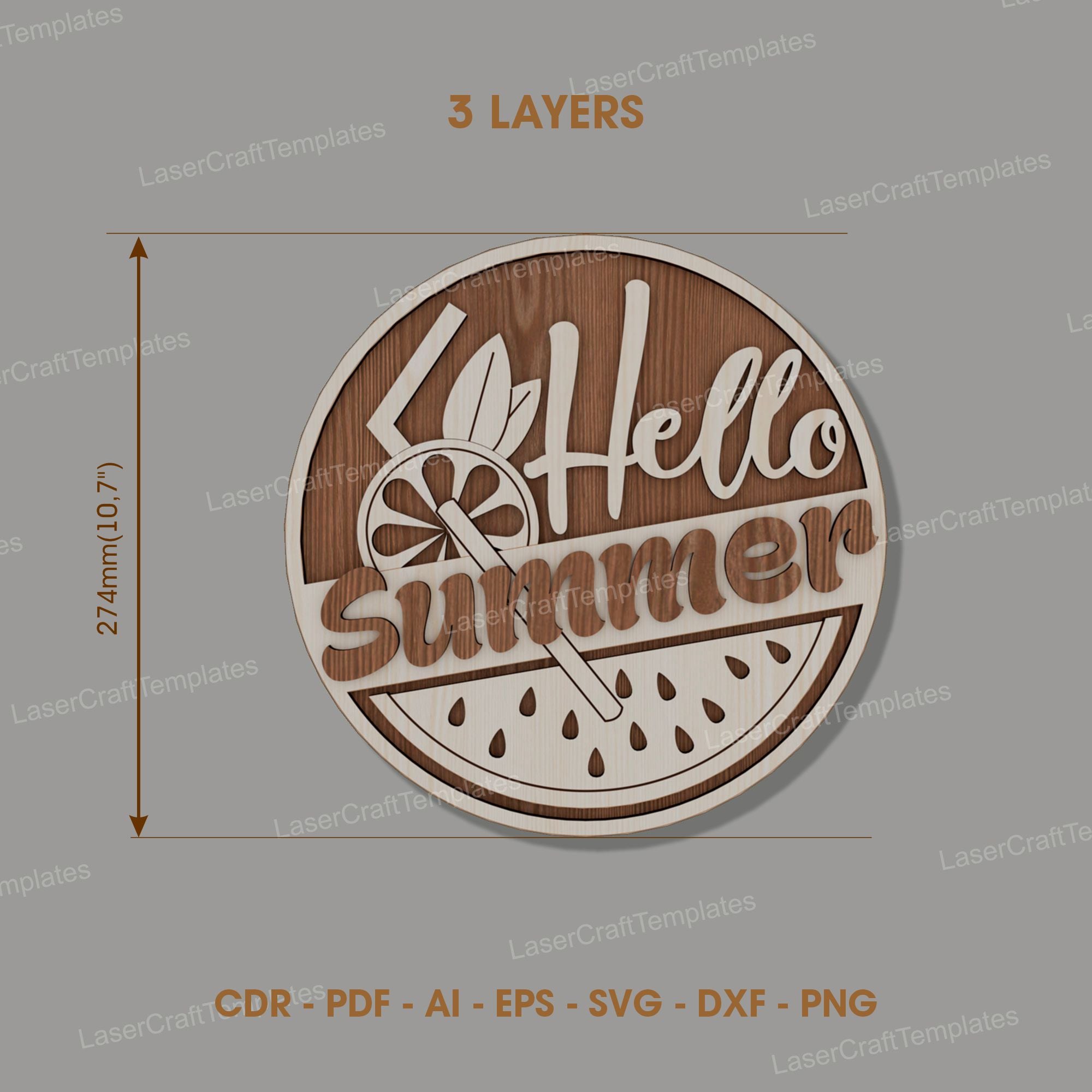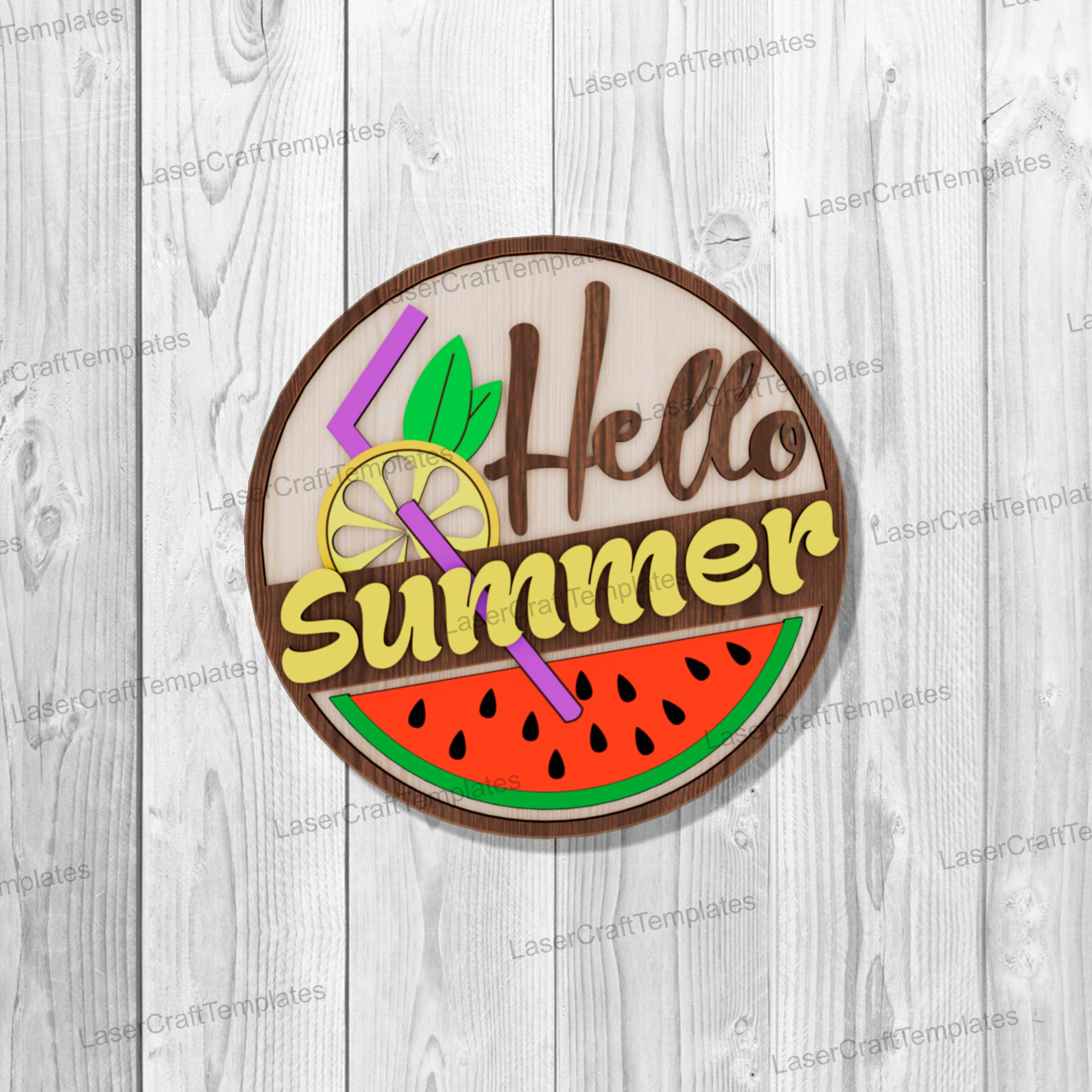 🔹 Watermelon Hello Summer Sign laser cut svg file