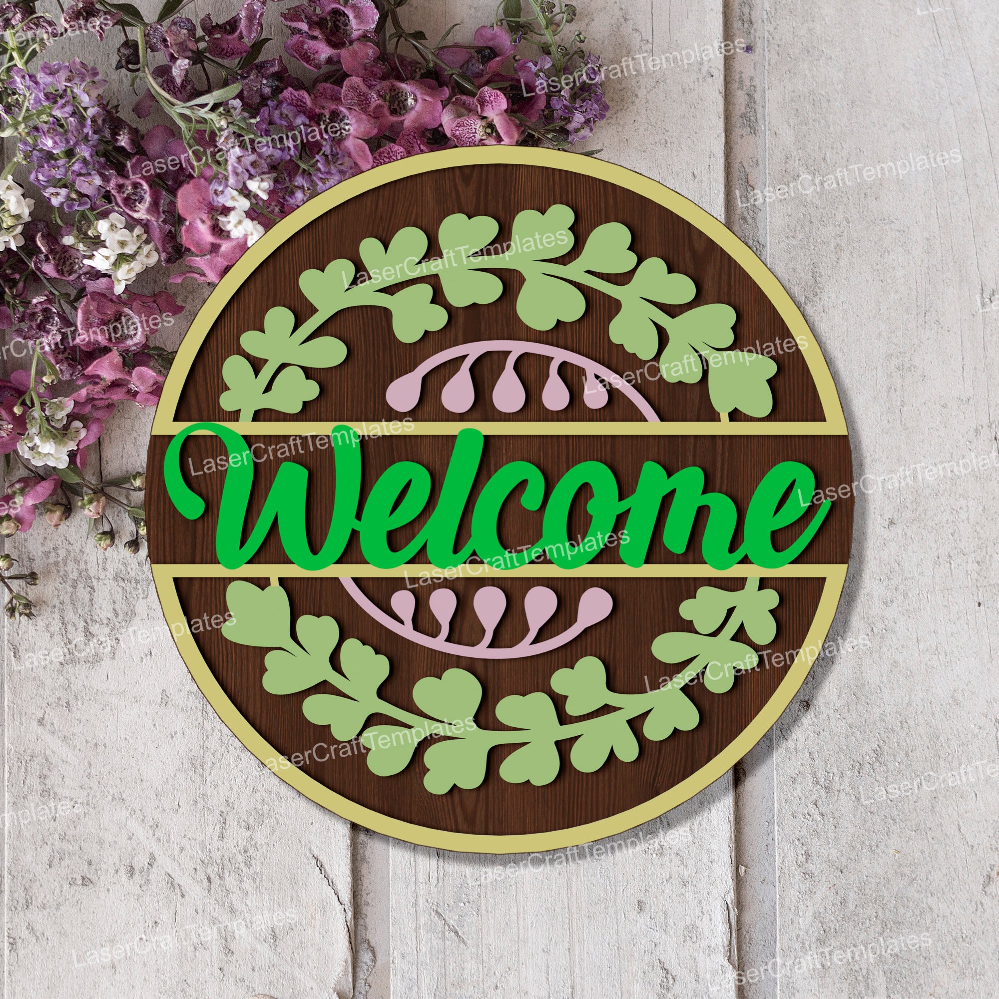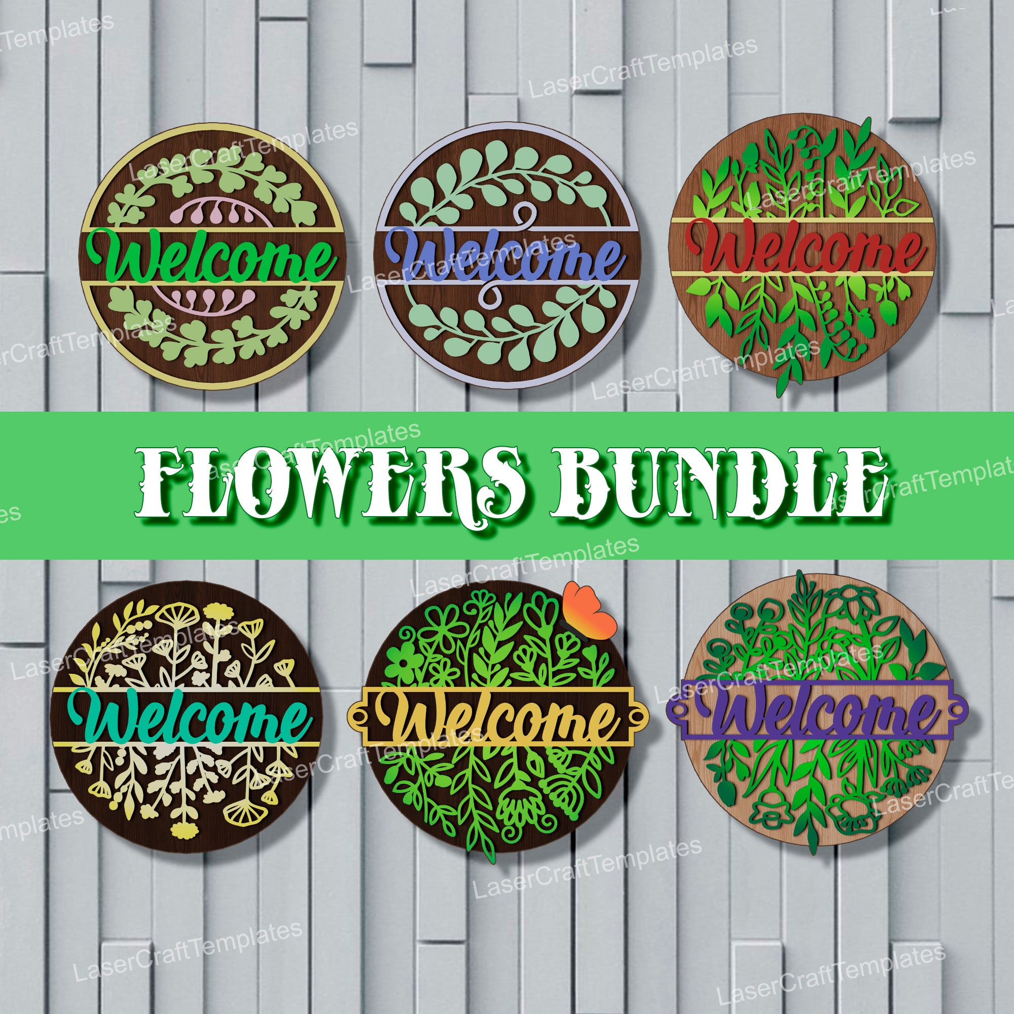 Welcome Flowers Door Hanger 6 bundle svg laser cut file
