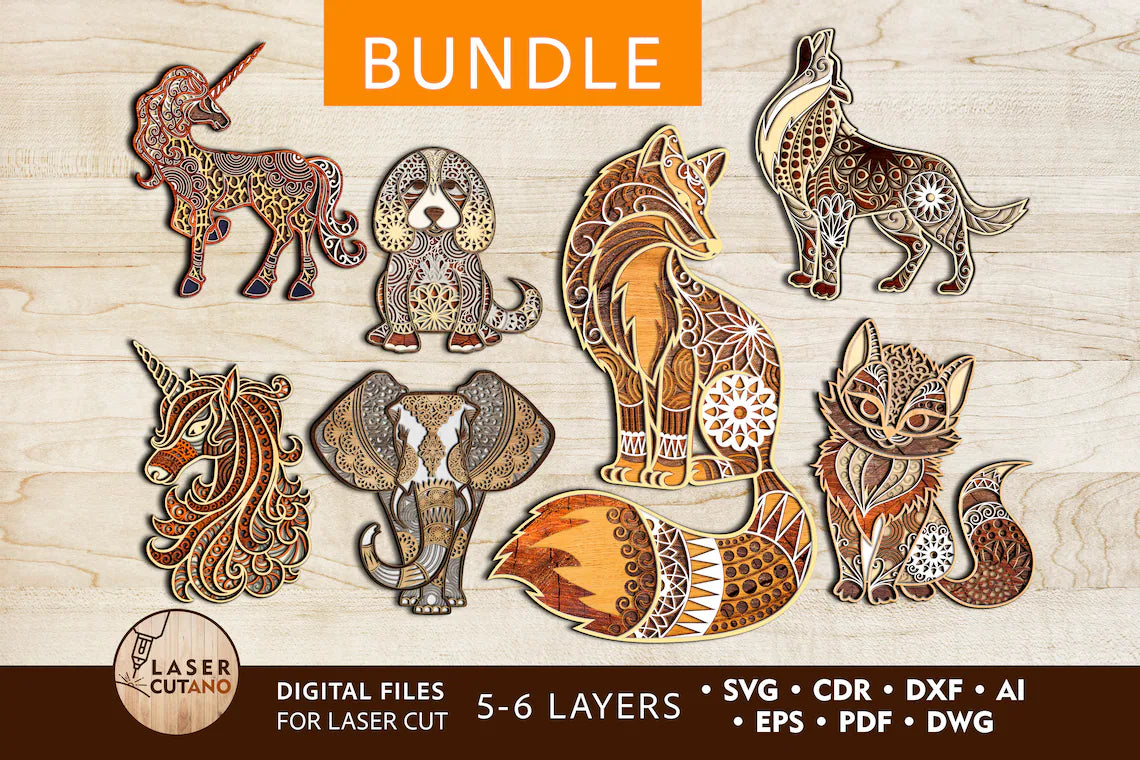Tiere Mehrschichtige Wanddekoration Laser Cut SVG Datei