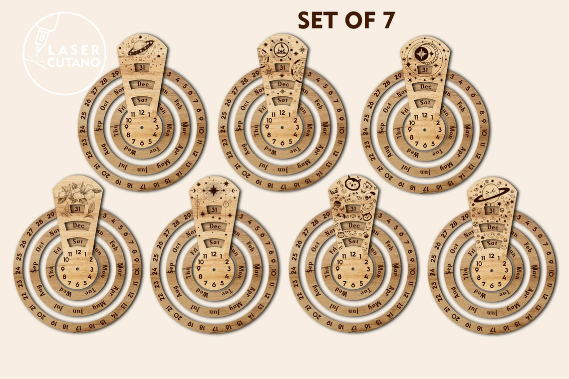 Kalenderuhr Dekor 7 Set Laser Cut SVG Datei