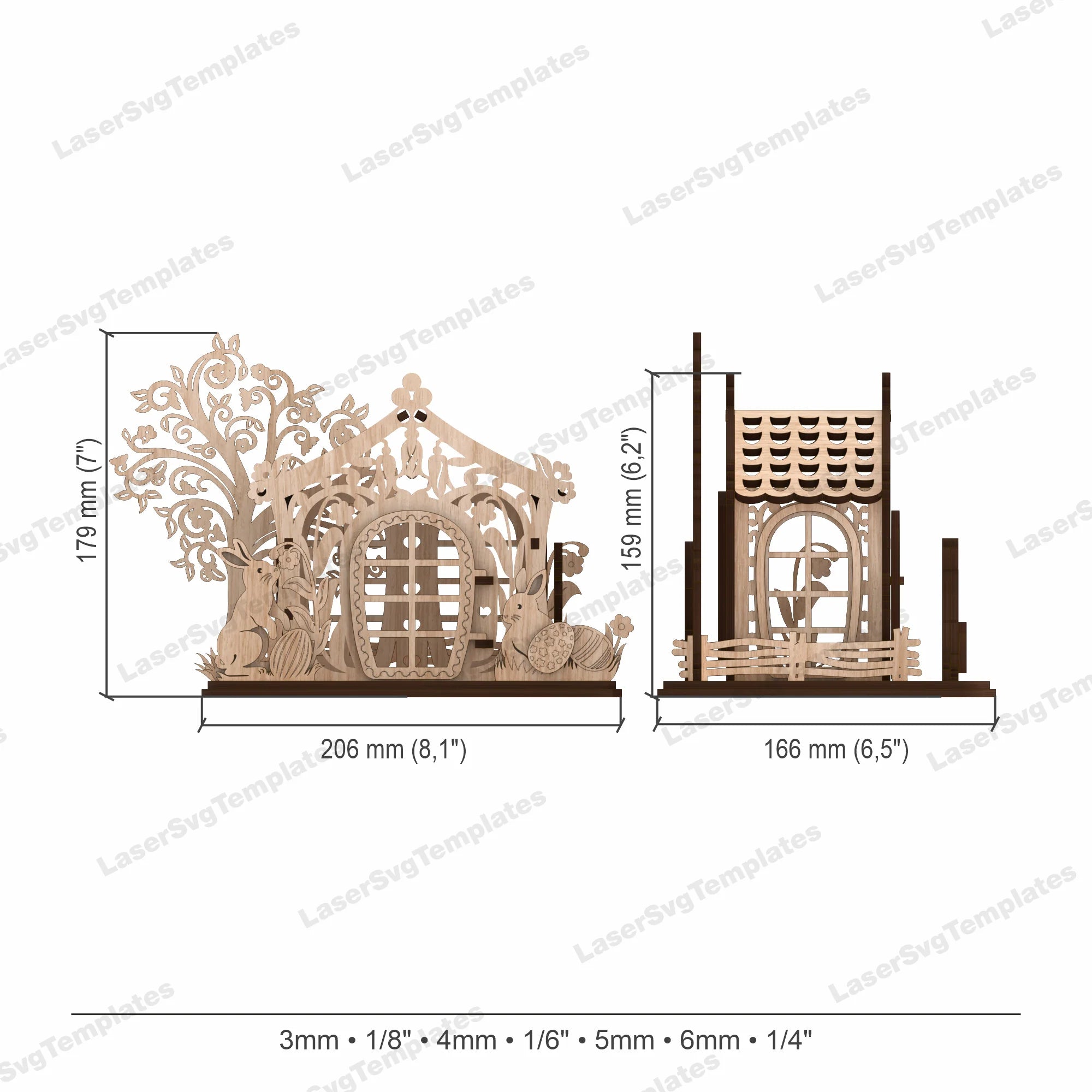 Sie erhalten die Dateien in den Formaten SVG, DXF, AI, EPS, CDR und PDF, die mit den meisten Laserschneidprogrammen kompatibel sind.