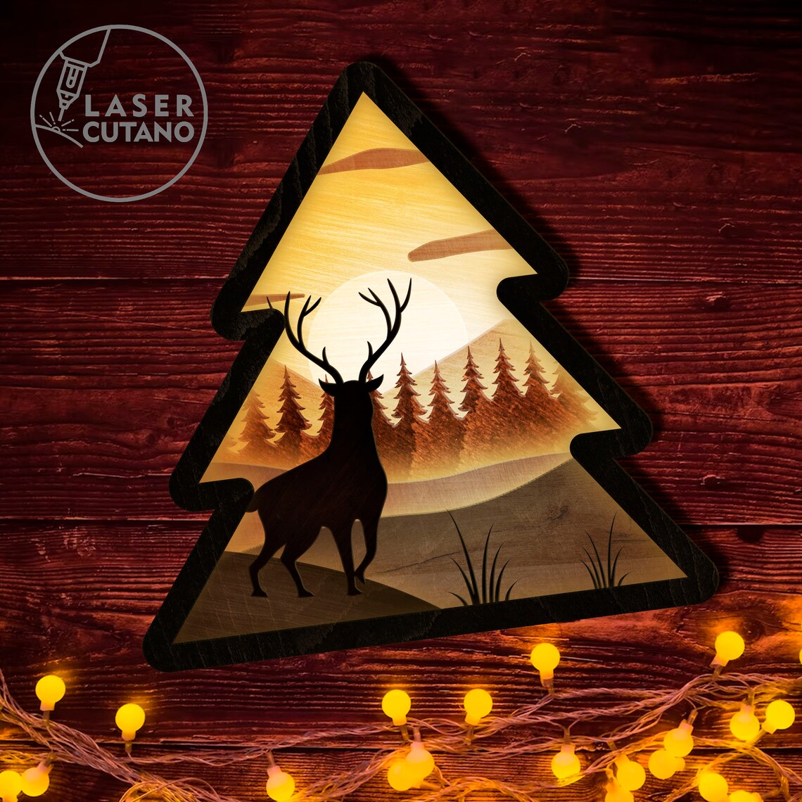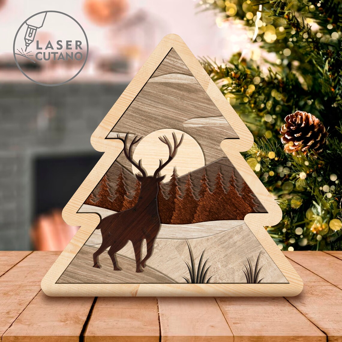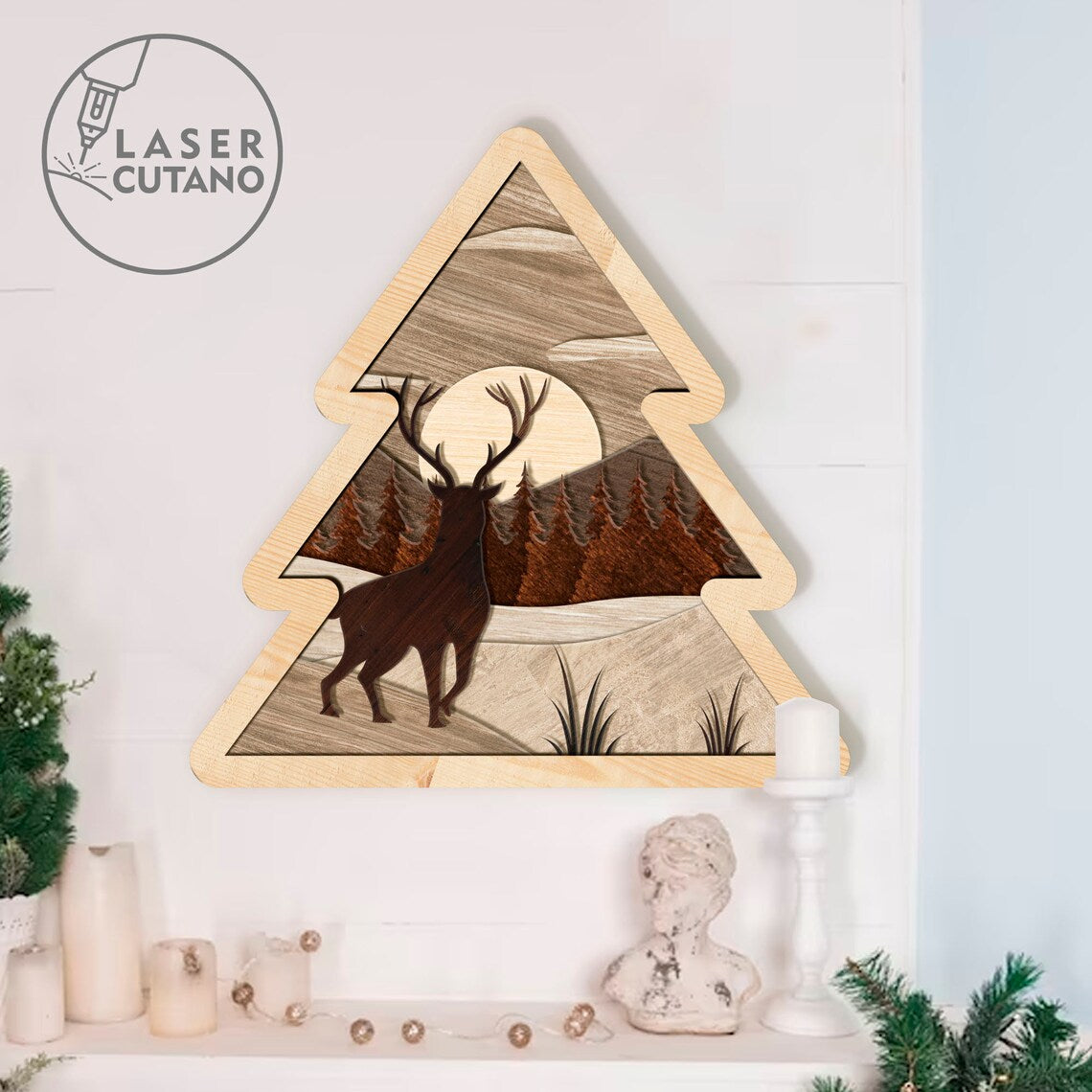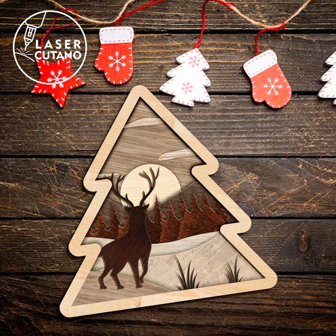 Lasergeschnittene Weihnachtsbaum-Mehrschicht-Wanddekoration-Svg-Datei