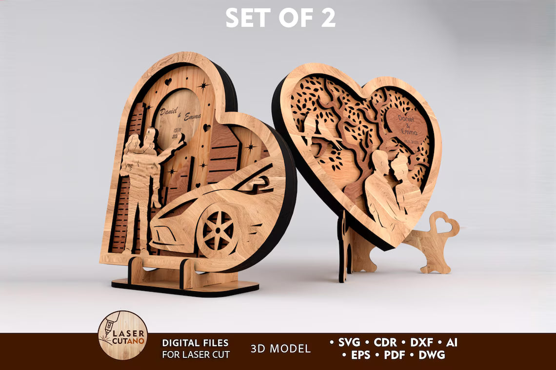 Sie erhalten die Dateien in den Formaten SVG, DXF, AI, EPS, CDR und PDF, die mit den meisten Laserschneidprogrammen kompatibel sind.