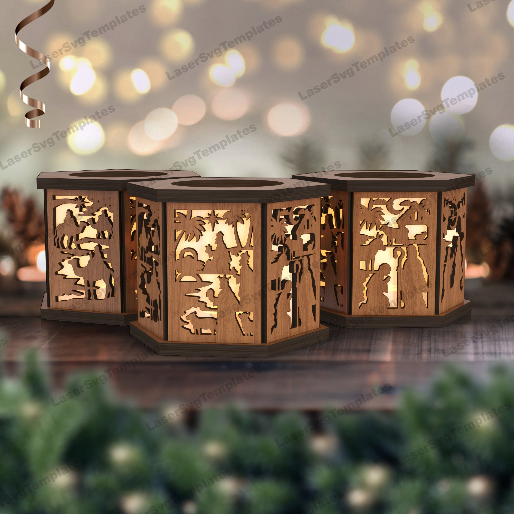 - Weihnachtskrippe Kerzenhalter SVG Laser Cut -Datei