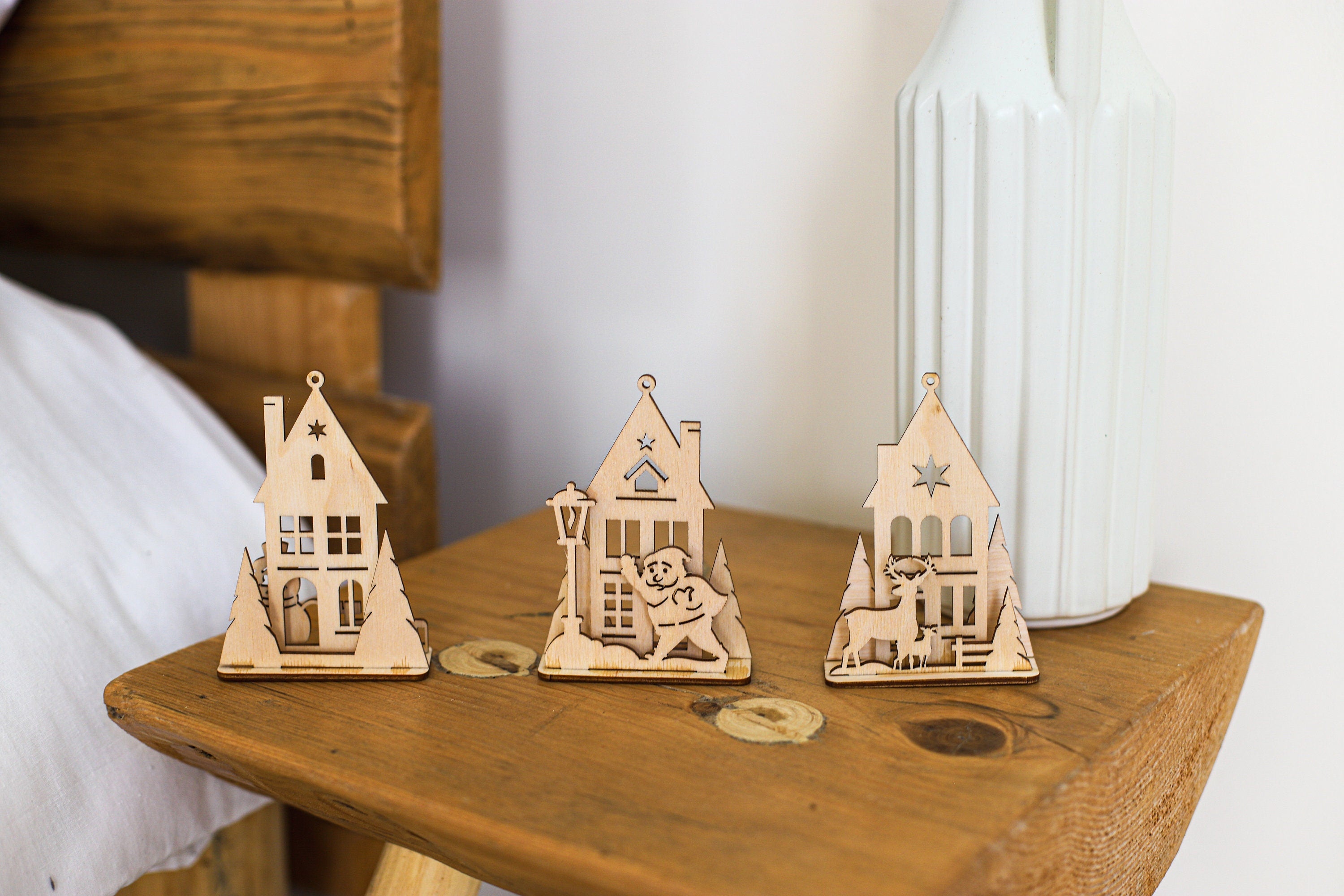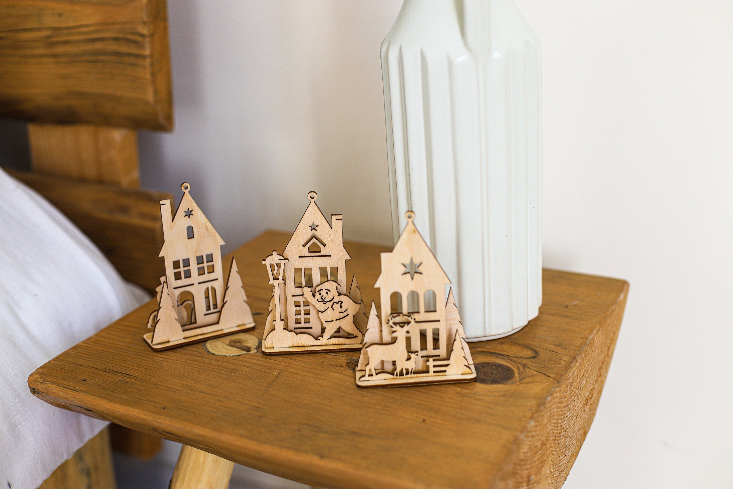 Lasergeschnittene 8 Tischlampen aus Holz im SVG-Dxf-Format