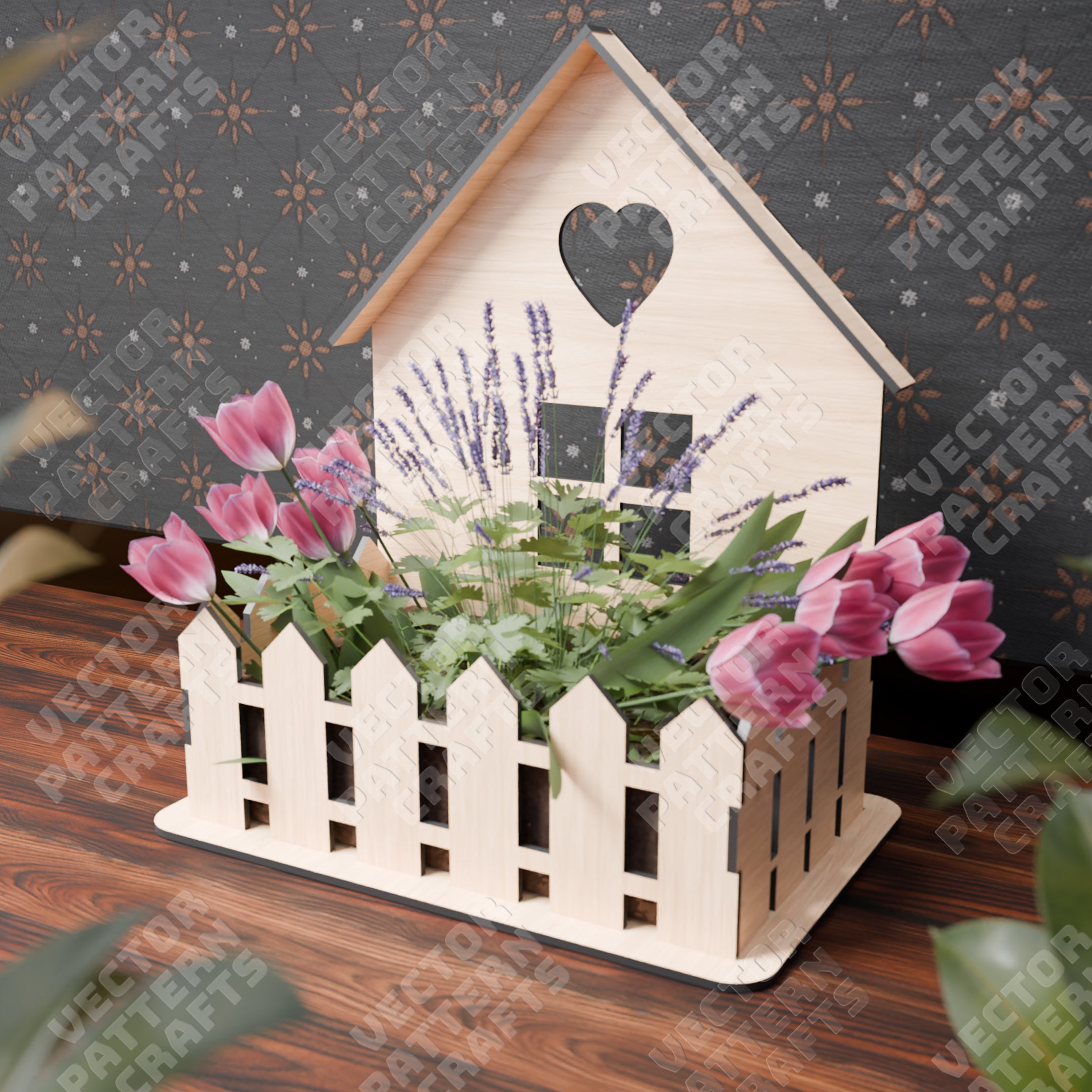 Laser cut flowers house basket svg template