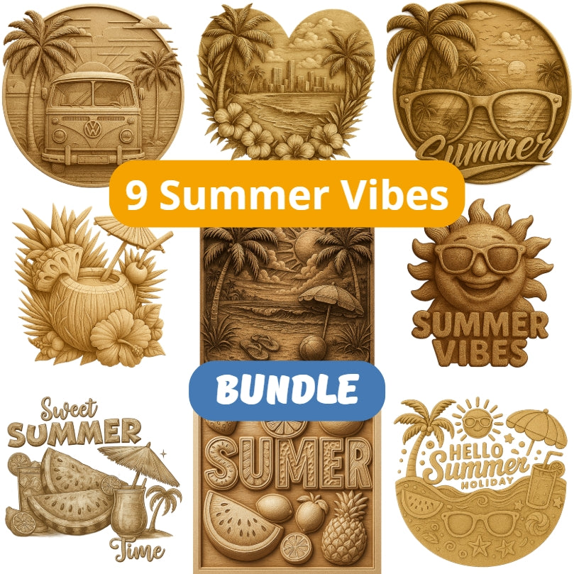 — 9 Summer Vibes Bundle laser engraving png file