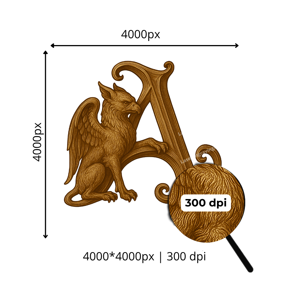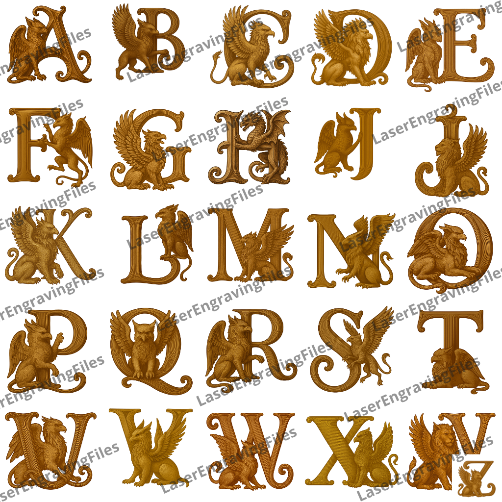 Gothic Alphabet with Gryphons letters laser engraving png file