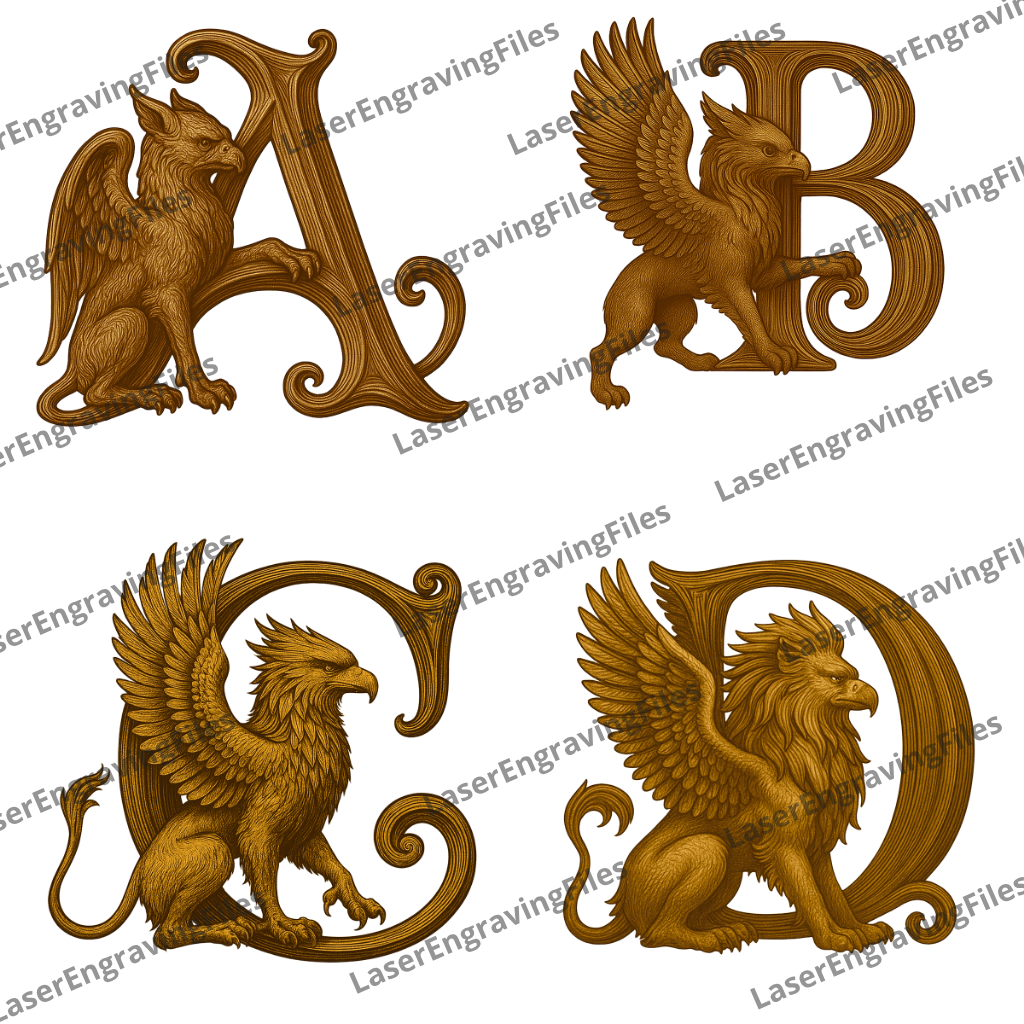 — Gothic Alphabet with Gryphons letters laser engraving png file